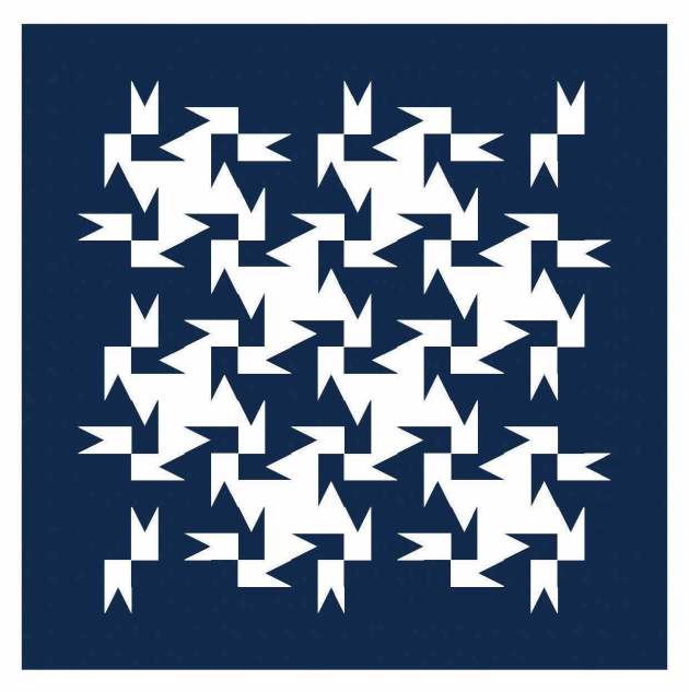In the variations above, there are secondary squares created by the closest quadrants of four adjacent blocks… so four white ‘flags’ create a white square, and four blue flags create a blue square.