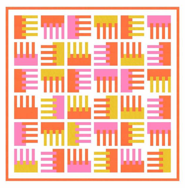 And using this same limited palette, I also arranged the blocks with the lines all parallel. Here’s that design with and without sashing.