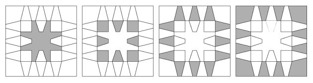 It’s possible to remove the sashing, of course. I like the new shapes that emerge when there’s no sashing – like the octagons at the vertices between the blocks, and the hourglass shapes that join adjacent blocks.