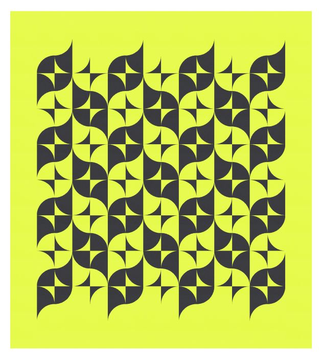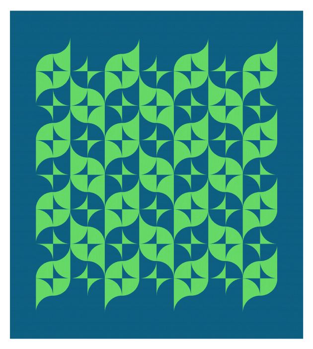 This week’s design is made up entirely from drunkard’s path / quarter-circle blocks. With a two-colour palette, you could make the entire quilt (minus borders) just by chain-piecing two block colourways.