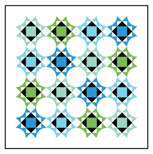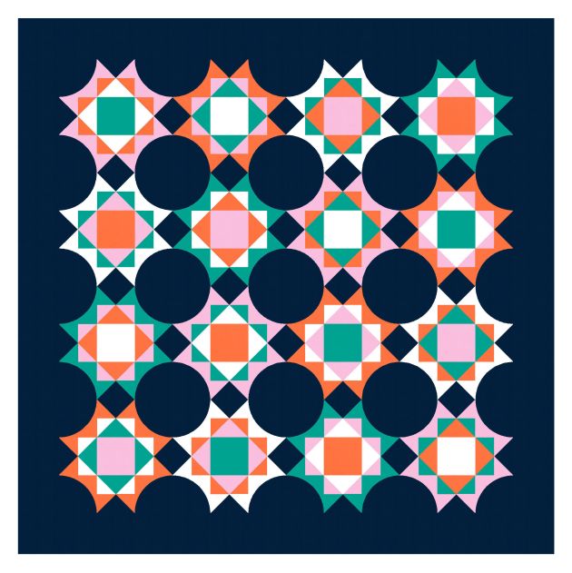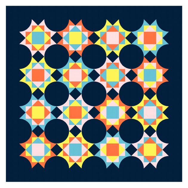 This week’s block-based design combines straight lines and curves to create unexpected secondary shapes within and between blocks.