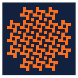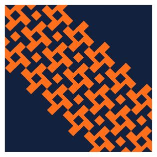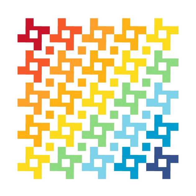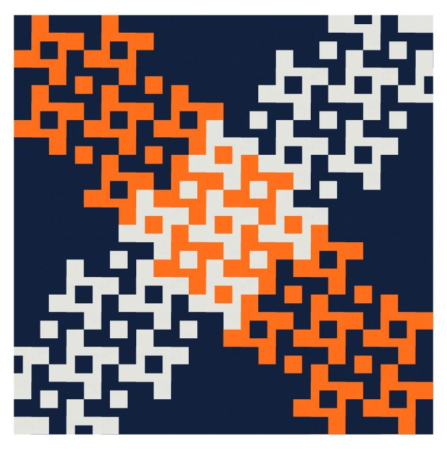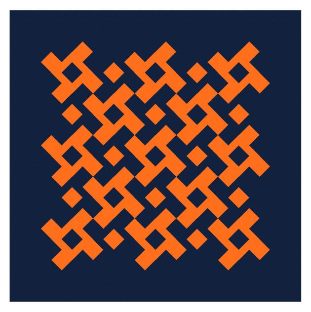 I love using an alternating palette (usually of only two colours) on a regular repeating pattern to give the impression that some blocks are sinking into the background while others are coming to the foreground.