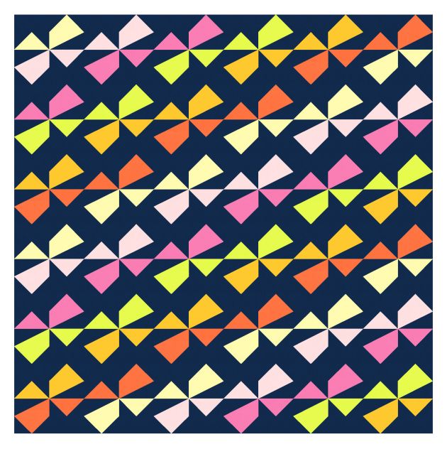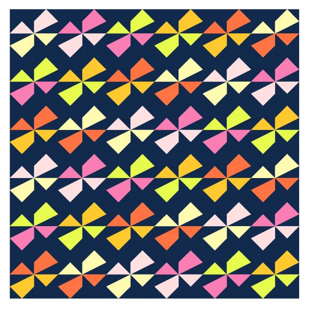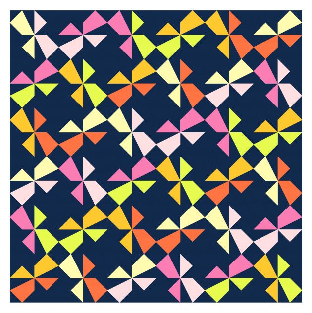 The lines of the wedges create some interesting vertical and horizontal lines across the entire design. Everything else about the block is the same as last week, so it can be tiled and rotated.
