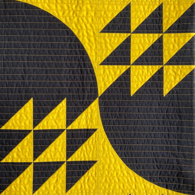 Zester was quilted by Valerie Cooper from Sweet Gum Quilting. With Valerie’s advice, I settled on yellow thread and straight-line quilting, which I’m really happy with. I love the contrast of the yellow thread on the black fabric! (I also love being able to trust Valerie with the quilting, rather than stressing about doing it myself!)