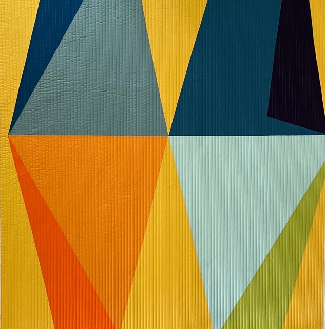 I’ve never adapted someone else’s design to make a quilt before; I’ve got enough of my own designs to work with. But I loved the idea of scaling up a small (20 cm square) artwork to quilt size, sourcing just the right solids to match the original paint colours, and creating an entire quilt with only 9 colours and 14 seams.