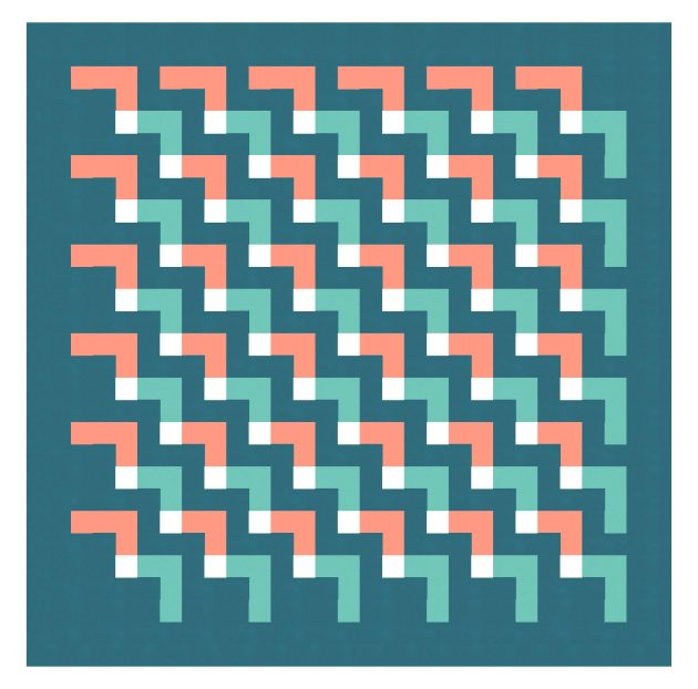 In these designs, I’ve laid out a 12 x 12 grid in which the square-within-a-square units alternate in rotation – half of the units have the small square in the top right, while the other half have the small square in the bottom left.