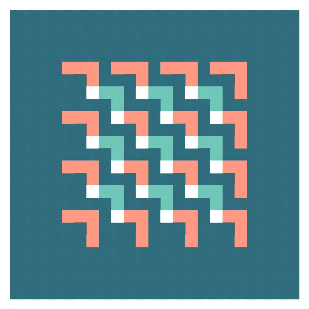 I didn’t play with colour, but that’s obviously something else you could vary. And there are opportunities to introduce transparency by using a colour on the small squares that combines the colours of the adjacent squares.