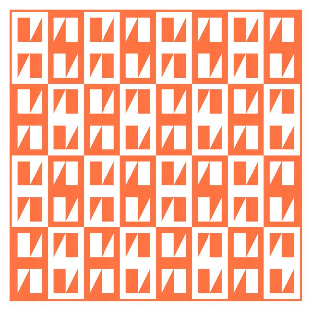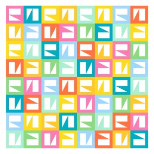 These designs can be made using half-rectangle triangles, 2:1 rectangles, and longer rectangles or strips for the block’s borders. A very straightforward design that could be made easily into an actual quilt!
