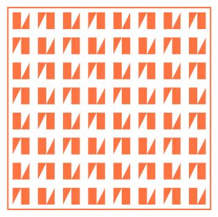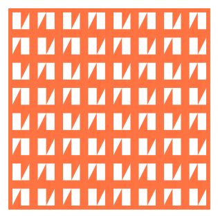 Paring back the palette helps to focus the eye on the different angles at play – horizontal, vertical and diagonal lines criss-crossing the design.