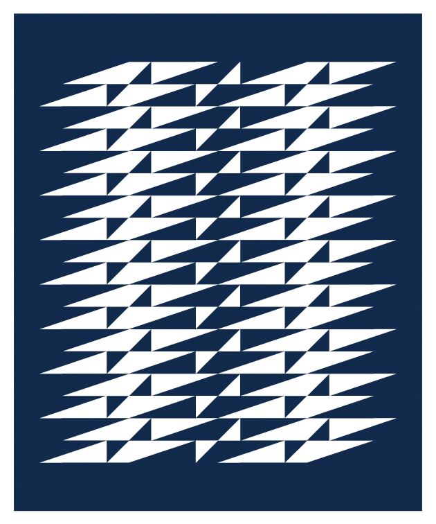 I tried a different layout, taking advantage of the sharp angles of the half-rectangle triangles. I like the idea of two-tone quilts that start with one colour and end with another – I’ve used that effect a few times before, like with Sunday sketches #285 and #123 (which coincidentally use the same light pink and black colour palette).