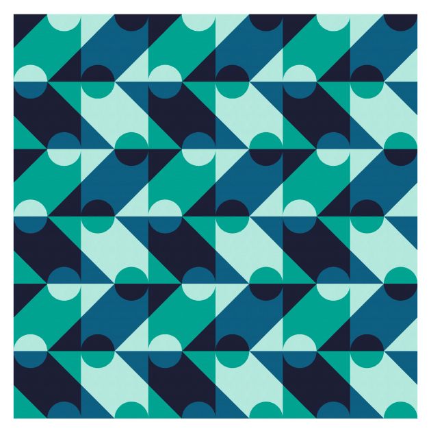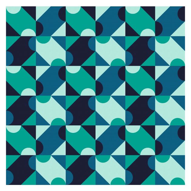 Rotating the blocks again can create an entirely new design – quite a wacky one, but I like it! My choice of colours here also helps create that transparency effect.
