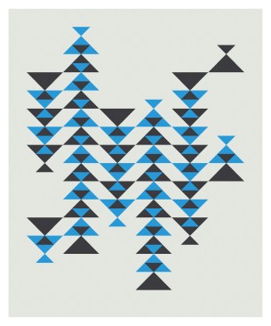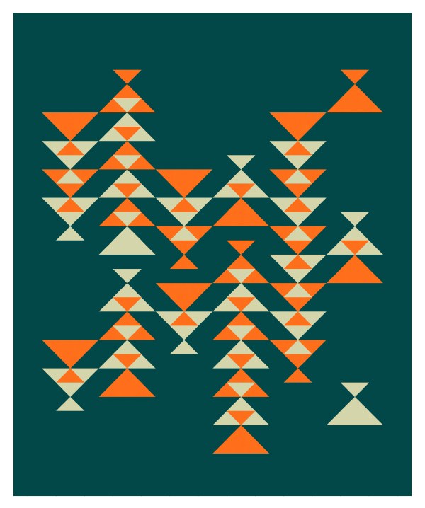 It’s pretty clear from the sketch that the easiest way to recreate the hand-drawn sketch is to break down the triangles into half-square triangles. So that’s what I did. Although I coloured the first version in a palette of four colours (against a white background).