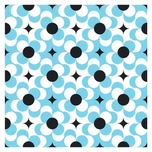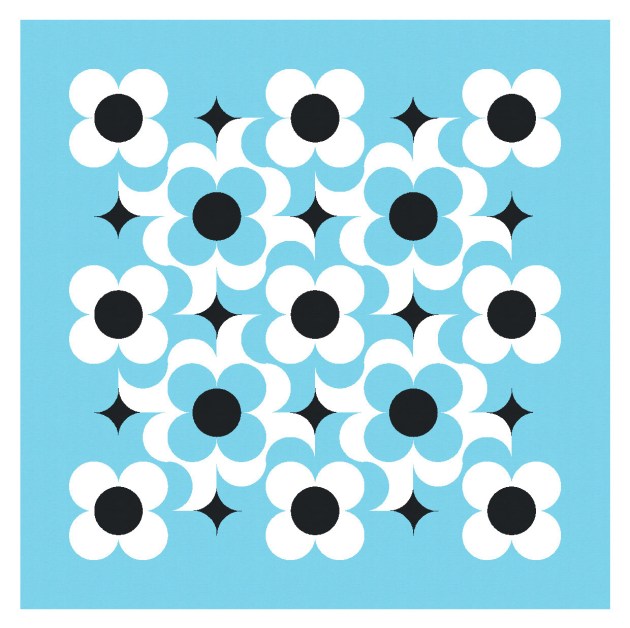In two diagonally opposite corners, I’ve added a new curve that cuts into the full circle there. In the version above, those new curves create the centres of the flowers; the other corners of the block create those interstitial stars.