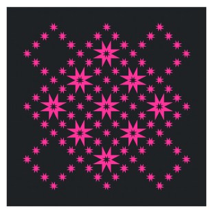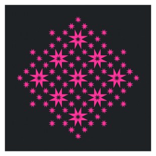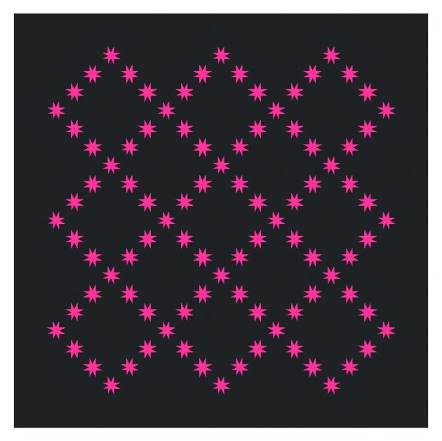 The next thing I need to do is come up with a quilt design. How to use such a bright pink fabric to its full effect? I’m thinking I need to set it against a dark fabric, but beyond that, I’m a bit stumped. Anyway, this all led to some new designs featuring my go-to star, the eight-pointed star. I’ve made them small so they’re little pops of colour against a dark background.
