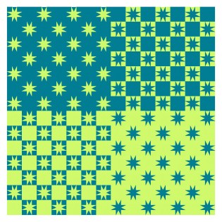 I tried a few more iterations of this design too, by mixing up the placement of the stars and their backgrounds. I liked this checkerboard variation.
