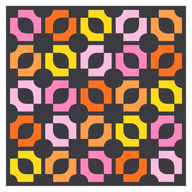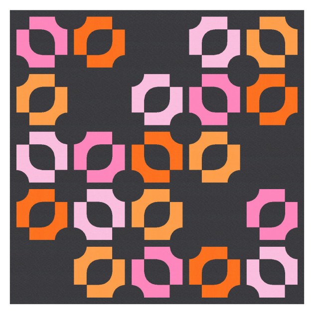 Here’s the full design again. I like how the blocks now seem reversed, with the key shapes being those in colour rather than those in black. Those leaf shapes in the centre of the blocks are now balanced with the circles and squares that are formed by 4 adjacent blocks.
