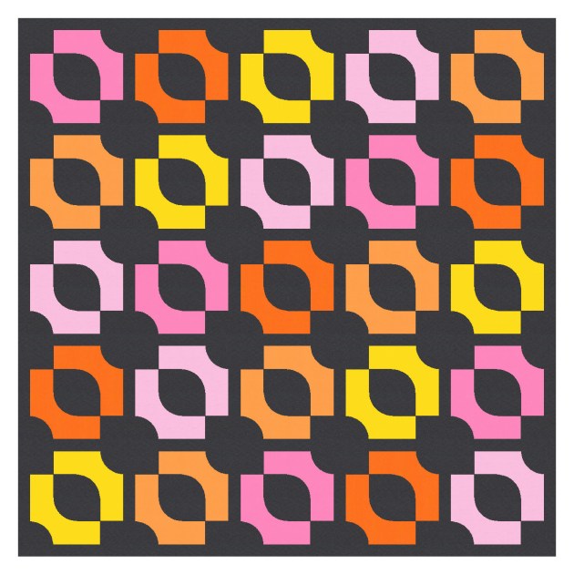 I can’t decide which is my favourite! I think maybe the version with the yellow background – I like the interplay of the black shapes and the few ’empty’ blocks where the wrapped-lolly shape in the centre becomes more obvious.