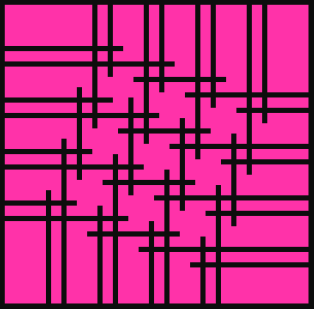 I’m not sure of the easiest way to construct this design, particularly for those versions where lines cross over or under lines of other colours. I guess there would be a lot of careful seam matching to obscure the joins between adjacent blocks. Otherwise, it’s just all squares and rectangles.
