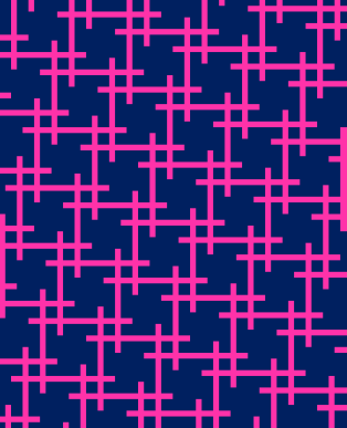 The inspiration behind this week’s sketches was a similar motif that I saw on a bedspread in a photo for a real estate listing (inspiration is everywhere!). The original design was much more complicated; the arms extending from each hashtag joined up to create new shapes. But I didn’t want that. I just wanted to see how it would look to connect the arms of adjacent hashtags.