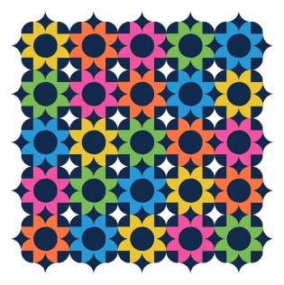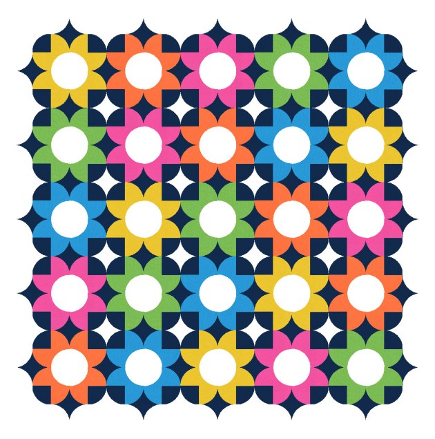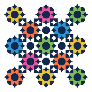 The design also works with a simpler palette. In both versions below, I’ve used a lighter colour for the background and a darker colour for the squares and diamonds, but I think the reverse would work just as well.