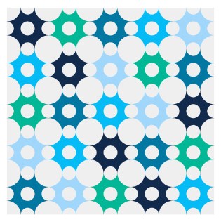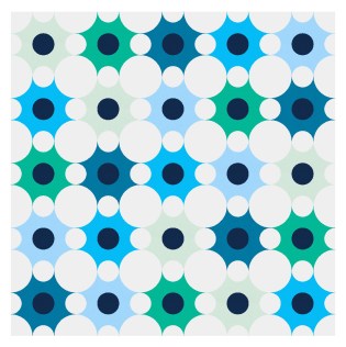 That introduces lots of colouring options. Here, I’ve coloured the centre circles in a consistent colour (white) across all blocks, or just coloured them in the same as the block colour. In the first case, my eye’s drawn to the white circles, whereas in the second case, I see the dark blue circles first.