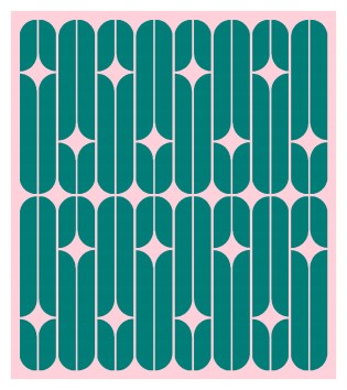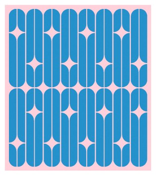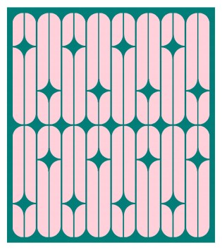This design is made up of two rows of long narrow blocks on repeat. Flipping the blocks around moves those negative-space curvy stars around.