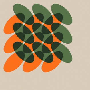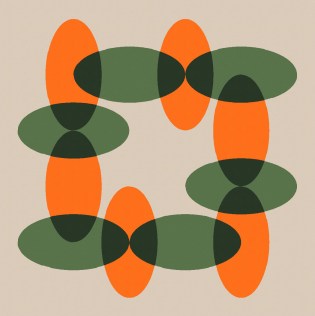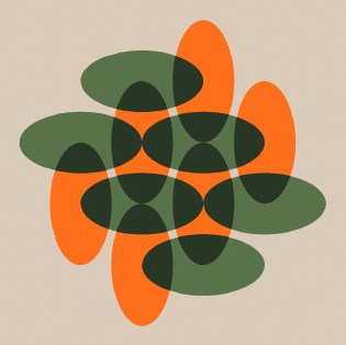 Obviously one of the advantages of this design is the opportunity to play with transparency. This version feels a little balloon-animal/Jeff-Koons-y, maybe just because of the bright colour palette. Removing an oval or two helps to introduce new secondary shapes too.