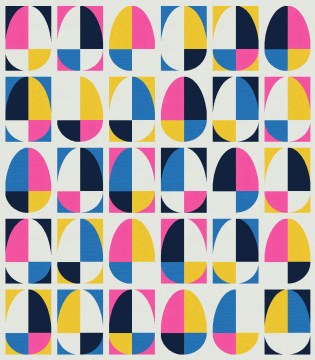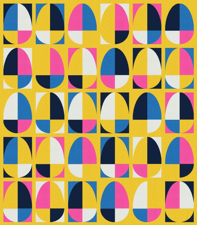 I tried not to colour in all the parts of each egg, but instead used the background / negative space as one of the components. I also framed some of the eggs too, just to provide a bit of structure and balance. Of course I always imagine my designs in solids, but I think this one could work well with a limited selection of prints.