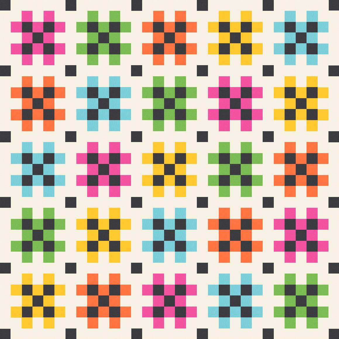 I figured there was probably something similar out there already, so I had a look through my Pinterest feed and a few popular designers’ catalogues. Sure enough, the Crossroads quilt pattern by Emily Dennis (Quilty Love) uses the same layout as one of my versions. The colour placement is slightly different, so Emily’s pattern emphasises the crosses at the centre of each block. But if you put your thinking cap on, I’m sure you could easily adapt this pattern to create one of these Sunday sketches. (Or just make the Crossroads quilt – it’s cute!)