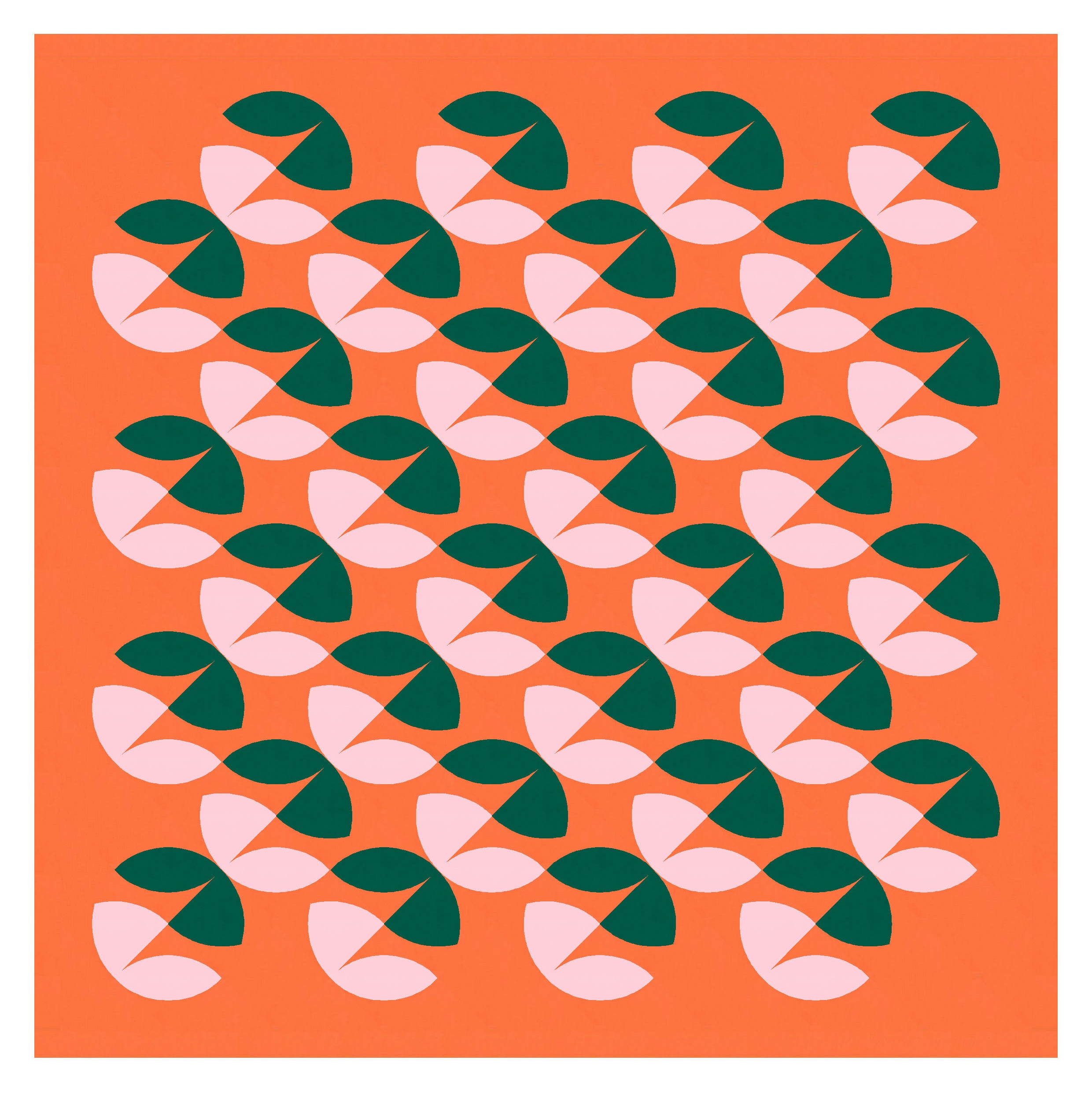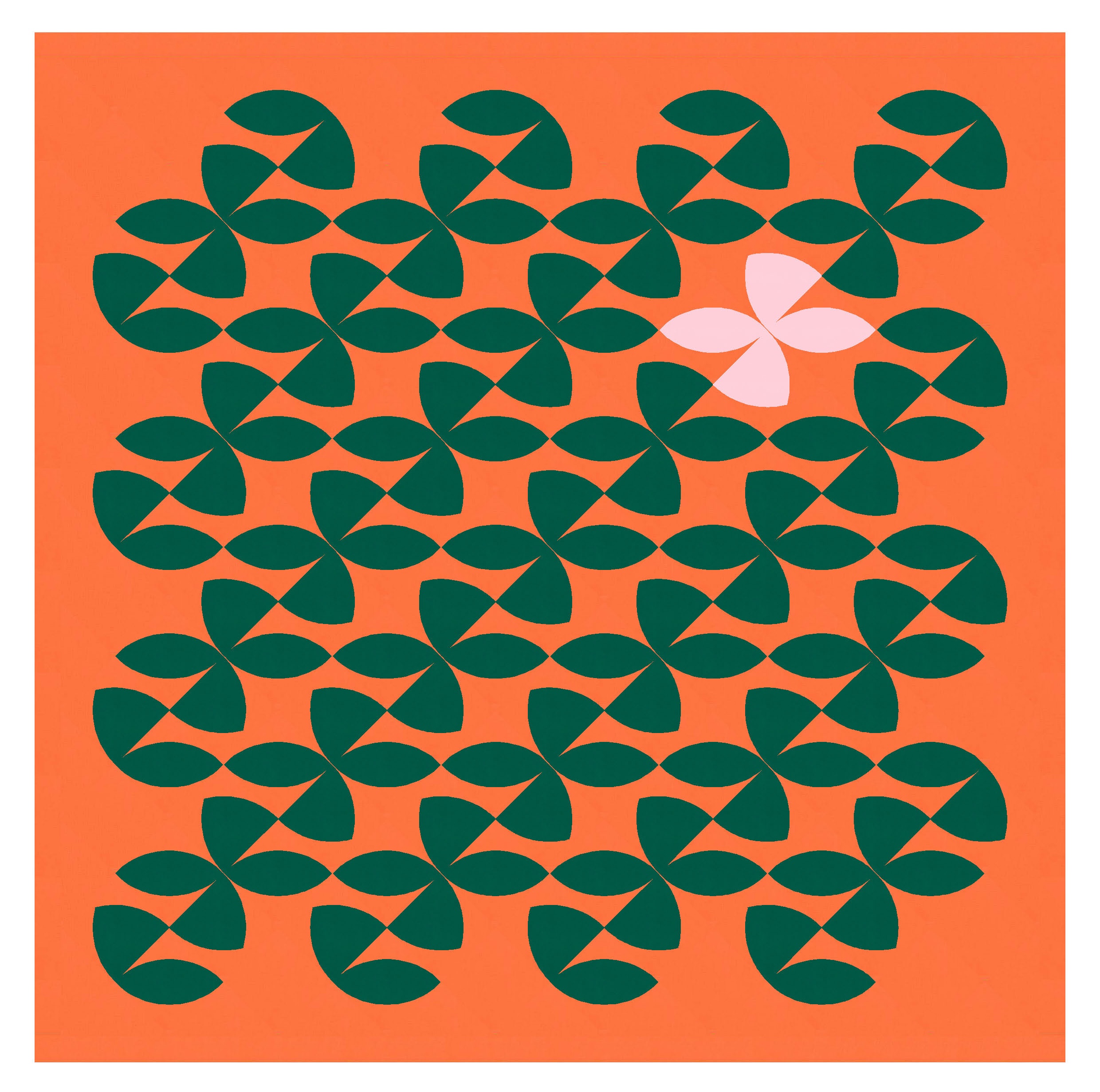 I really love that dark/murky green, hot orange and pale pink palette, but I think this design would work in just about any colours: it just helps to have a light, a mid-range and a dark colour. But I don’t think it matters much which colour goes where.