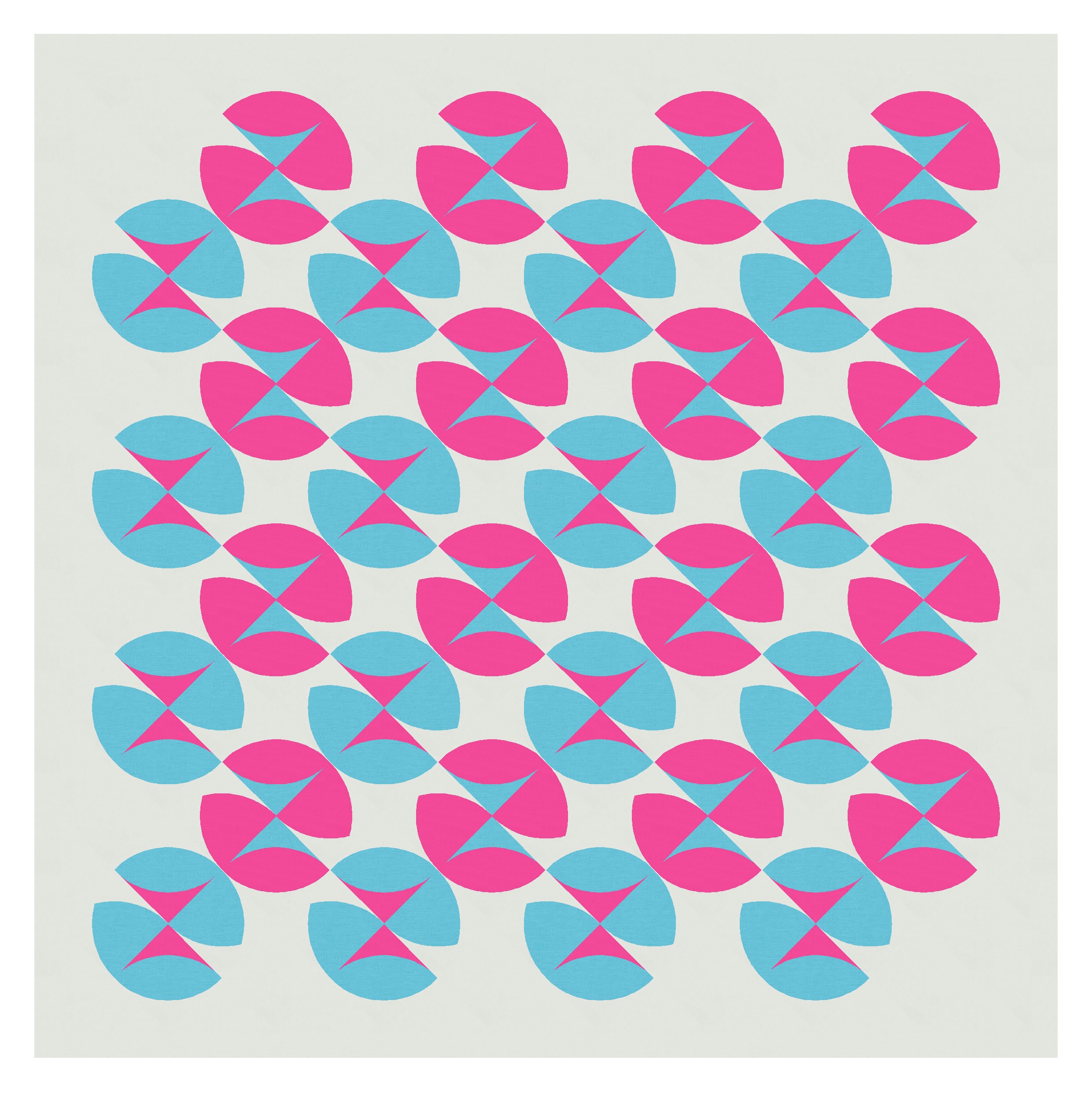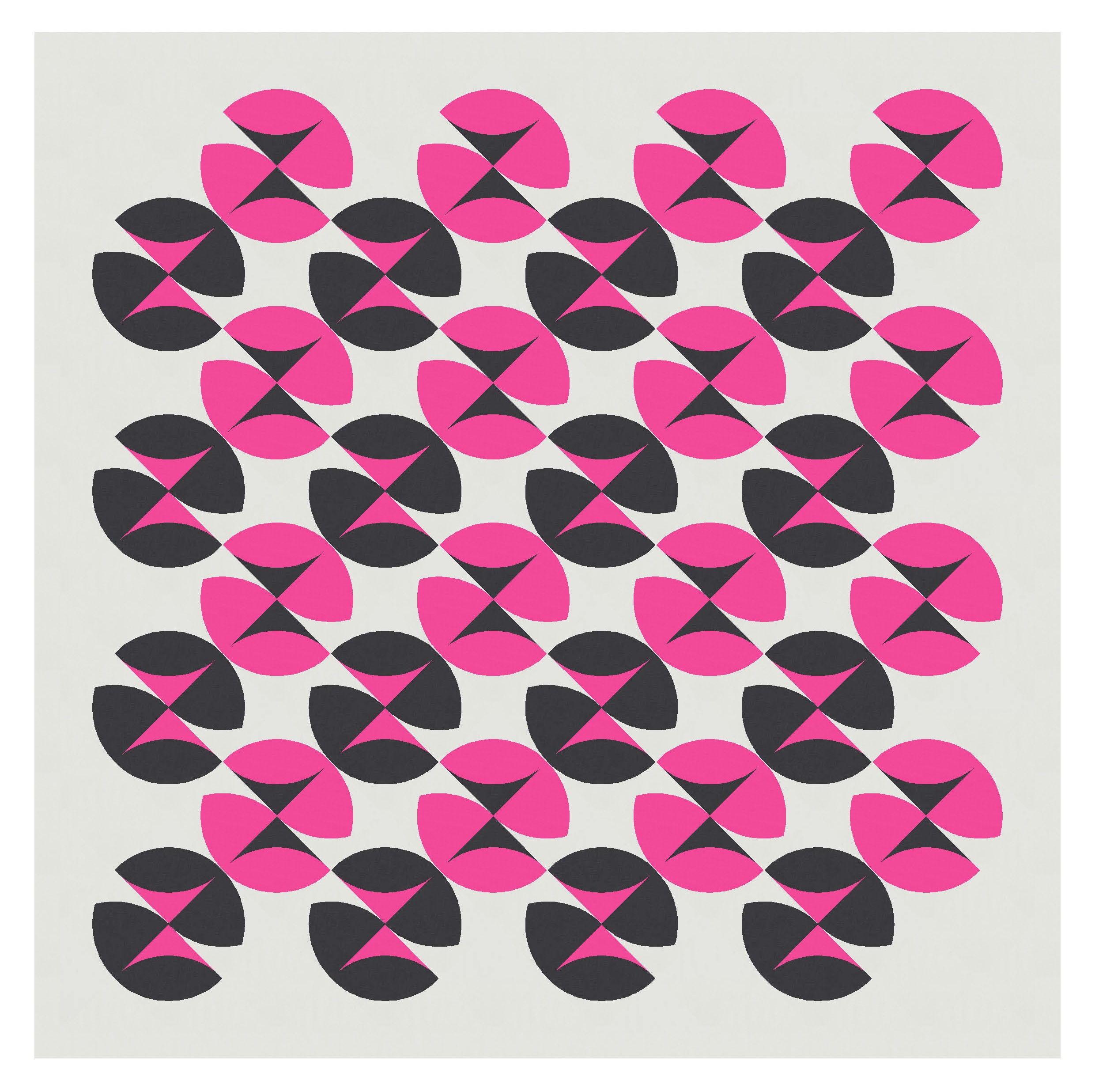 Using just one colour has the unintended effect of obscuring the circles… I find it much harder to see them now; the discrete shape that emerges for me is the kinda four-leaf clover shape (which I’ve highlighted in soft pink in the version on the right). I really struggle to find the circles once that shape pops out.