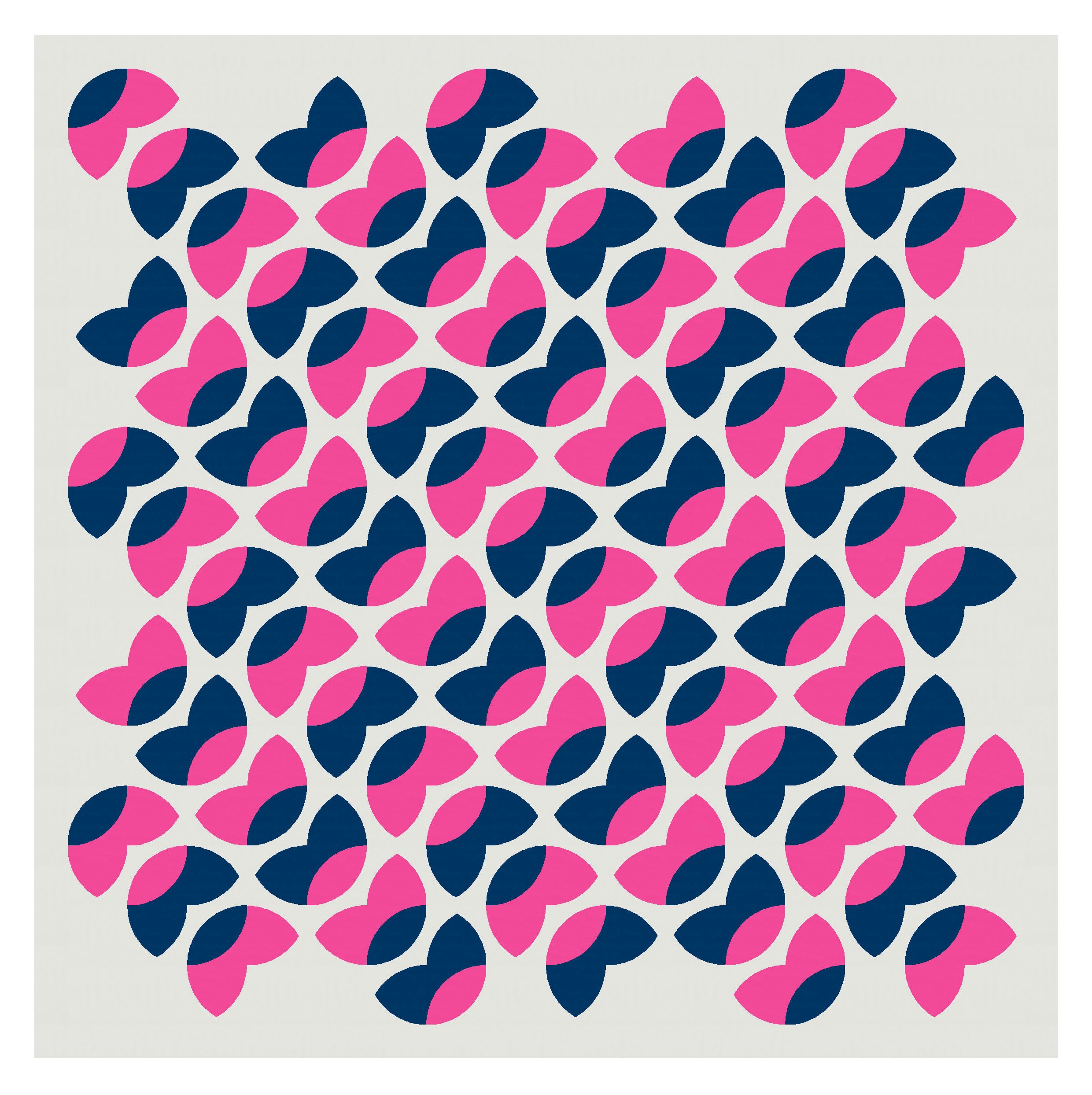 I’ll start with one of my favourite versions: columns of jelly beans pointing in different directions and coloured with an alternating two-colour palette against a third background colour. Here I’ve coloured the ‘butts’ of the beans (which are made from an orange peel unit) differently, just to add a bit of movement and visual interest.