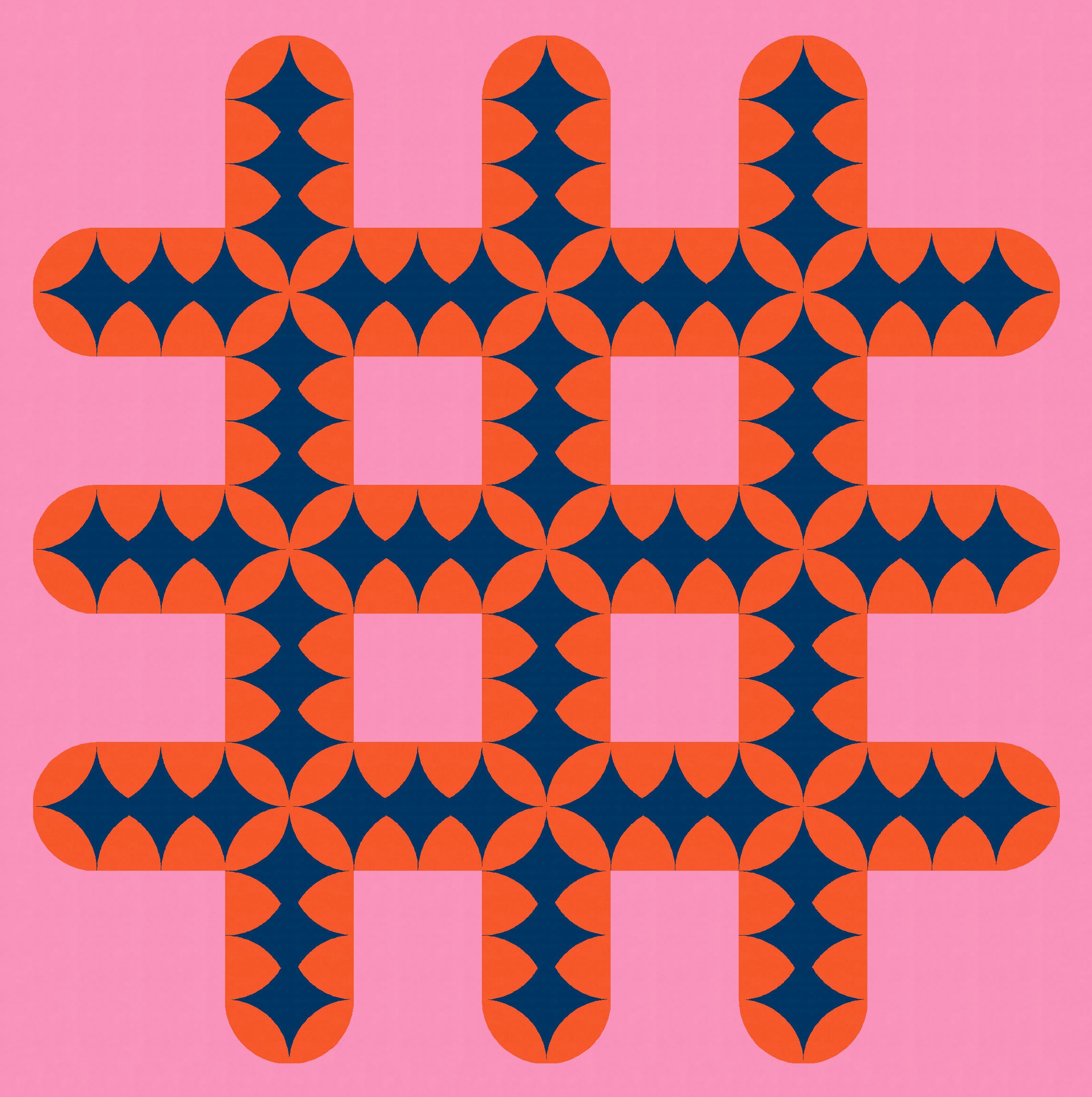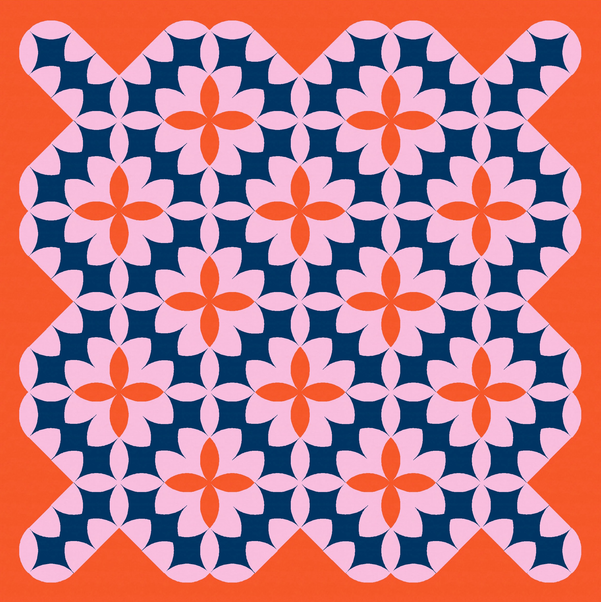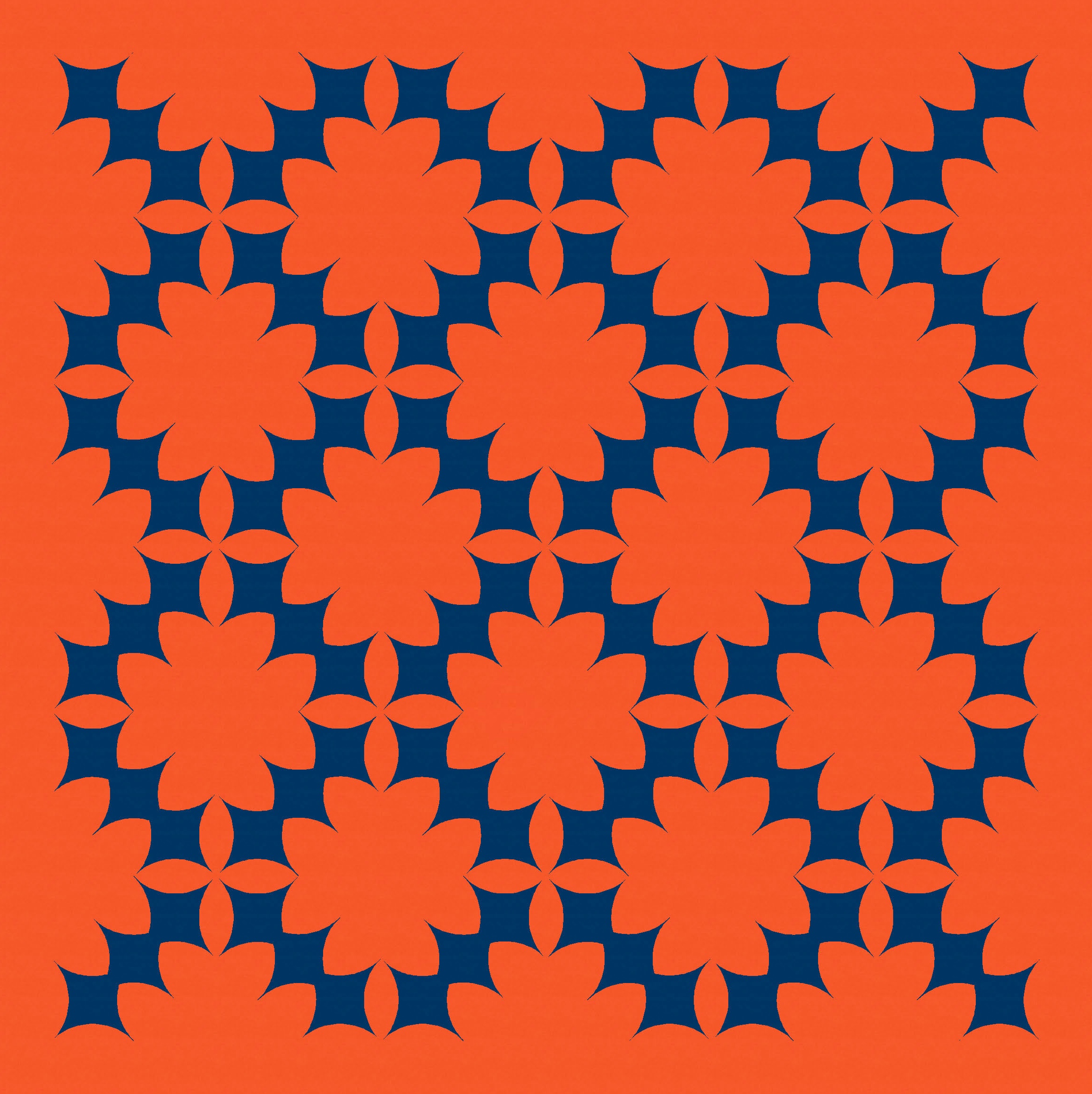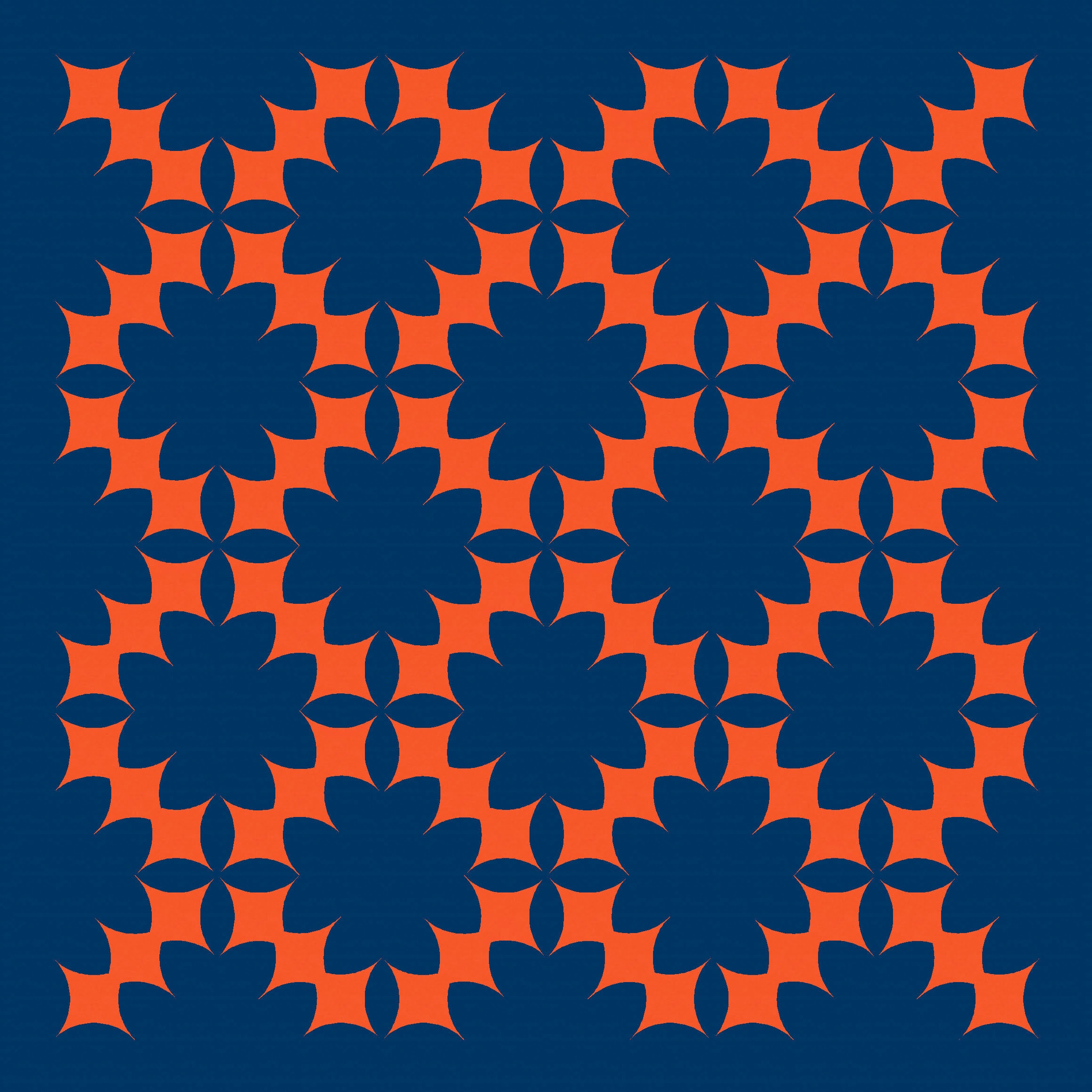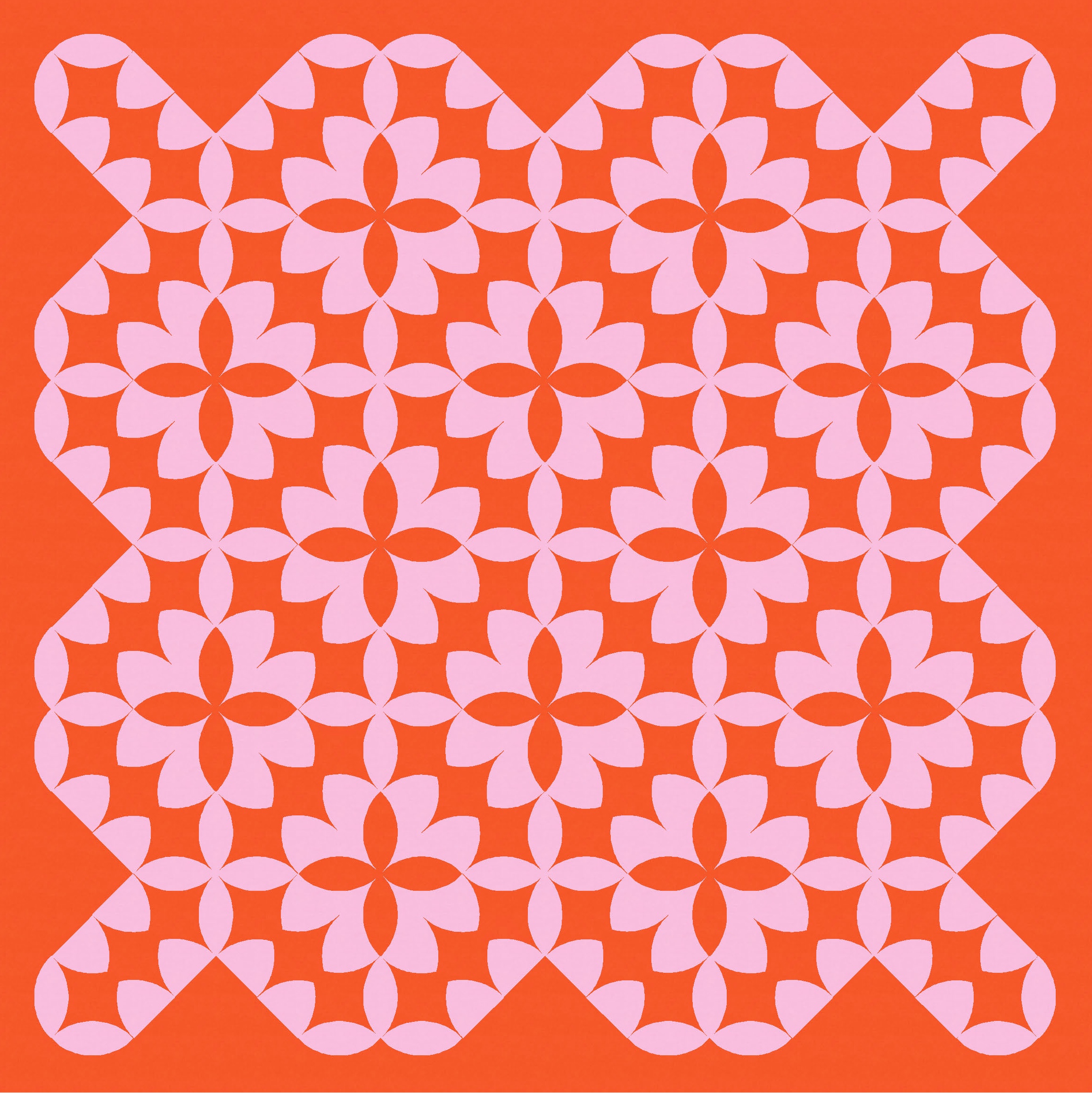 Those squares (on point) feel kinda empty though. If we fill them in, we get back to that four-leaf-clover shape again. I’ve filled them in with more orange-peel crosses, just for consistency. But I’ve coloured them differently so they’re not overwhelming.