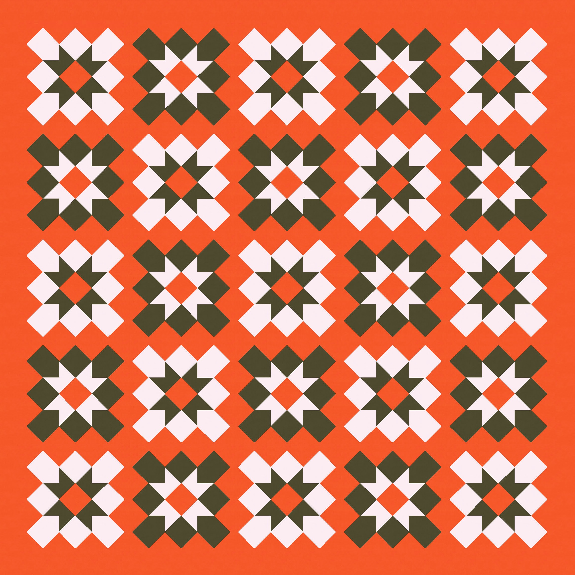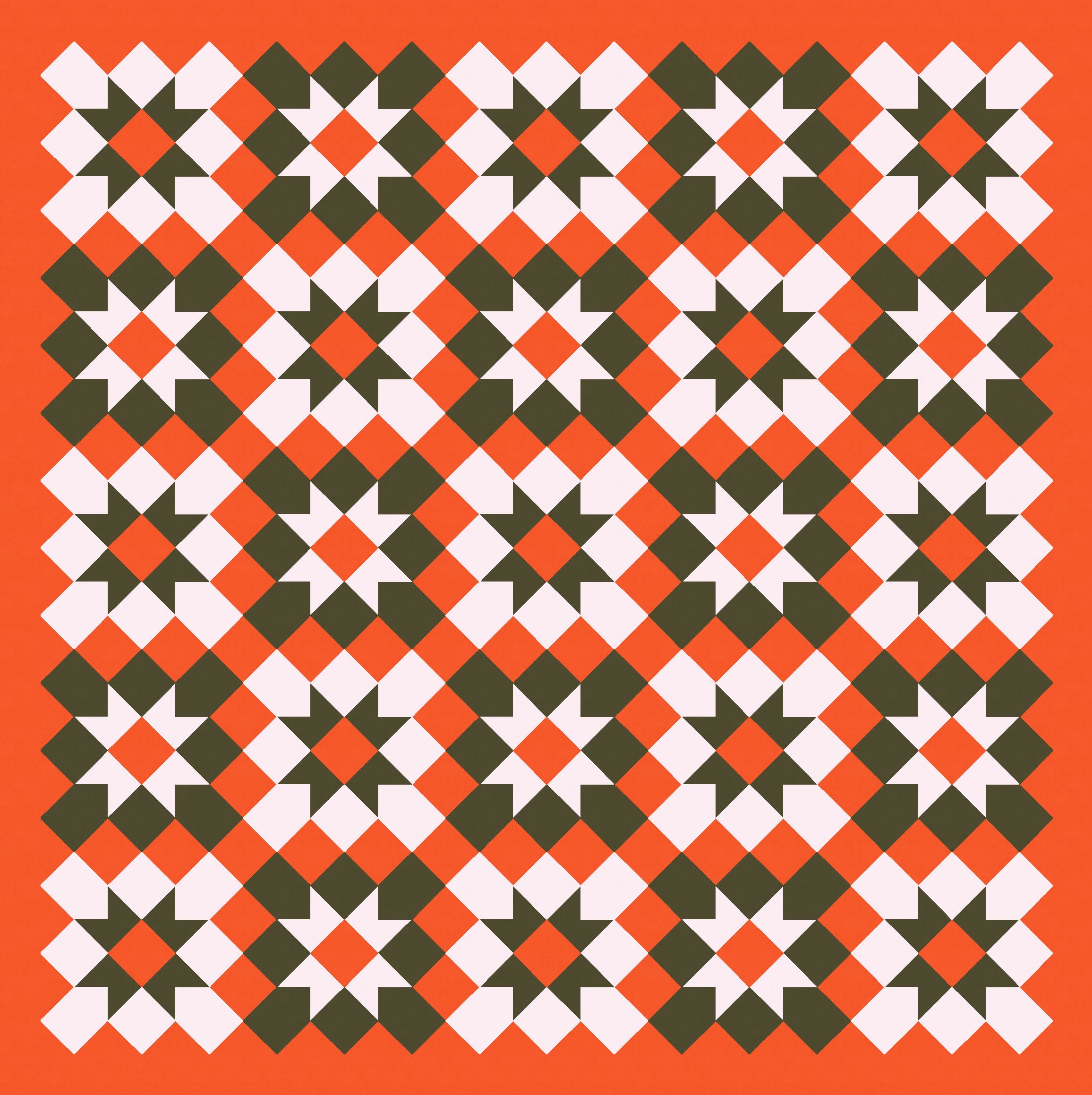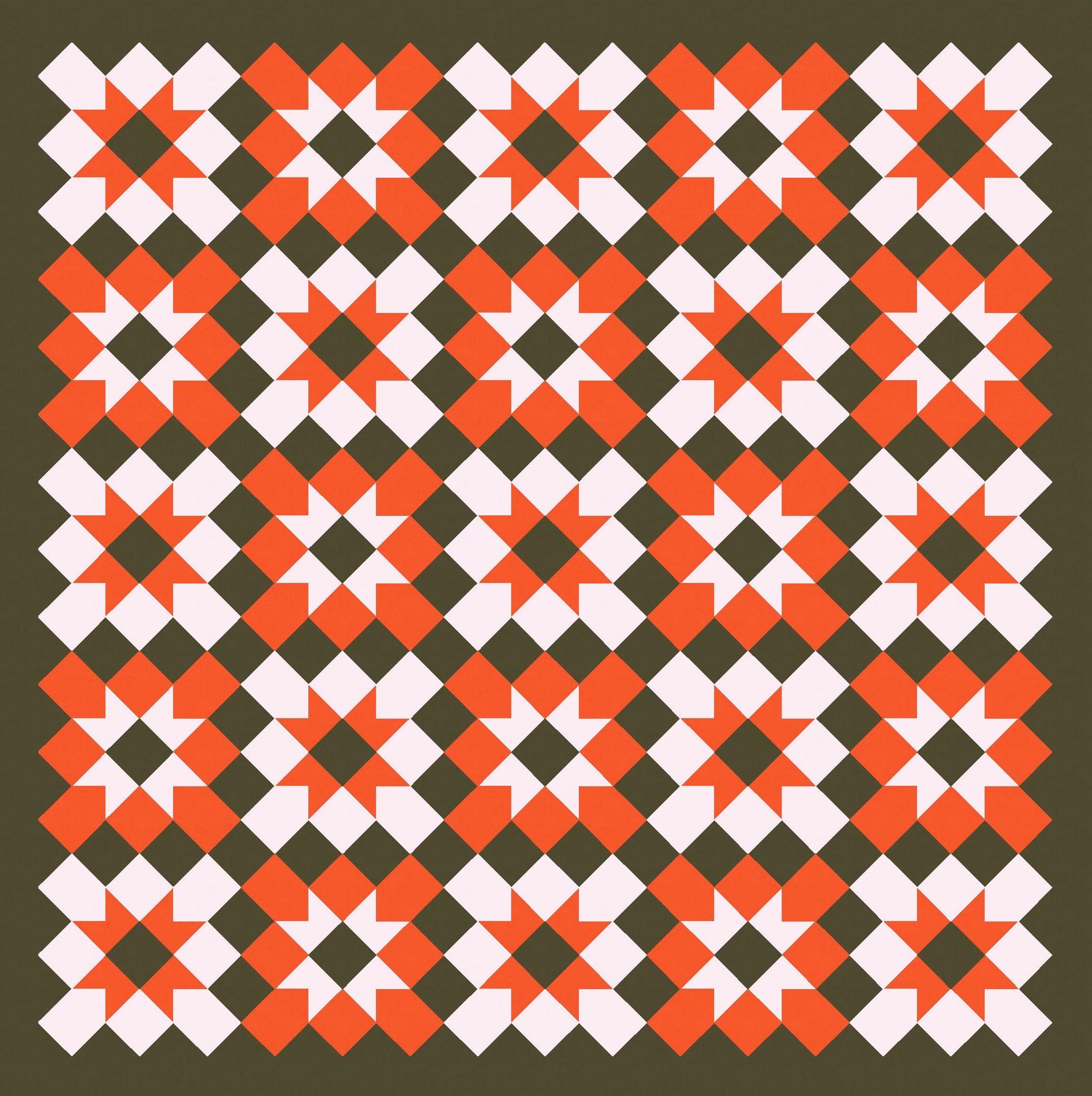 When I put the darkest colour as the background, and the mid-range and lightest colour are in the foreground, that effect disappears; the alternate blocks aren’t connected diagonally anymore. Maybe because those connections are lost, this version seems much busier and more chaotic to me.