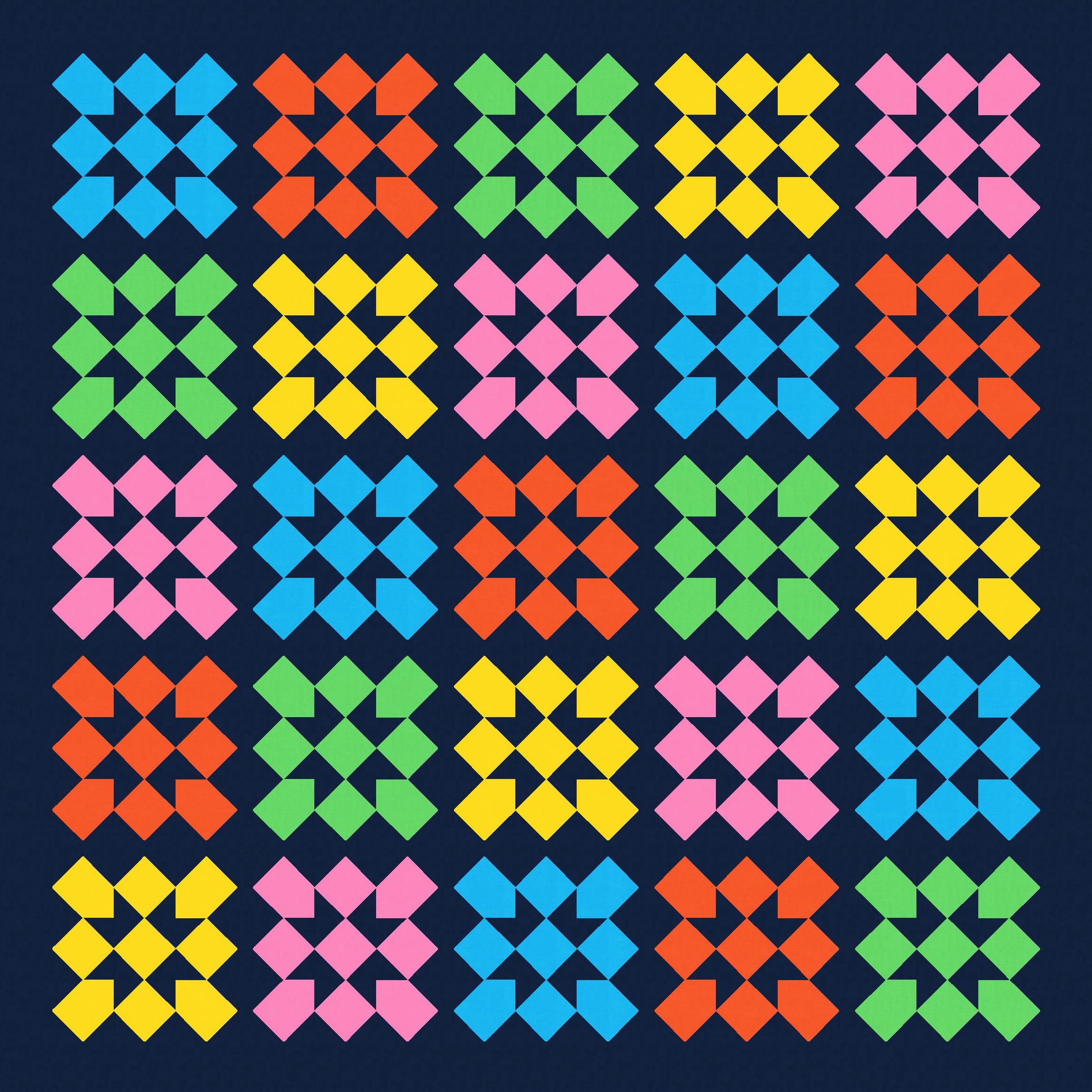 There’s scope for expanding the colour palette, of course. And there are lots of ways that the internal sawtooth stars can be coloured. I like them ’empty’, using just the background colour.