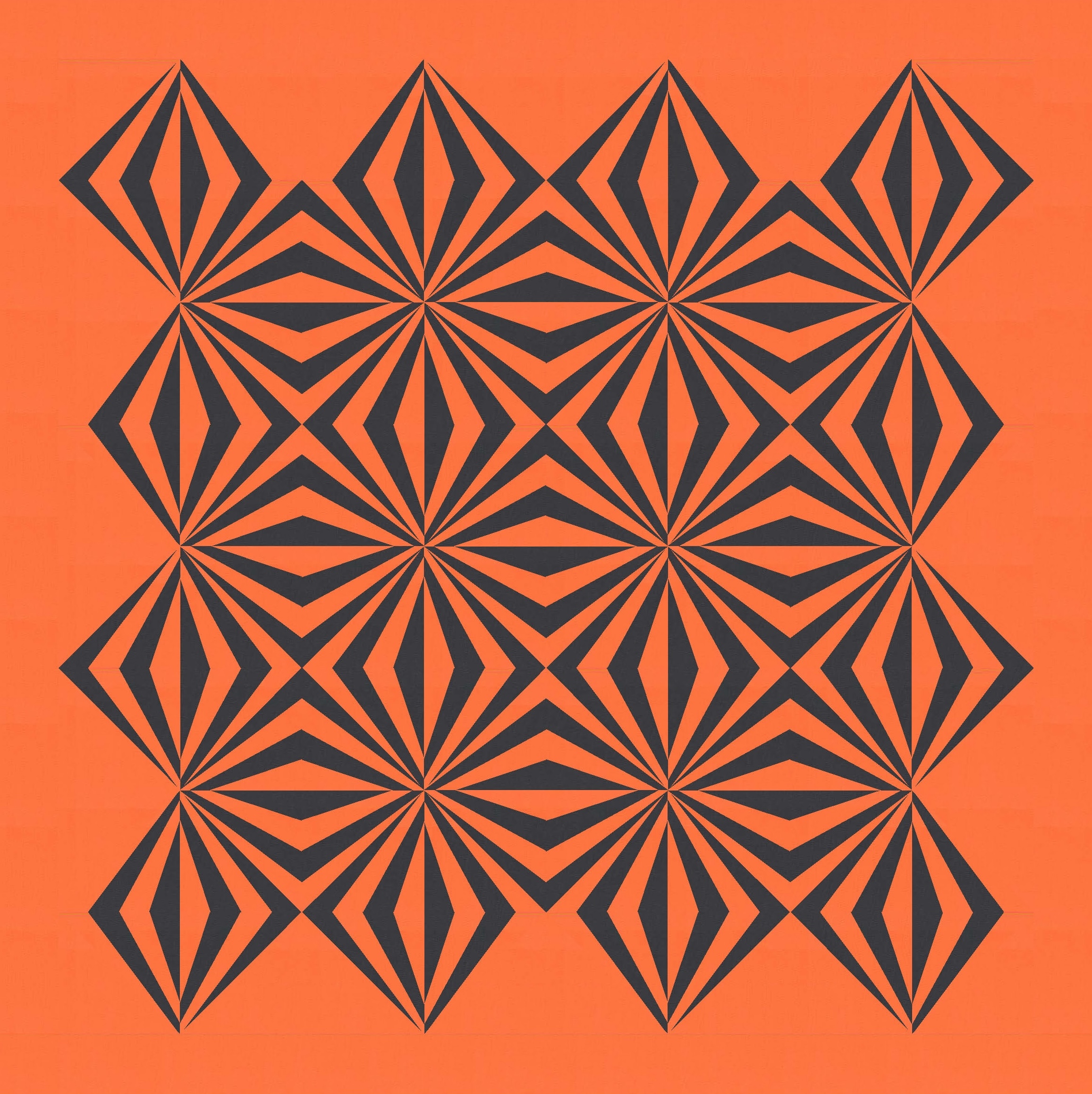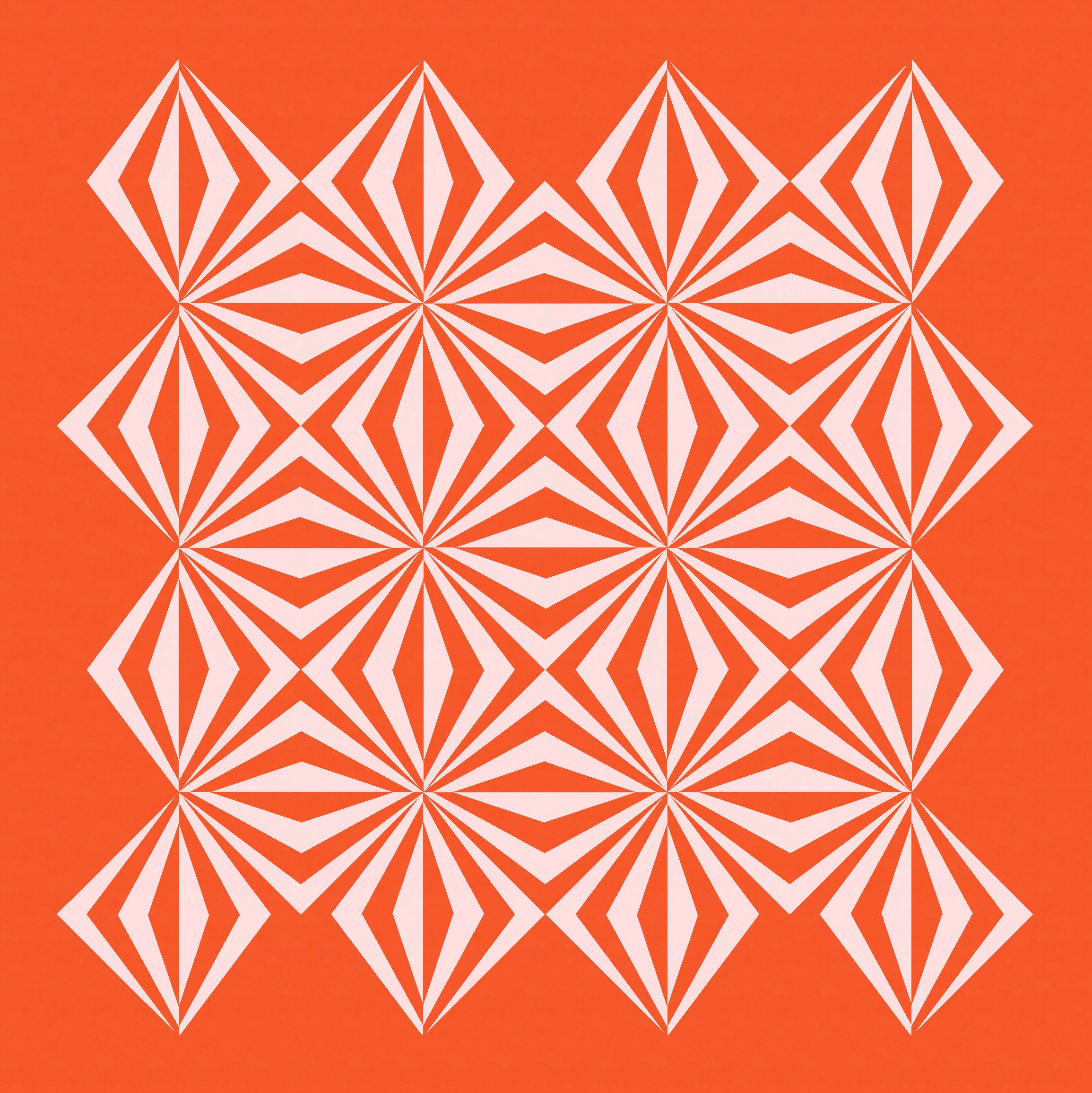 This week’s sketch reminds me a little of Sunday sketch #418, : they’re both two-colour designs featuring a stripy unit on point. But this design introduces a few more angles and has a bit more energy and movement, I think.