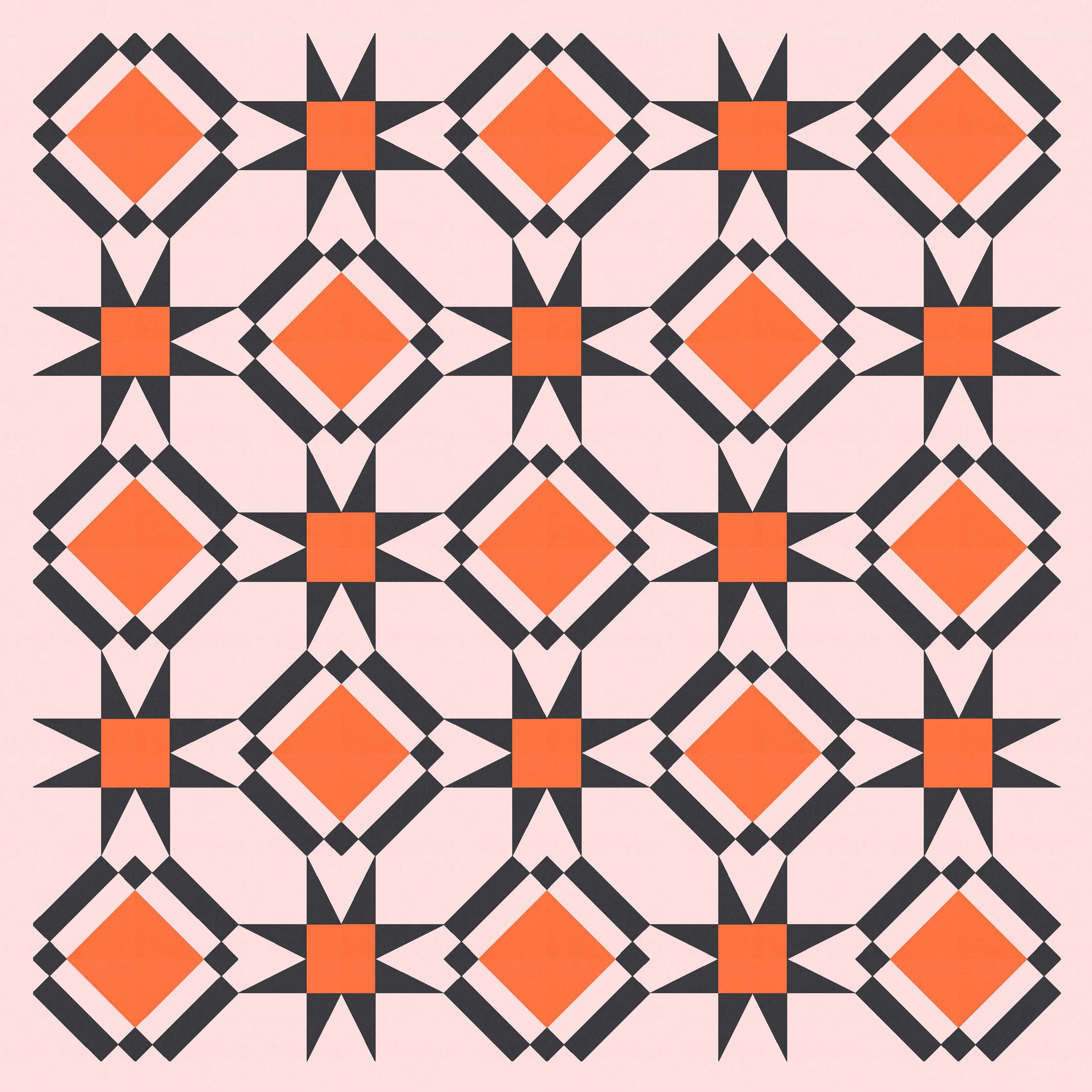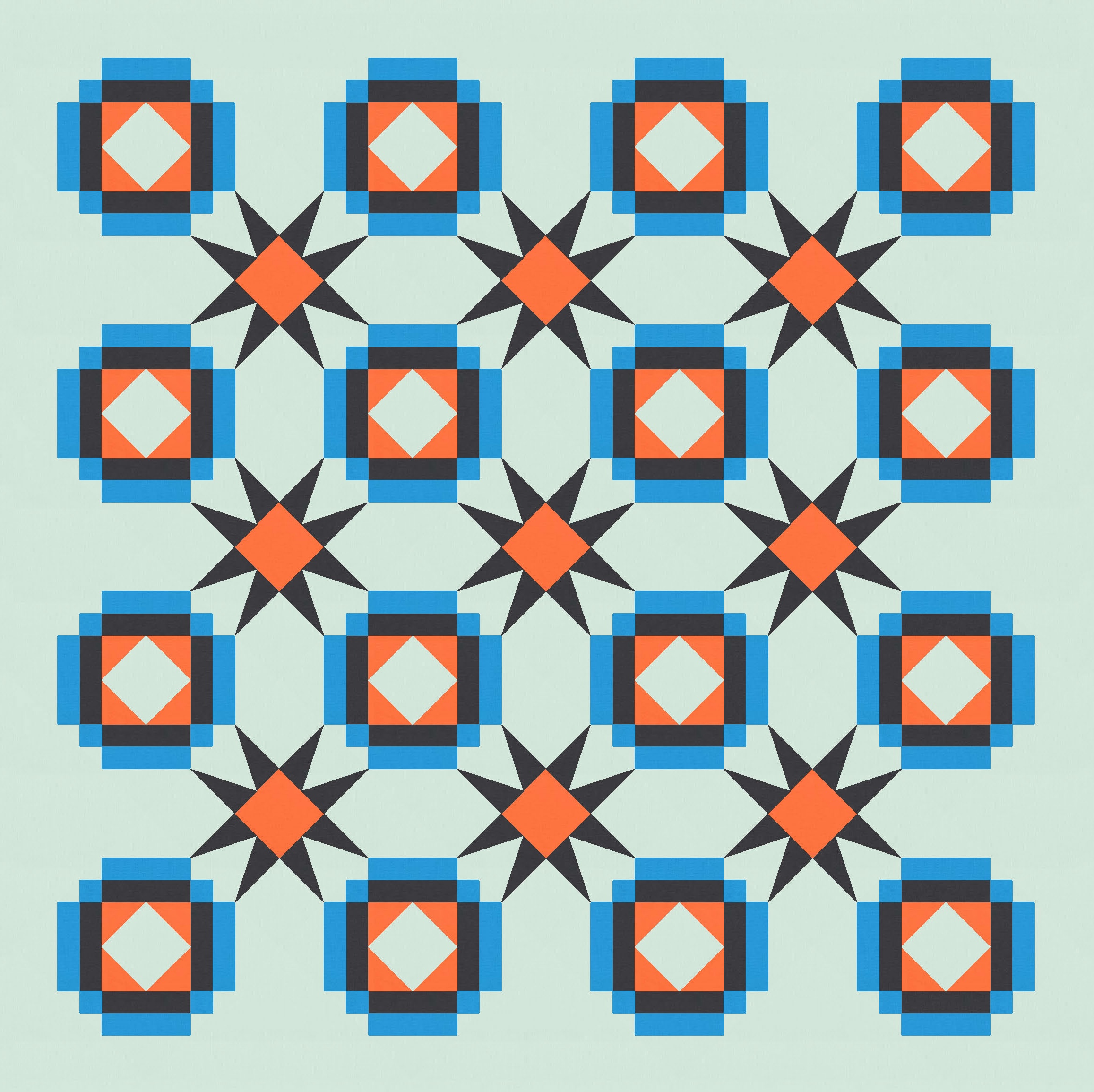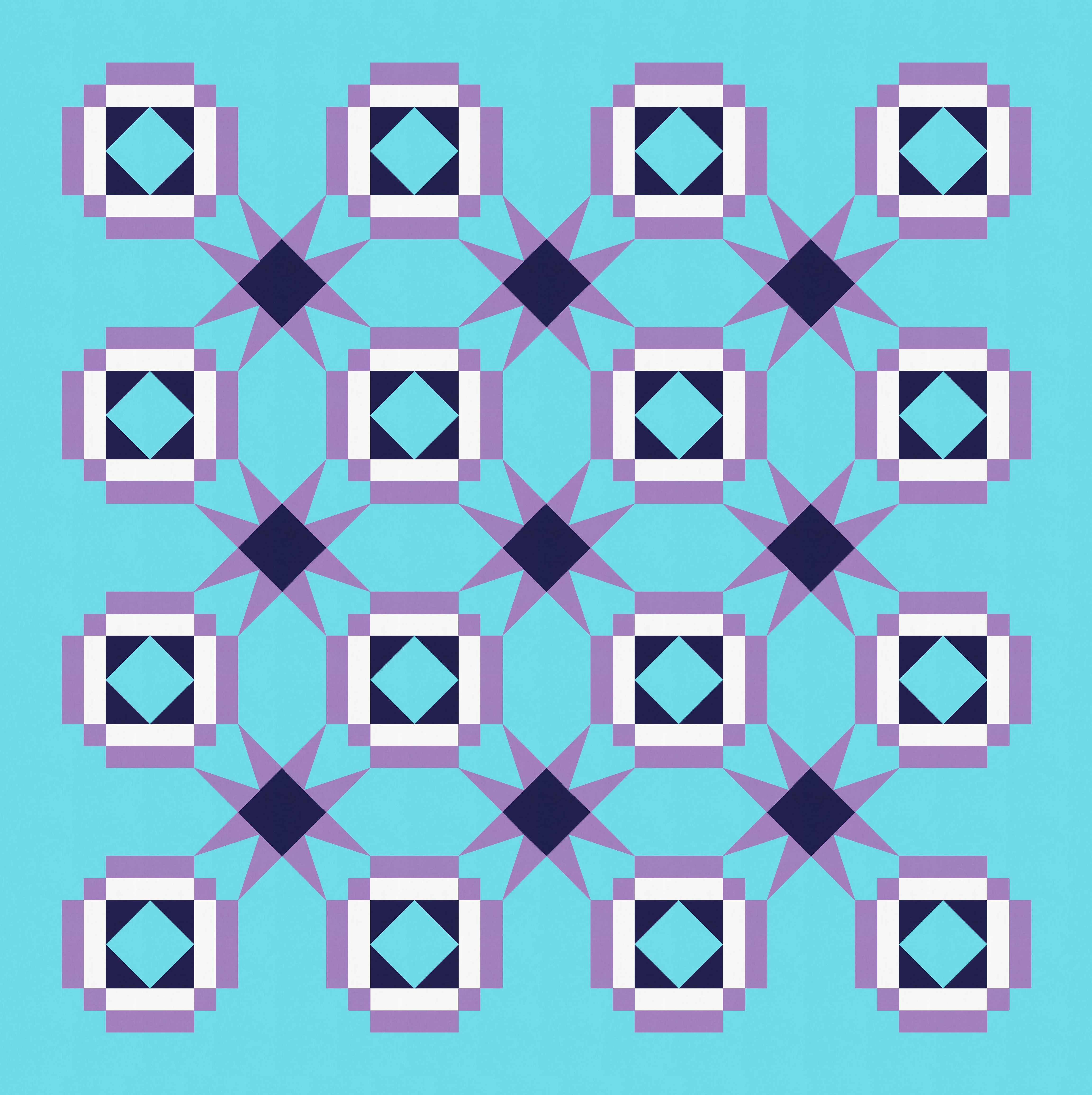 These are OK, but I was still looking for something with a bit more oomph, So I took the design one step further. I switched the whole thing to an on-point layout, and increased the colour palette a smidge. (OK, I guess that’s two steps 🙂 )
