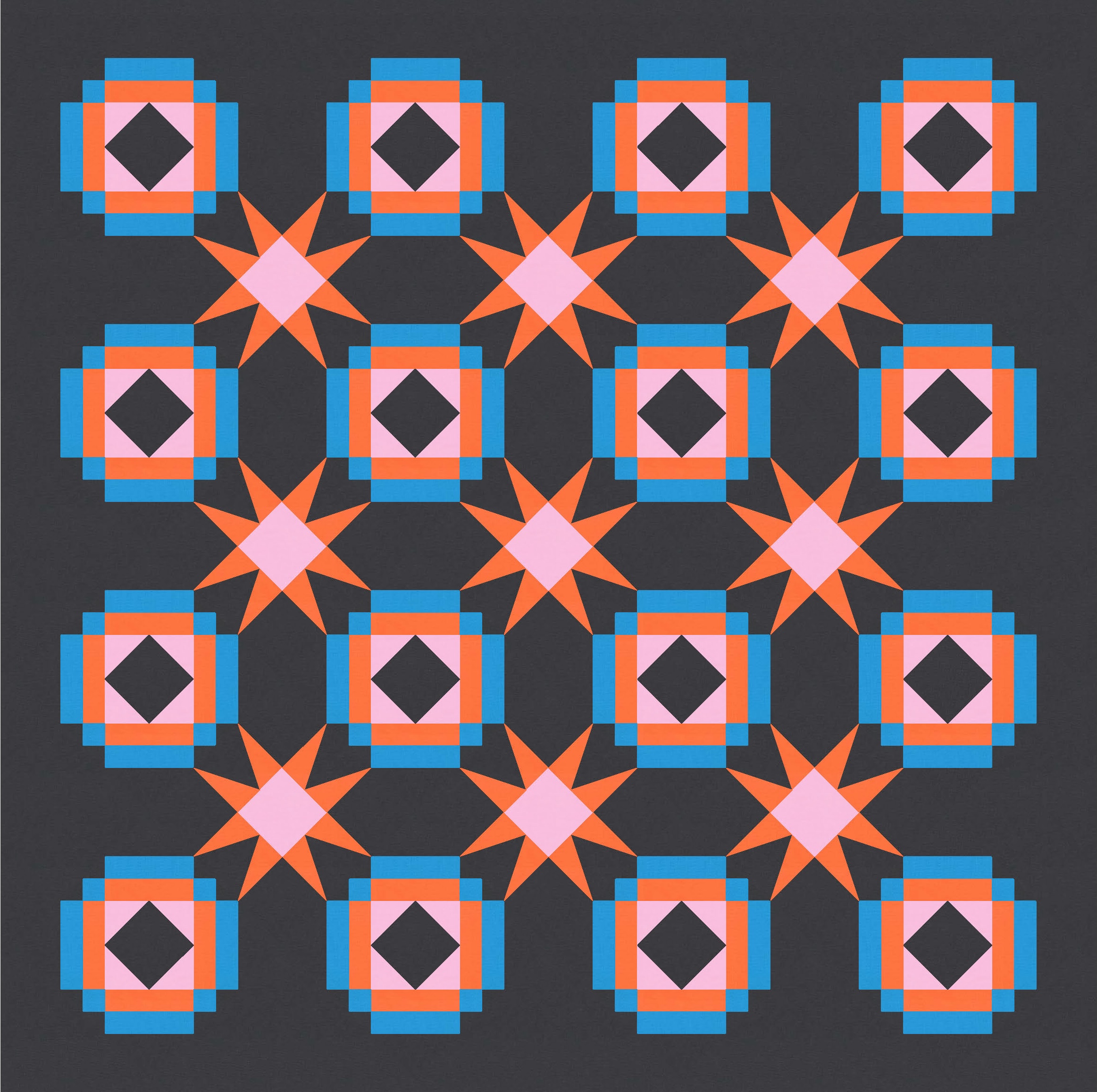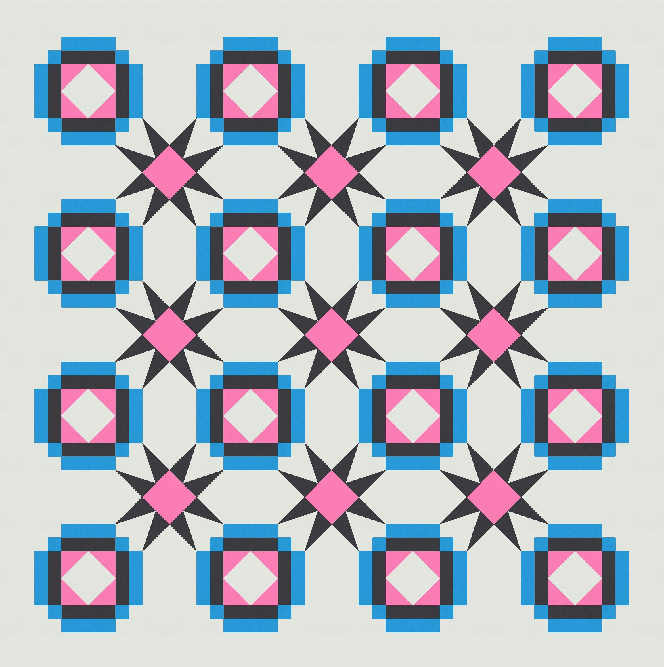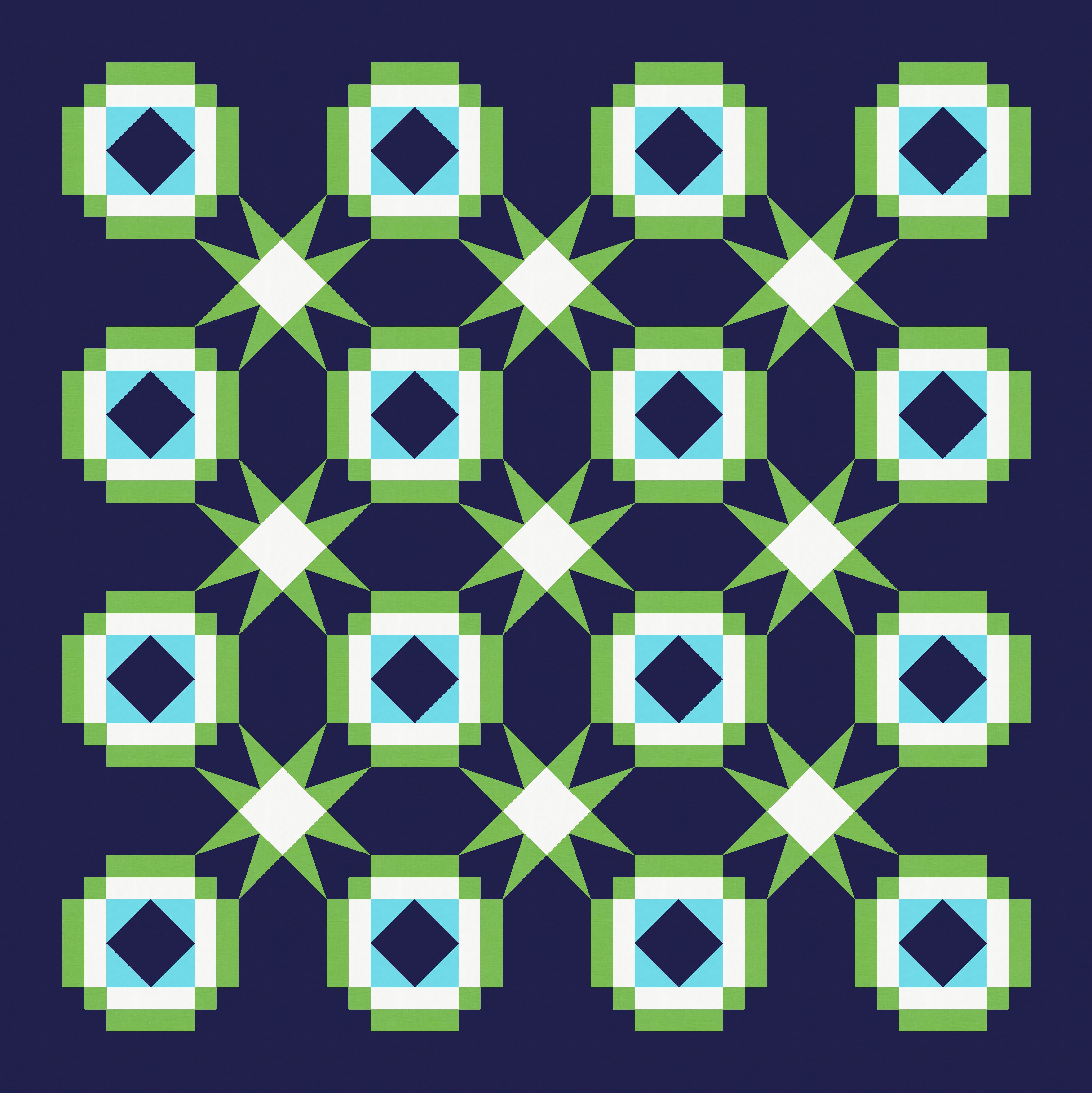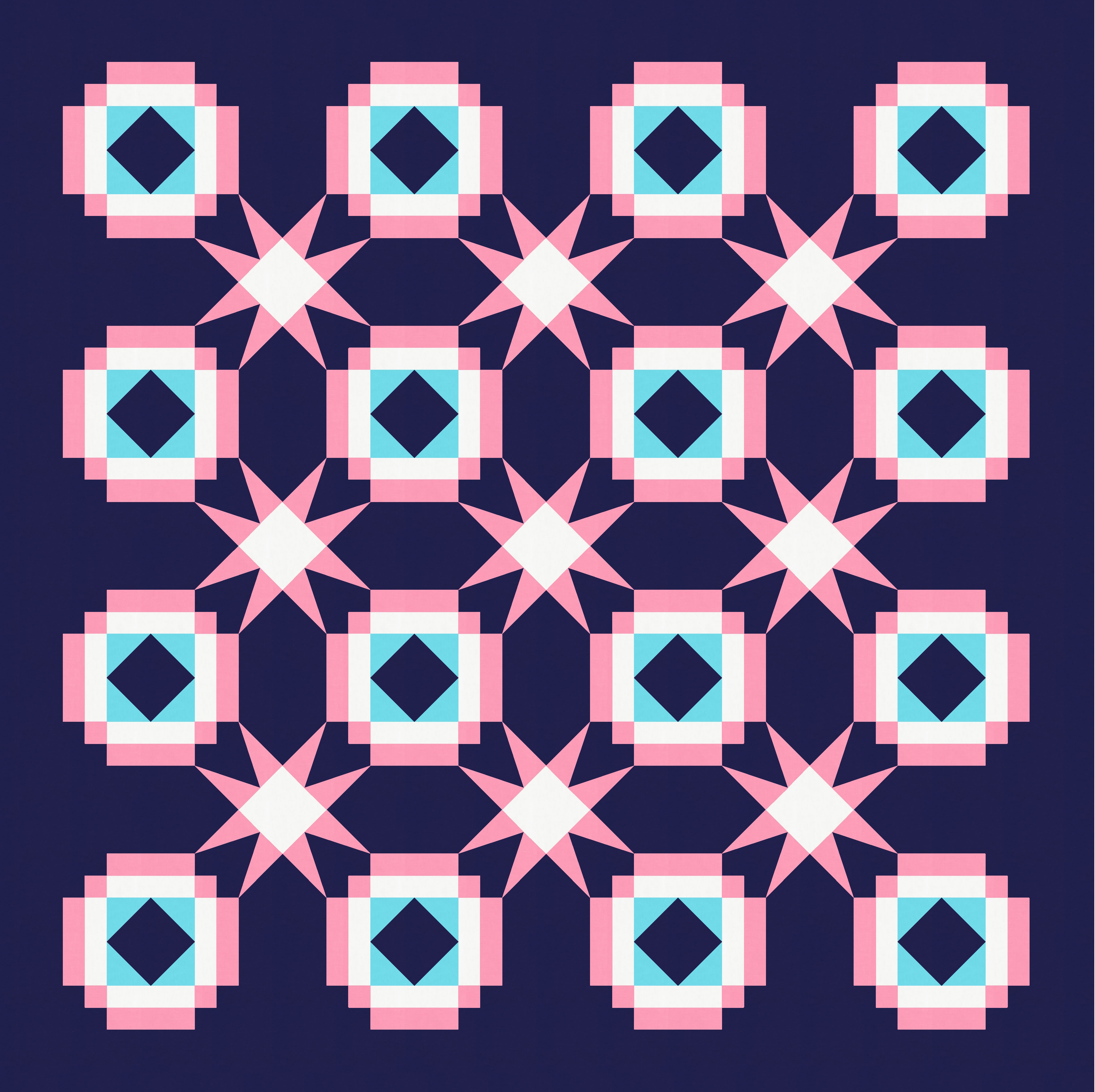 These are OK, but I was still looking for something with a bit more oomph, So I took the design one step further. I switched the whole thing to an on-point layout, and increased the colour palette a smidge. (OK, I guess that’s two steps 🙂 )