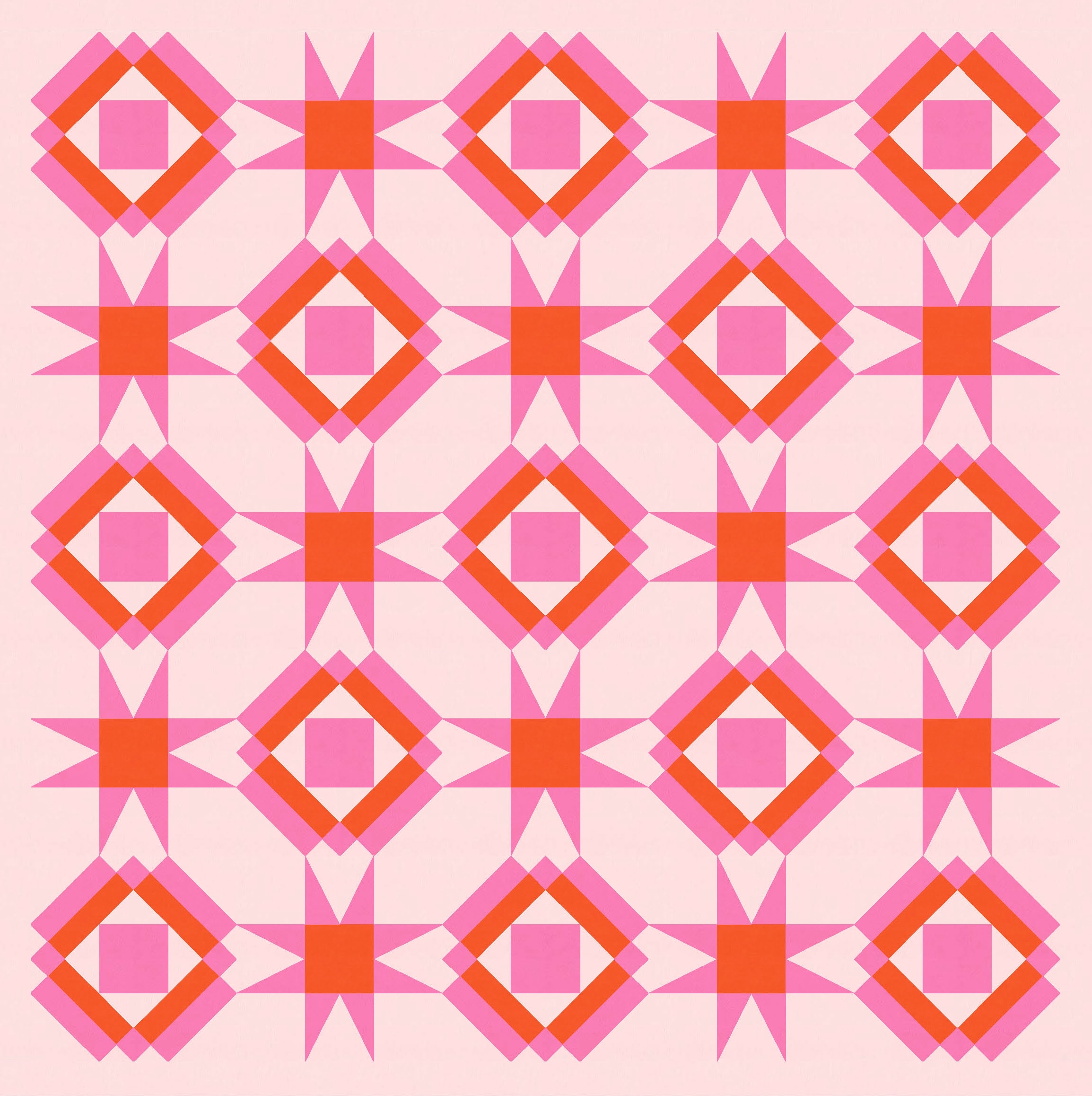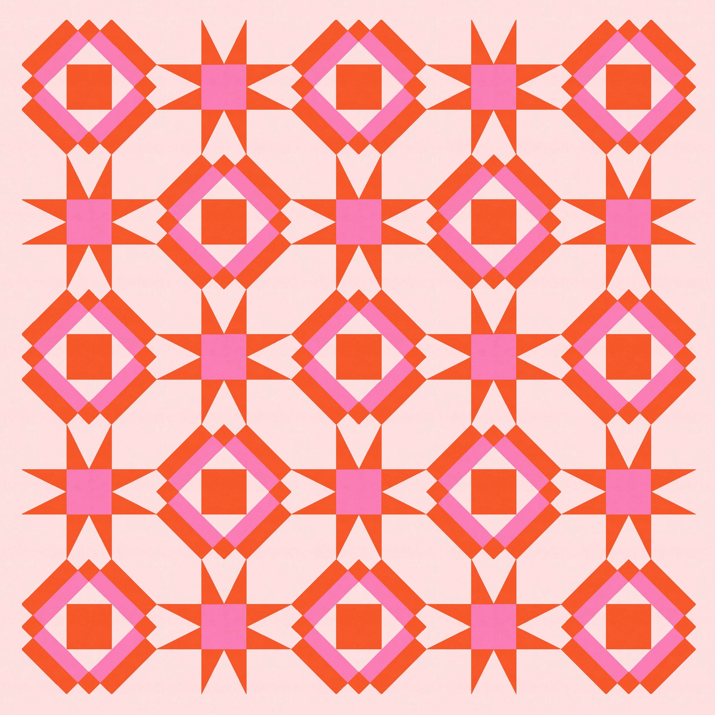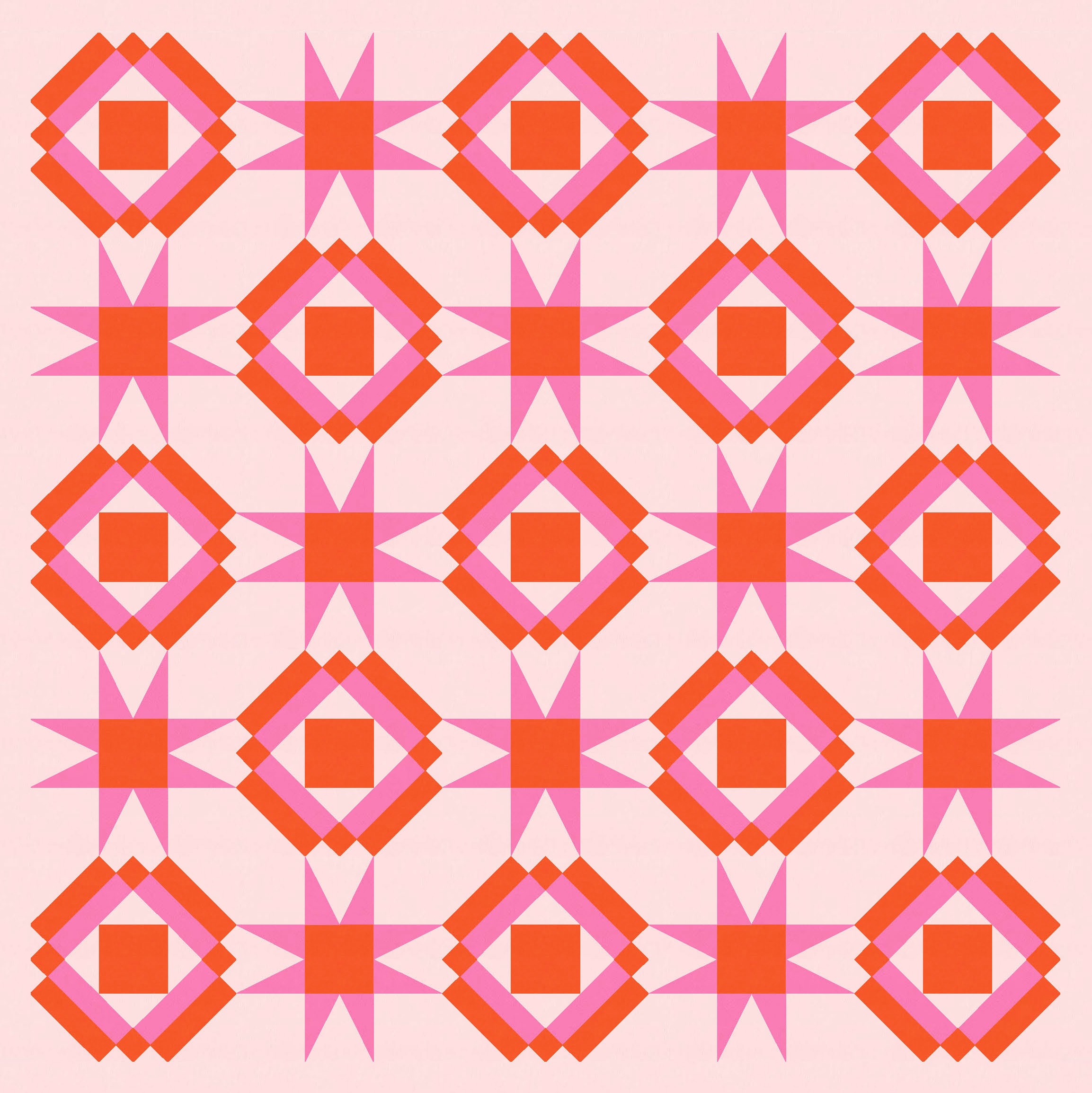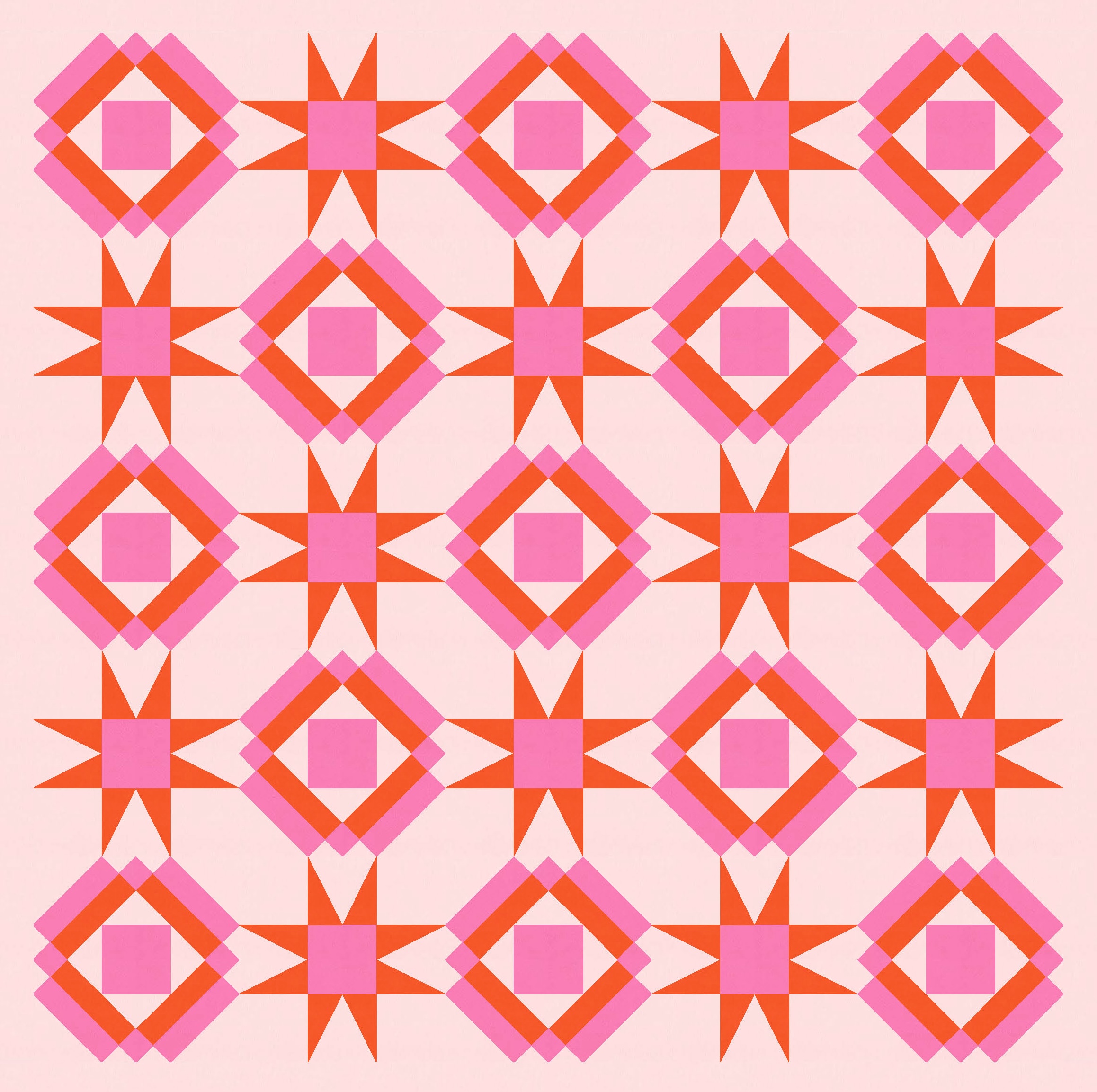 I’m not sure why I like this version more. Normally I prefer eight-pointed stars in a standard layout; I feel like their starriness is lost when they’re rotated (the on-point version feels a bit like a Maltese cross instead). And square blocks can have a bit more movement when they’re on point. But I dunno… I just like this version more. Maybe because it feels a little unexpected? Maybe the added colour is doing all the heavy lifting? Who knows.