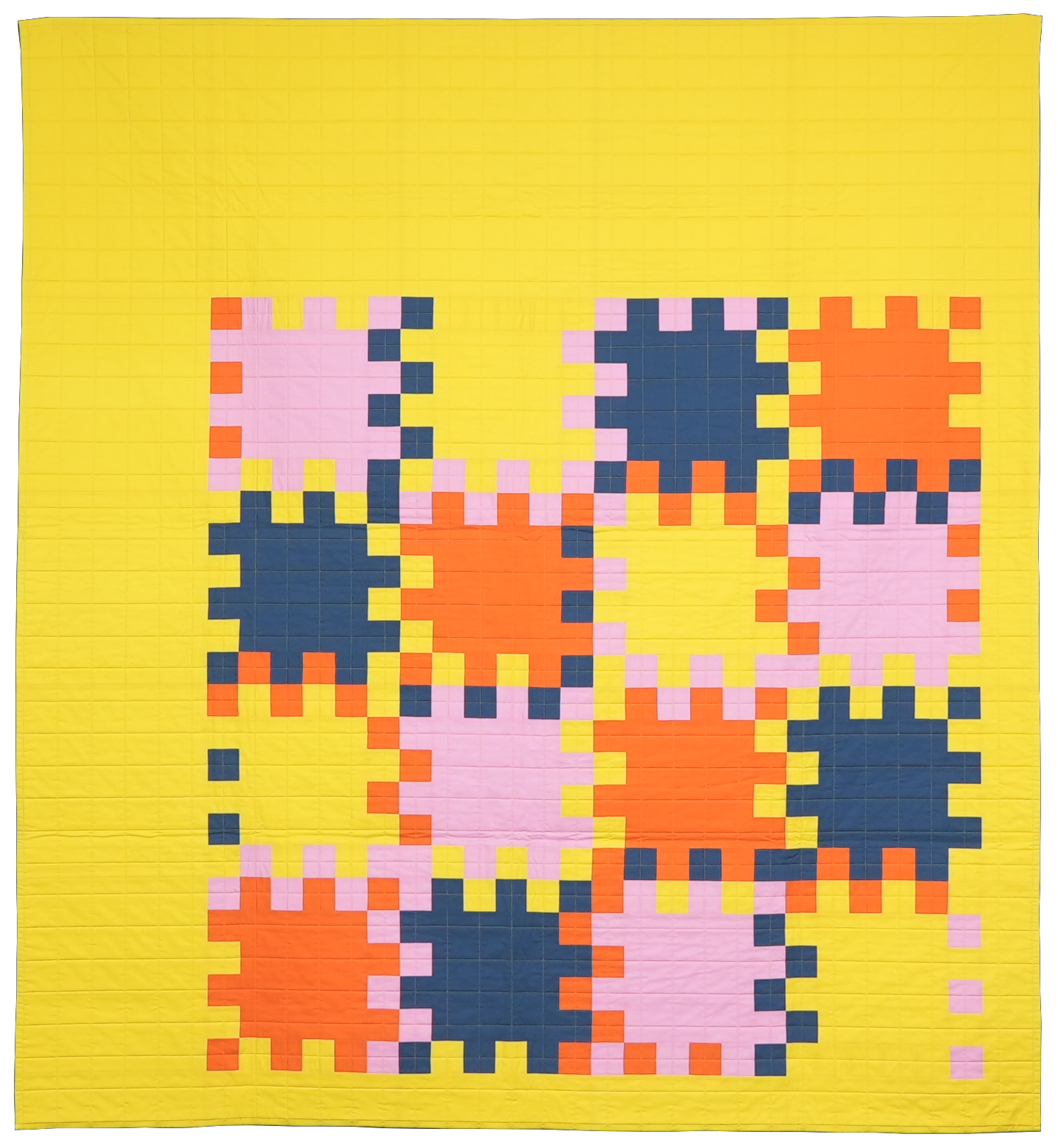 (I omitted some of the blocks and ‘bristles’ to introduce some negative space in that sketch/quilt, but the underlying designs are similar in that they both use blocks that fully interlock.)