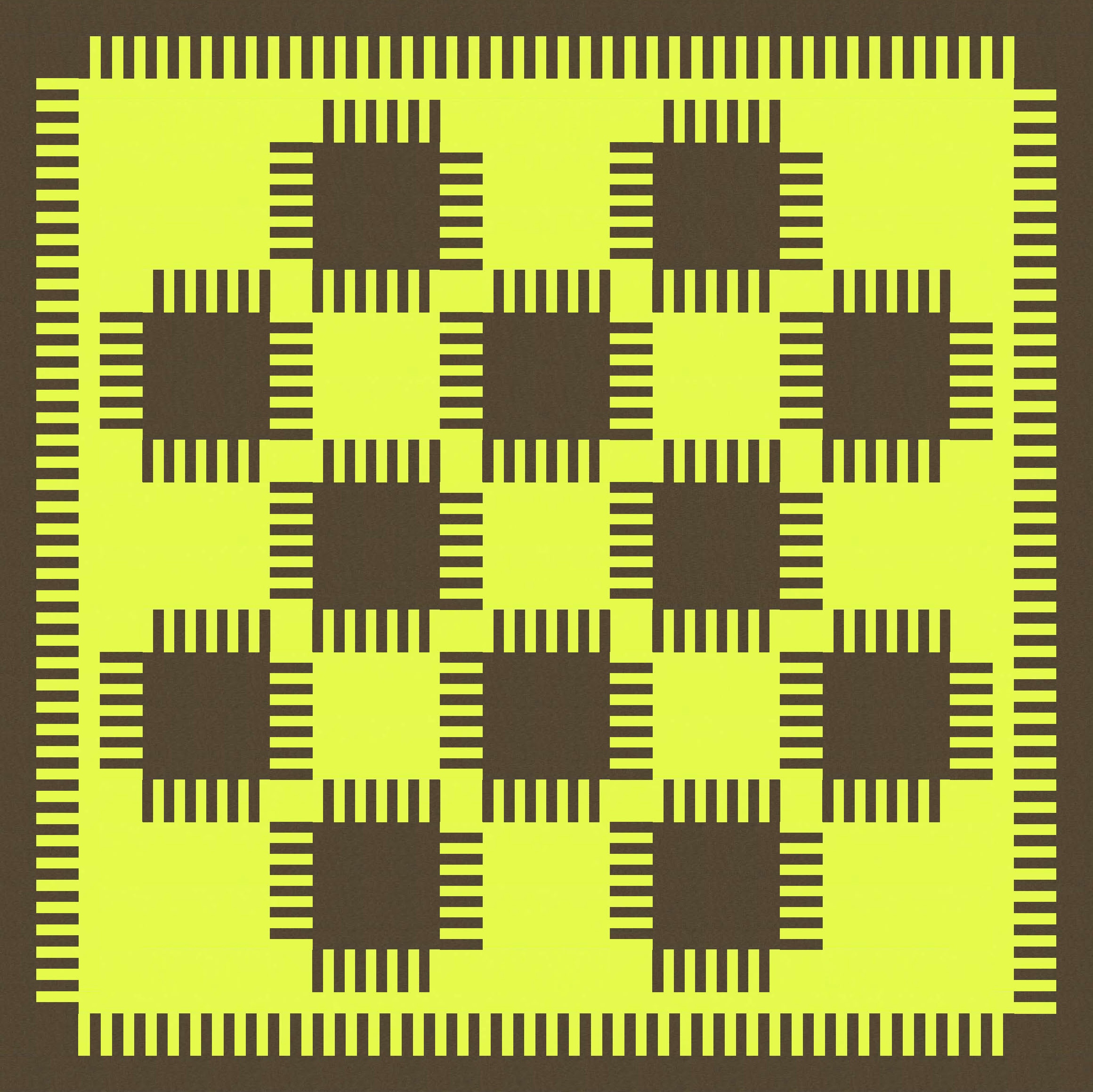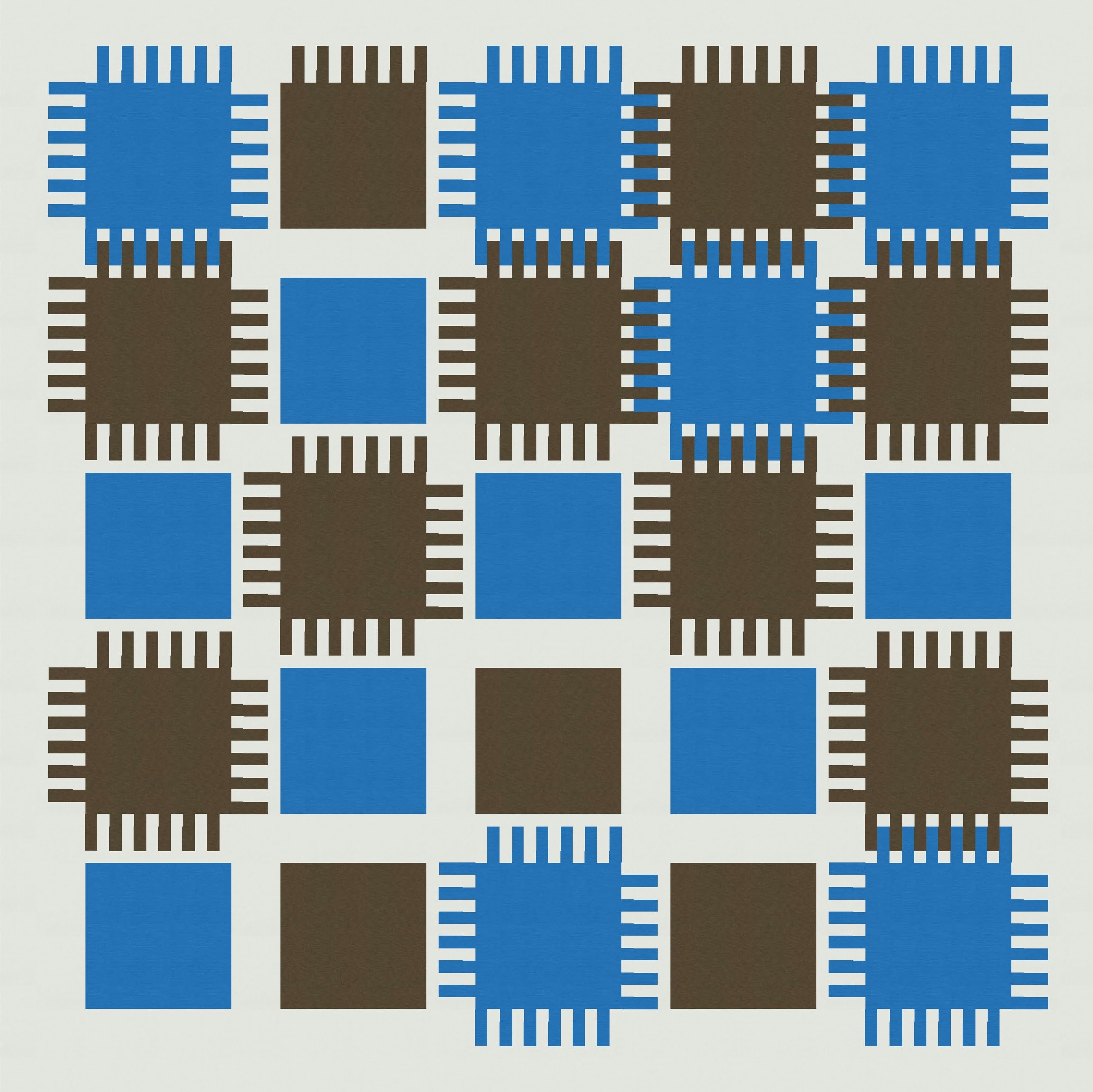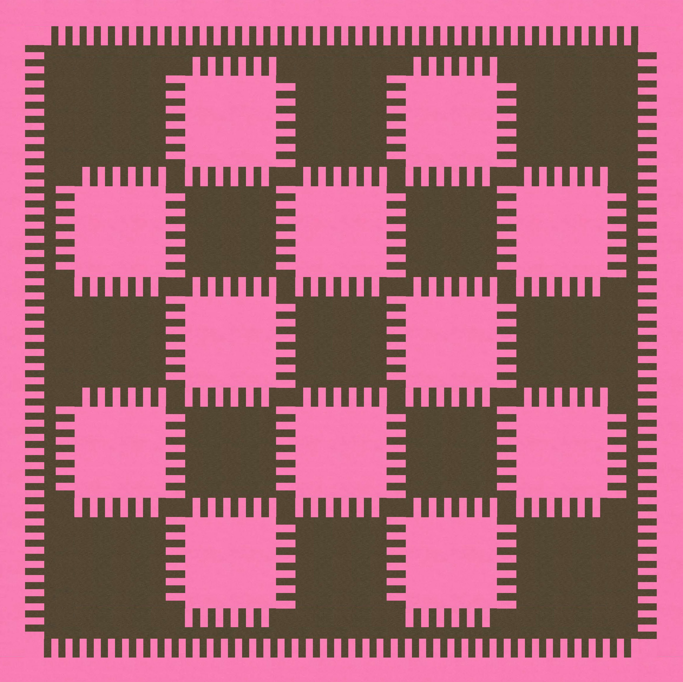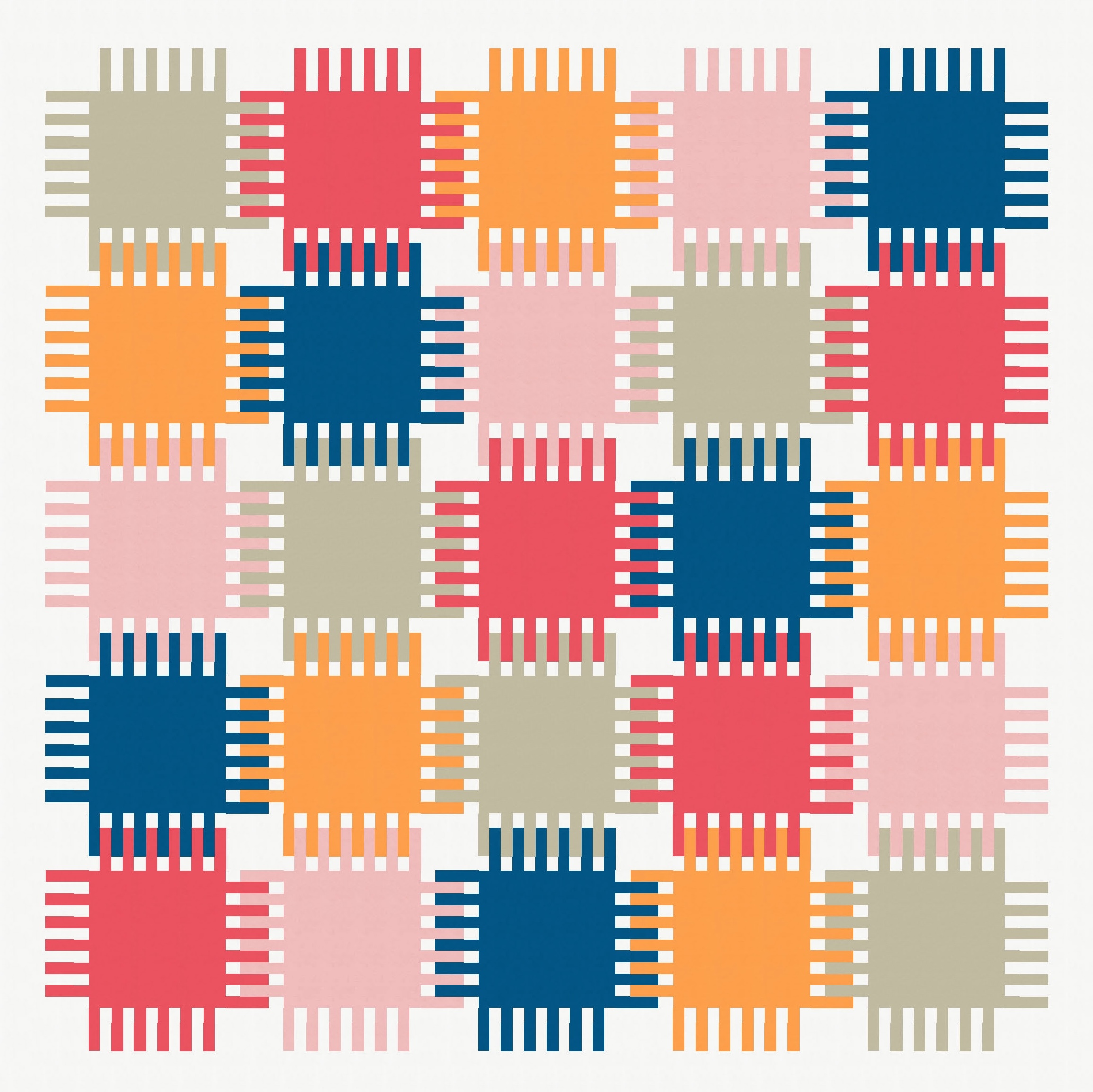 I also played around with how the bristles on adjacent blocks interact: do they interlock fully or only partially? I tried fully interlocking first, which reveals the background colour only at the corners of the blocks.