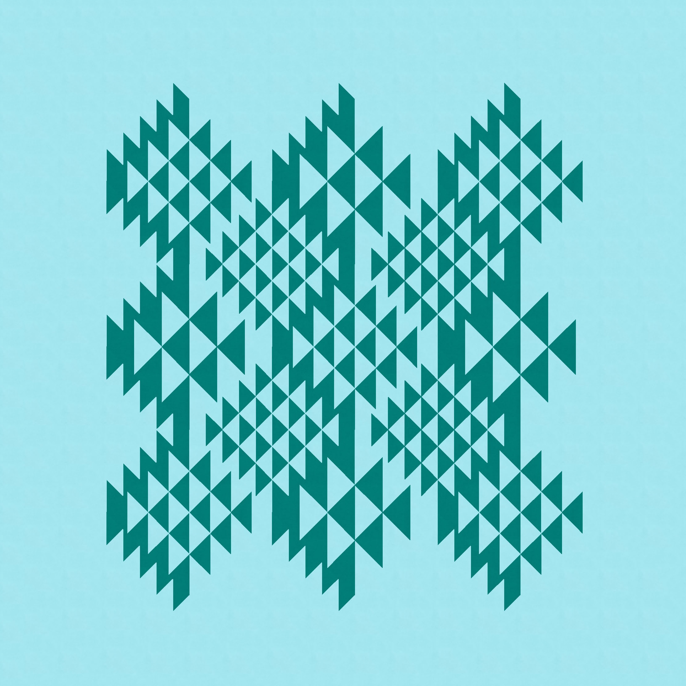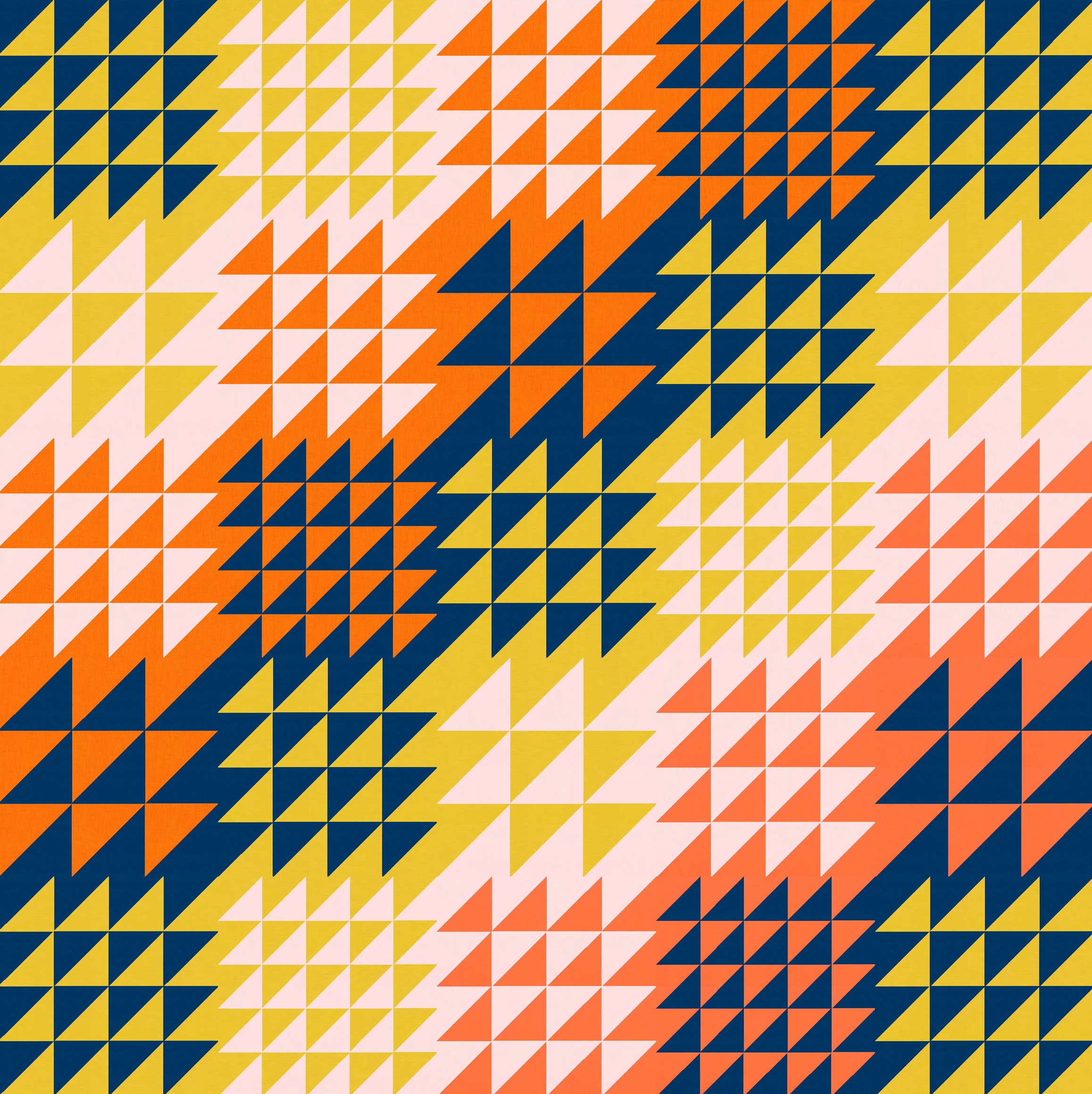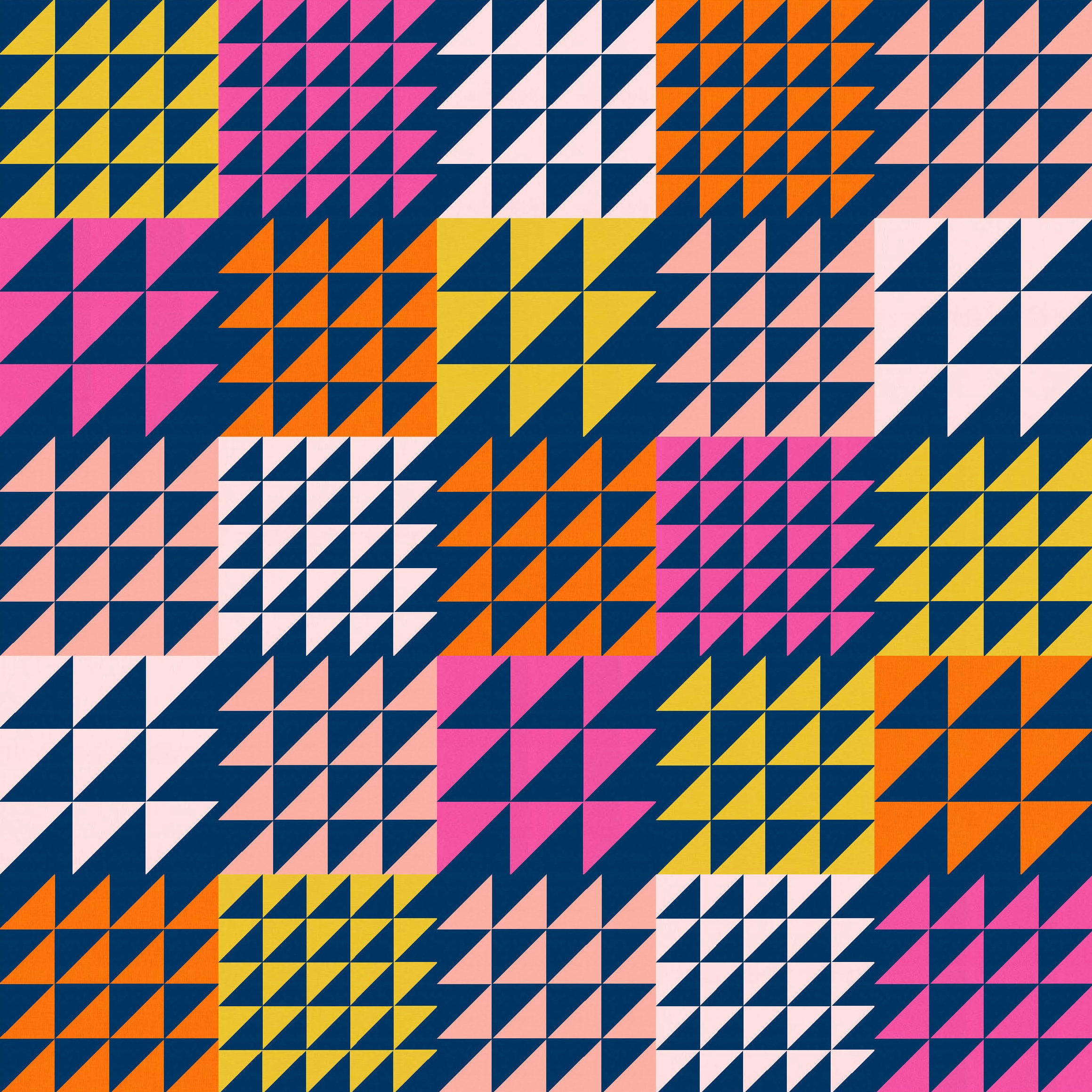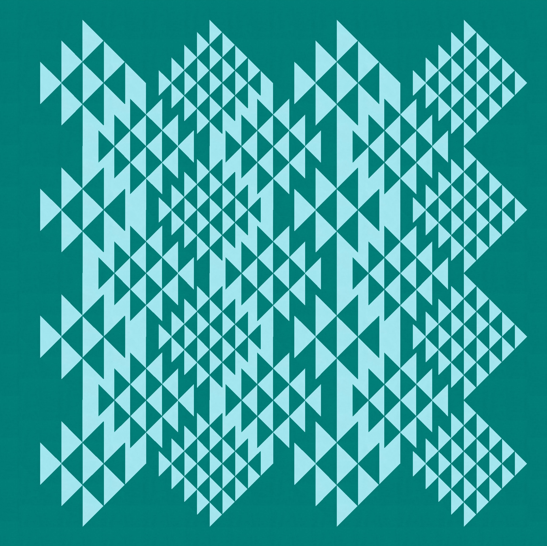 I can also set the blocks in a standard layout, so the grid becomes horizontal/vertical and the lines between the triangles run diagonally. Those solid channels between the blocks are still there, also running diagonally now. And I can just use solid colour for some of the top left and bottom right blocks to let those triangles hang free.