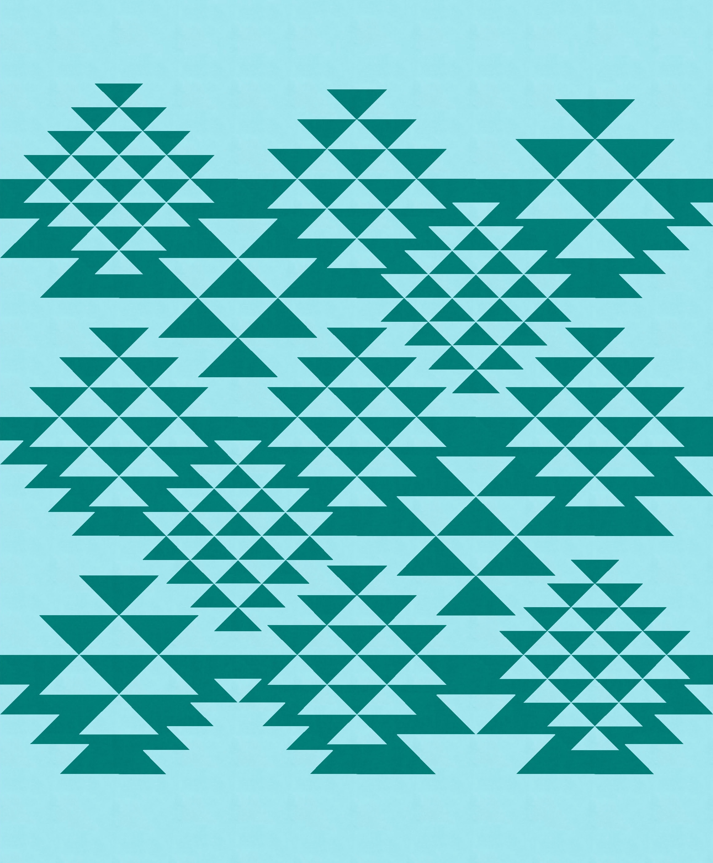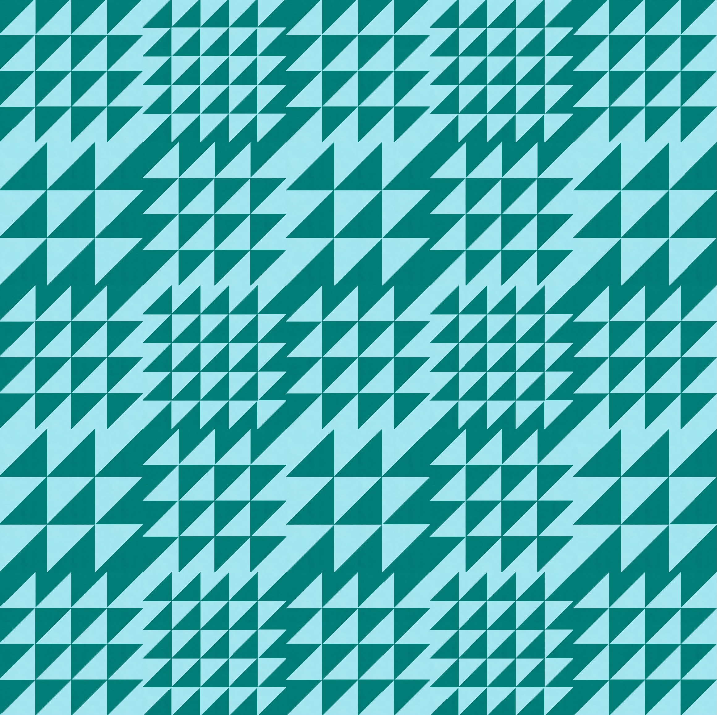 Just as last week’s design required only squares to make into a quilt, this week’s requires only half-square triangles (in three sizes). I think these designs would work well as improv (that is, not requiring precision to make the HSTs); there’s not a lot of points-matching, and I think the designs would work even with a bit of wonkiness.