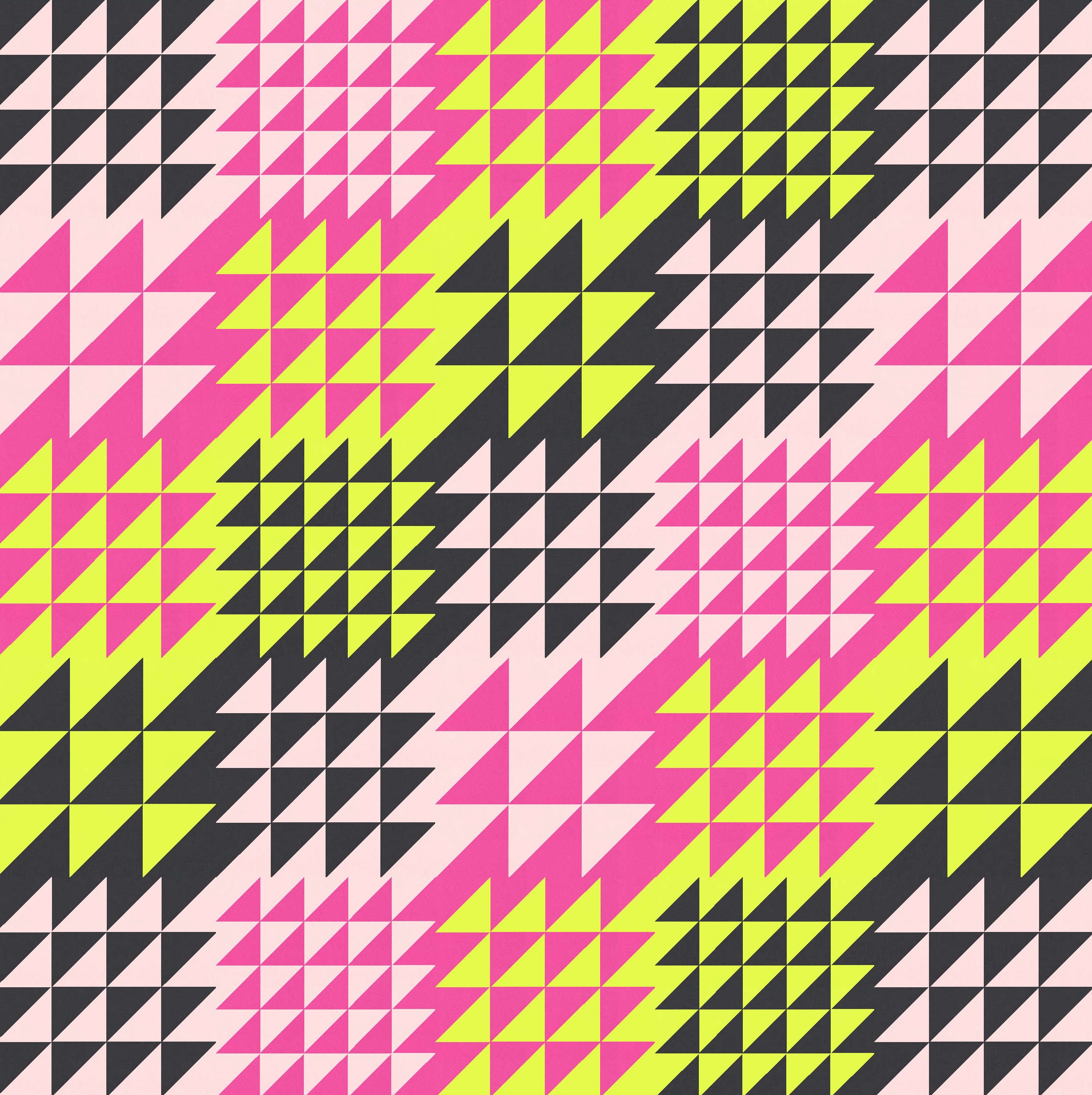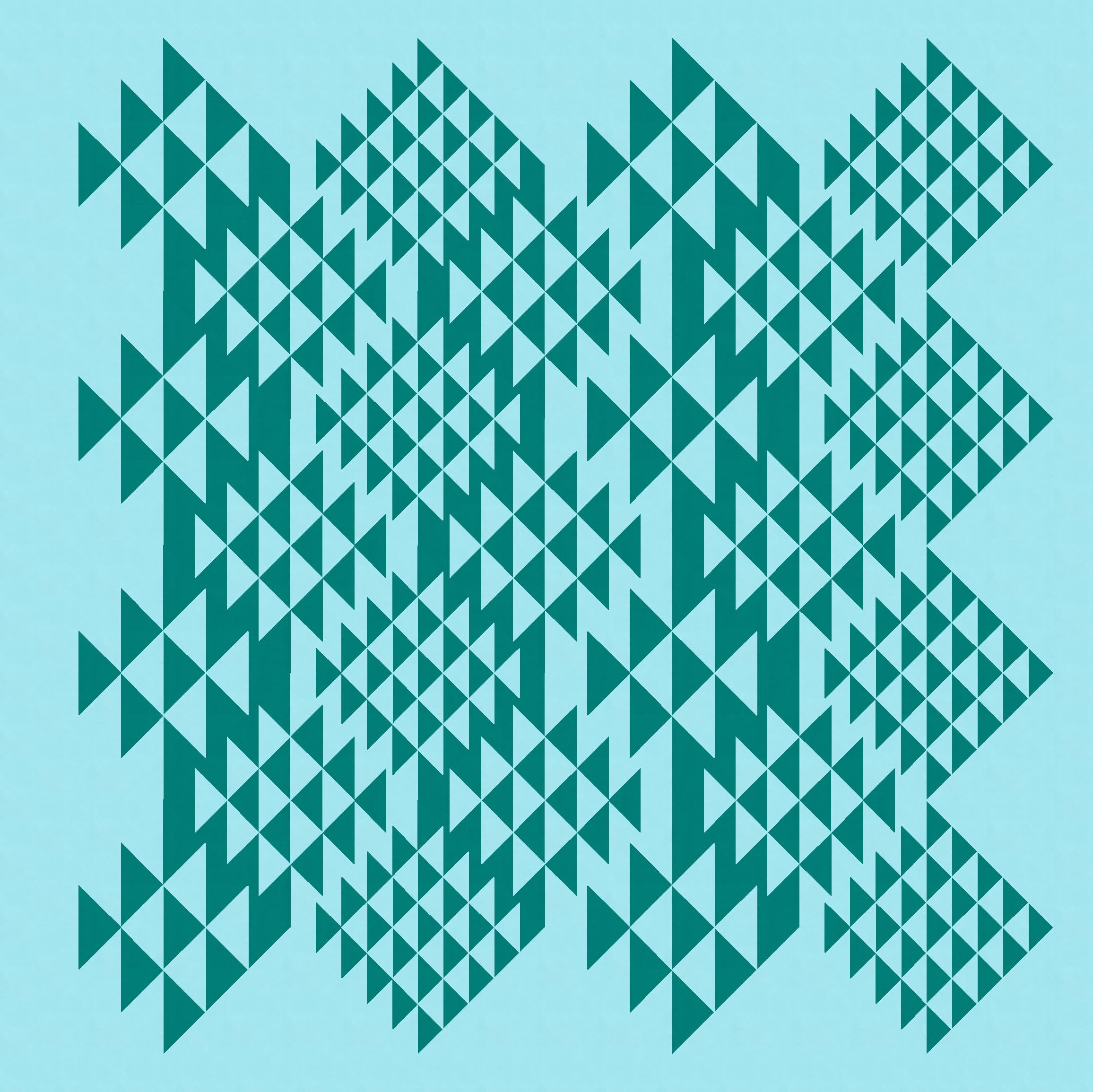 I can also set the blocks in a standard layout, so the grid becomes horizontal/vertical and the lines between the triangles run diagonally. Those solid channels between the blocks are still there, also running diagonally now. And I can just use solid colour for some of the top left and bottom right blocks to let those triangles hang free.