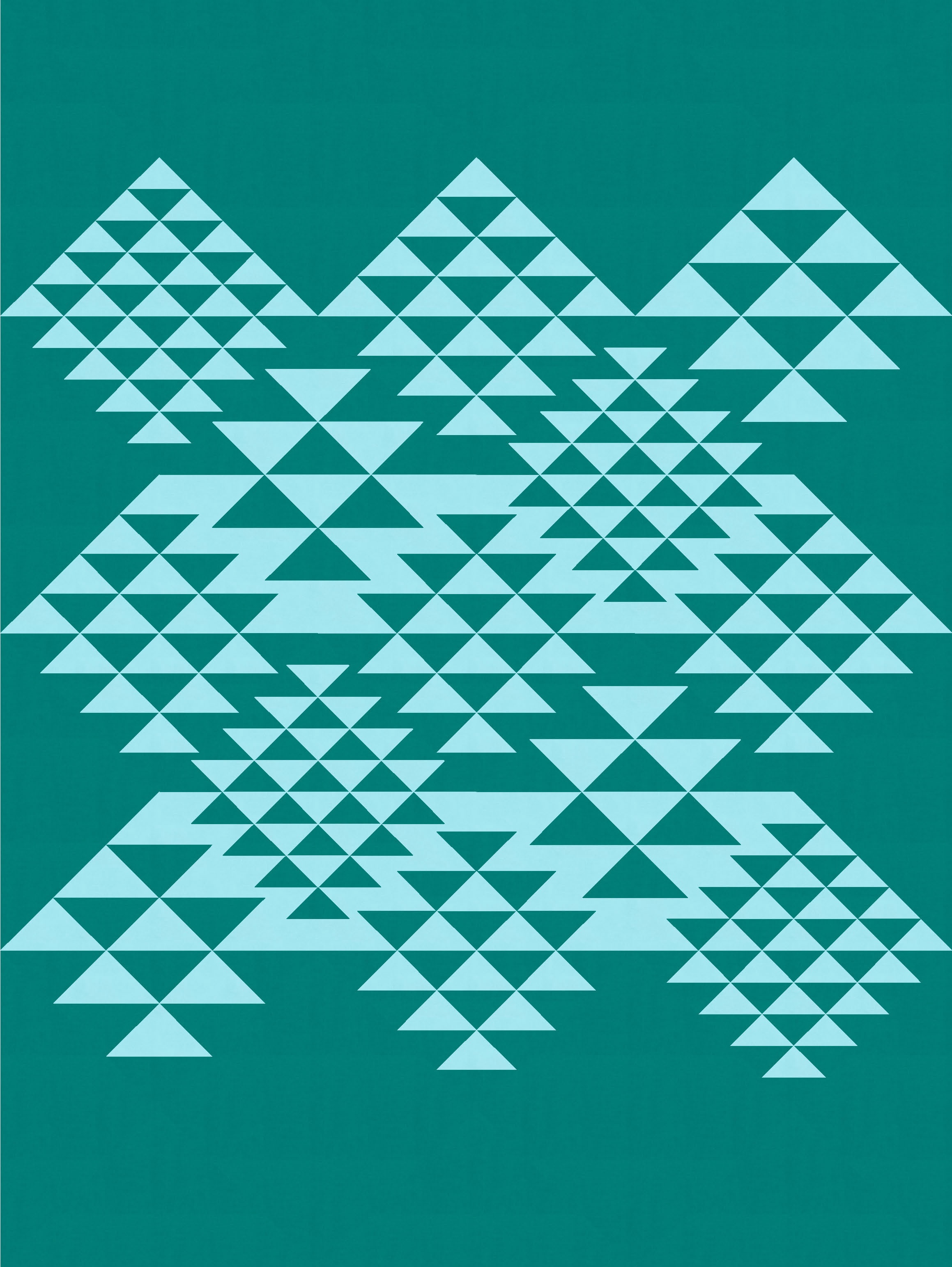 Just as last week’s design required only squares to make into a quilt, this week’s requires only half-square triangles (in three sizes). I think these designs would work well as improv (that is, not requiring precision to make the HSTs); there’s not a lot of points-matching, and I think the designs would work even with a bit of wonkiness.