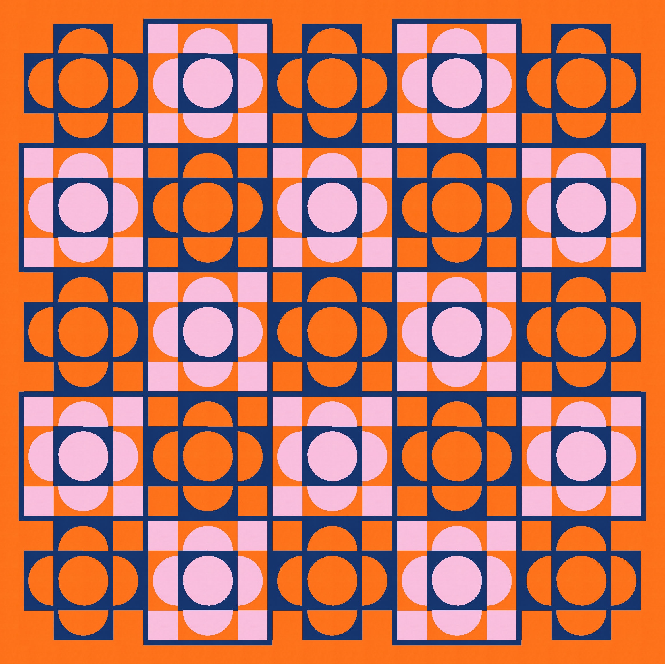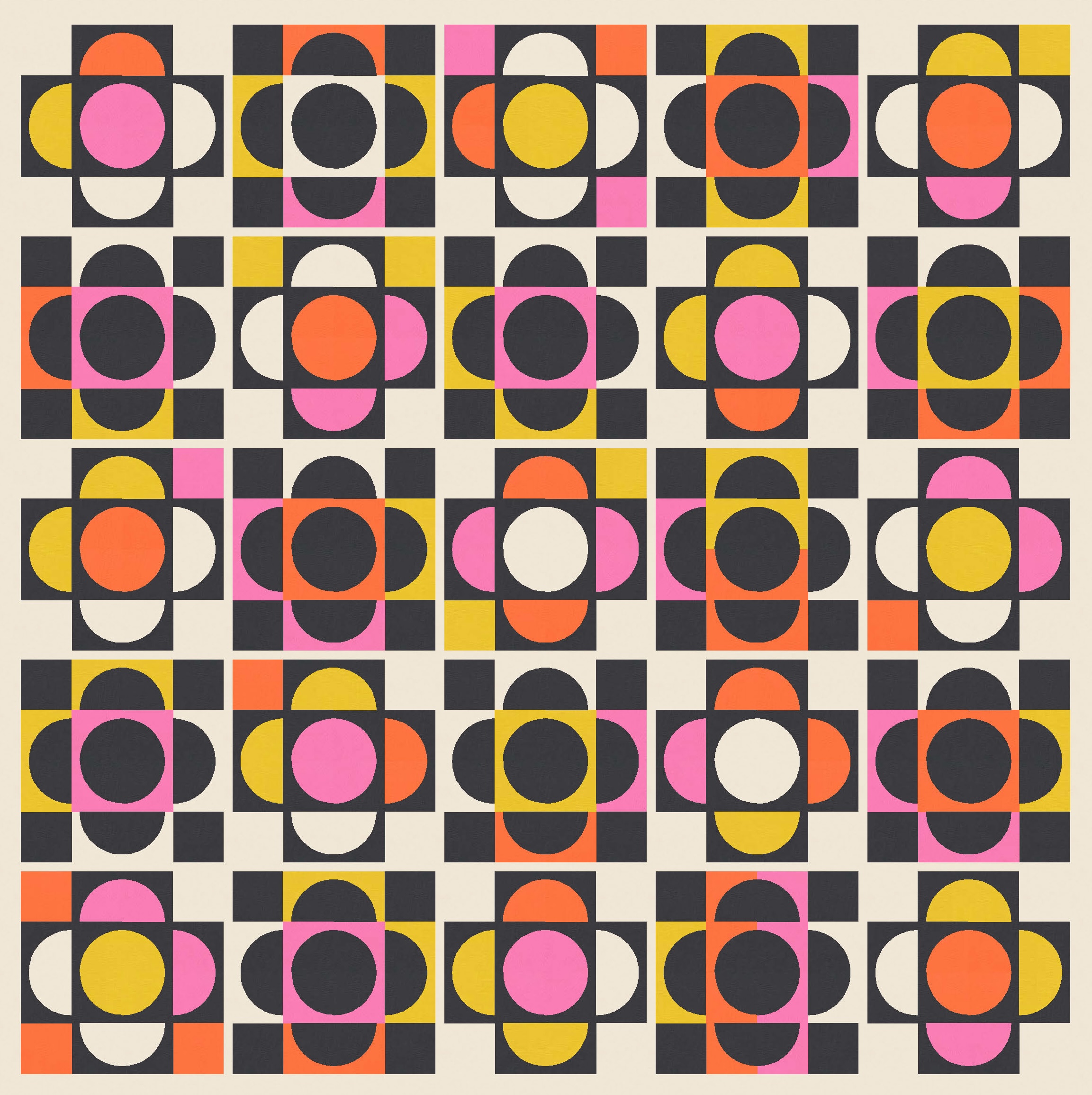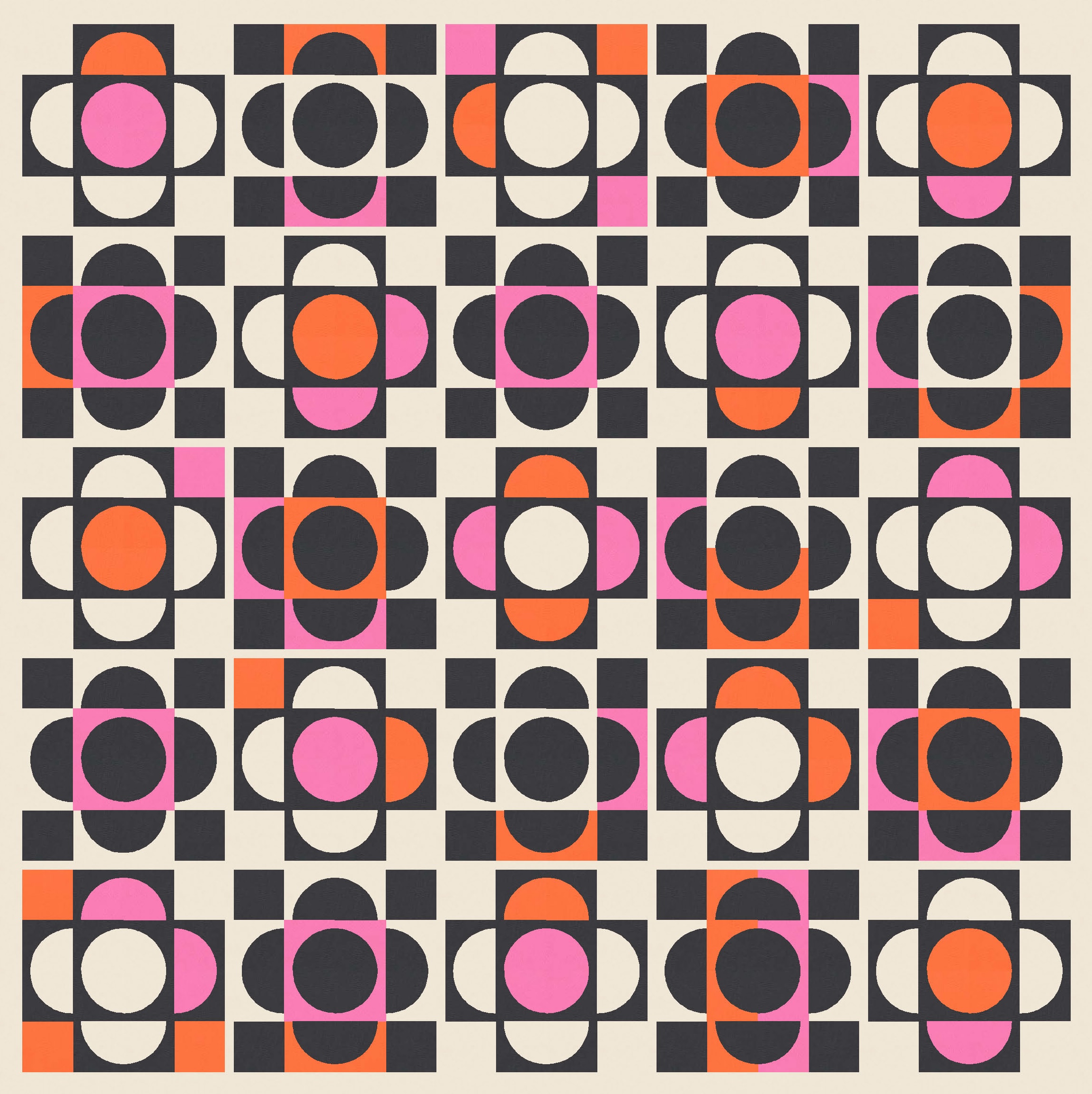 Apart from the first version I’ve showed up top, my favourite is a kinda ‘improvisationally coloured’ version. I started with a plain ol’ beige and black version, then added some bright orange and hot pink in random spots, only ever replacing the background colour, not the black. Then I decided to go one step further and add some yellow. Still my favourite colour combo!