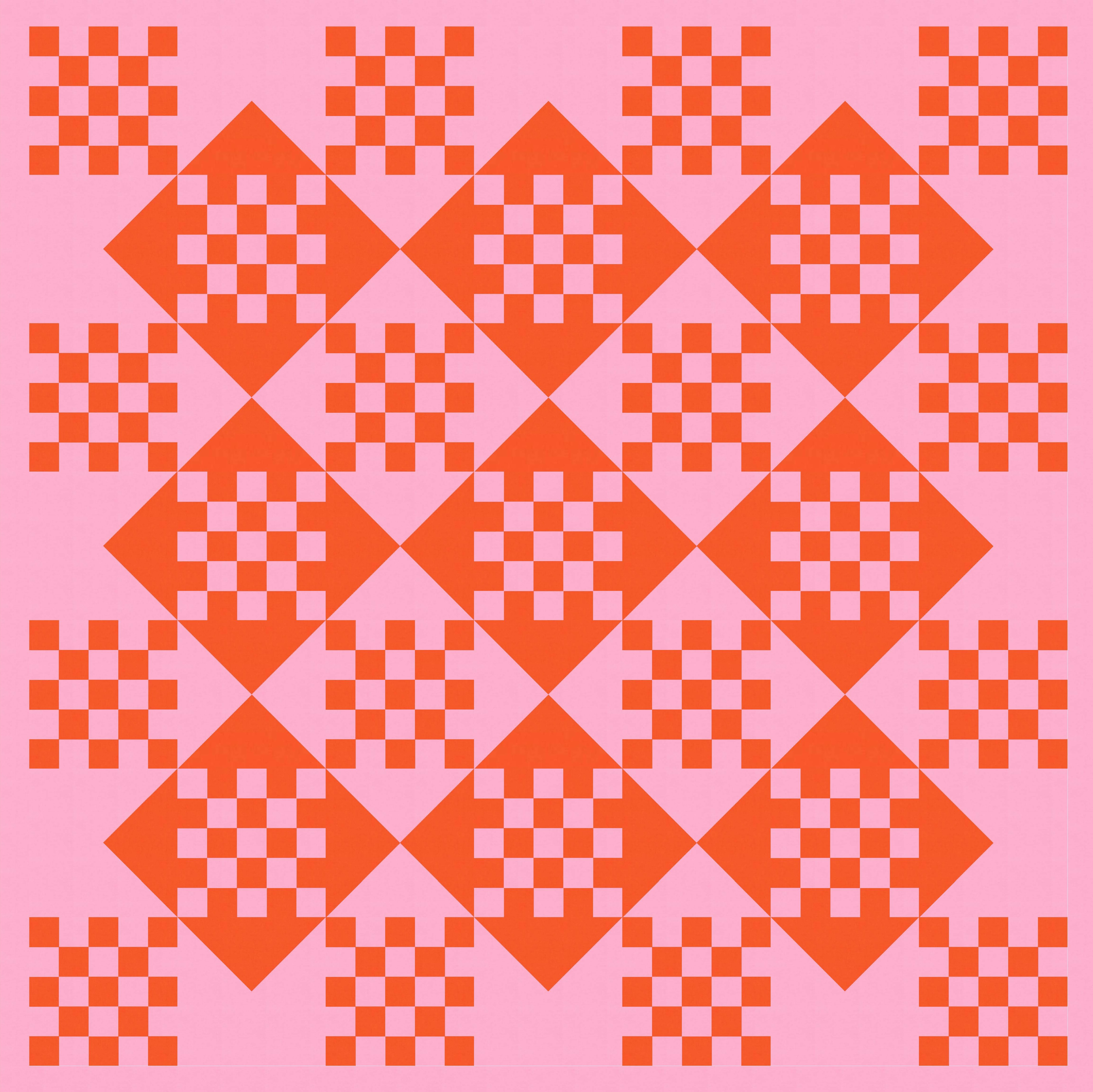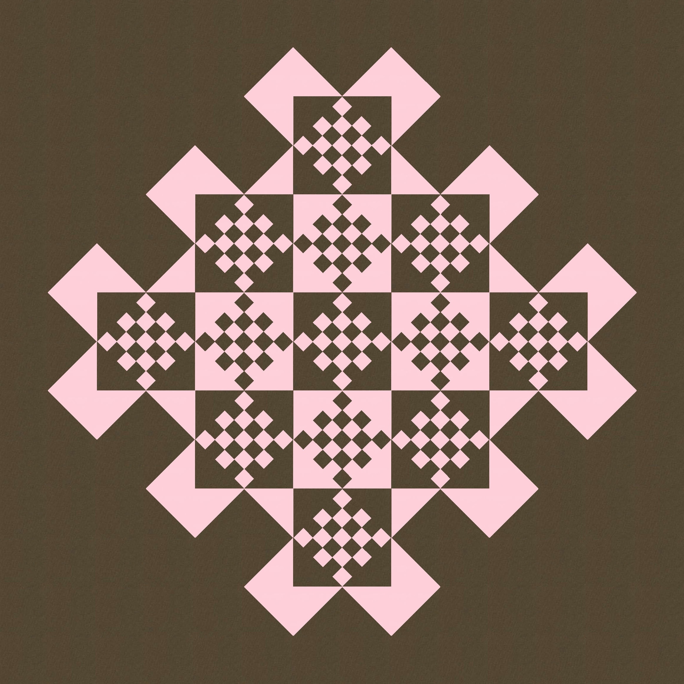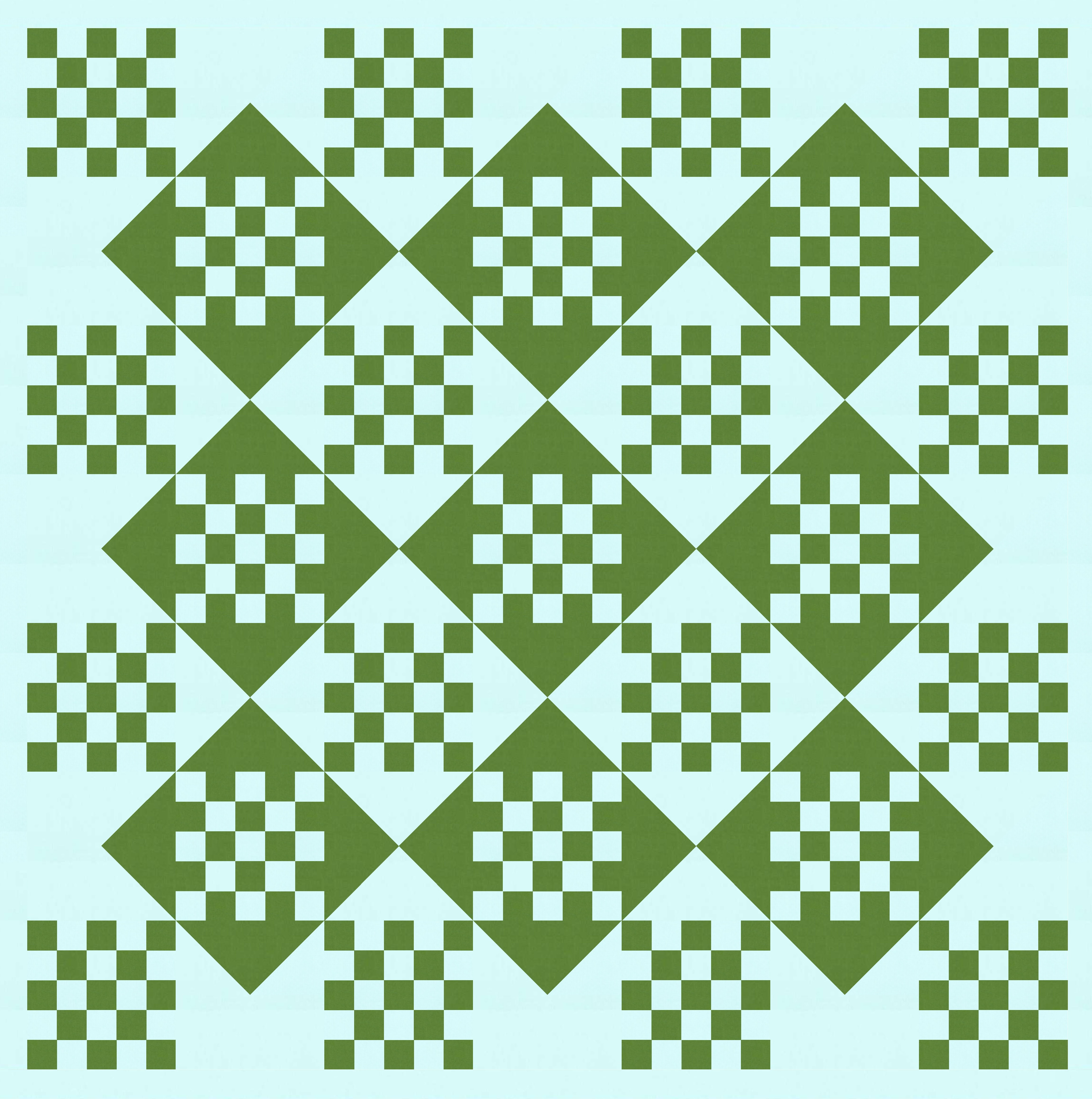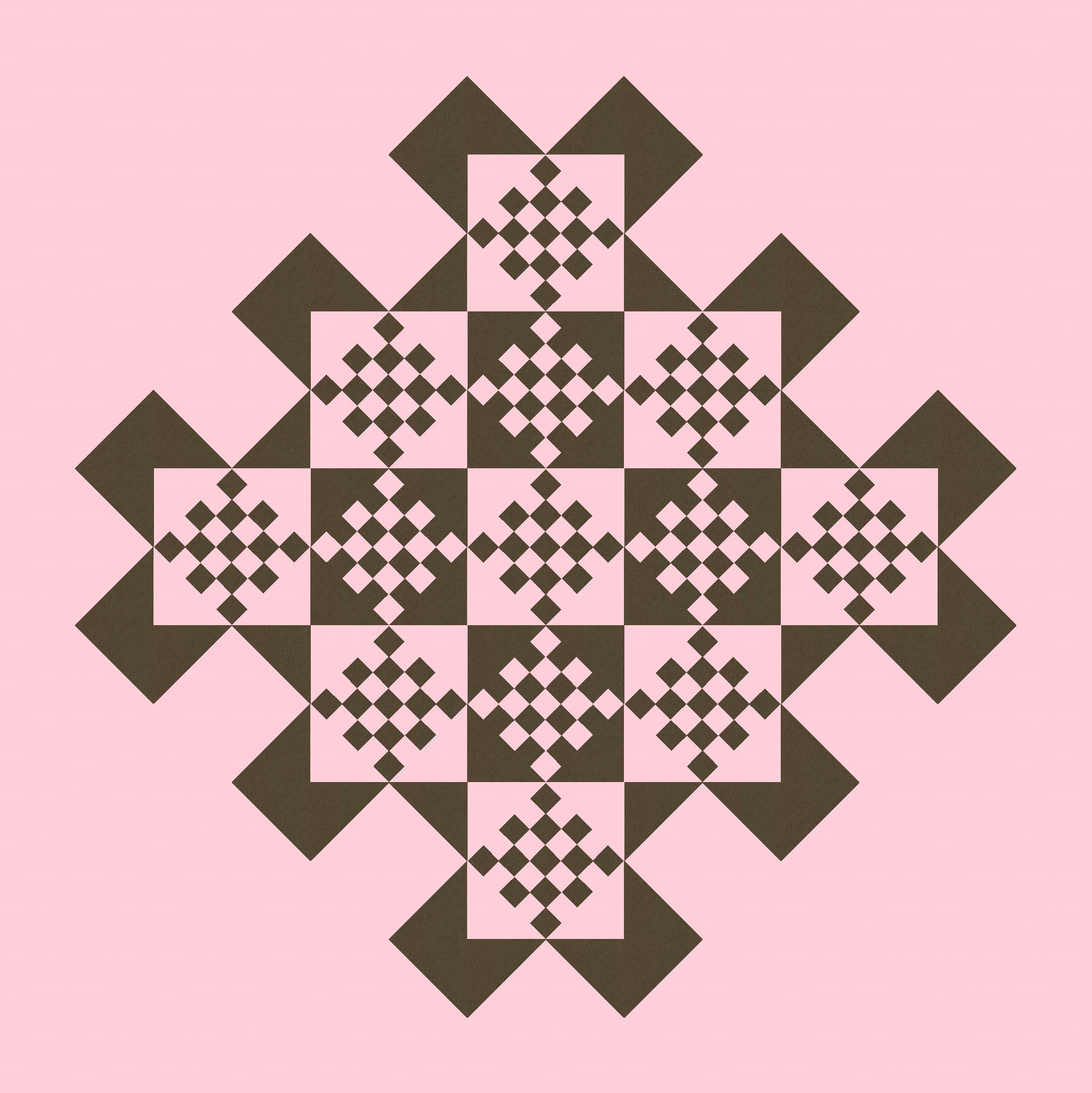 I have a tendency when switching from a standard layout to an on-point layout to just rotate the whole design – that is, keep the original square and just tilt it by 45 degrees. But it’s usually more interesting to fill the space with more blocks. So I extended the blocks in all directions to make up a fuller design overall.