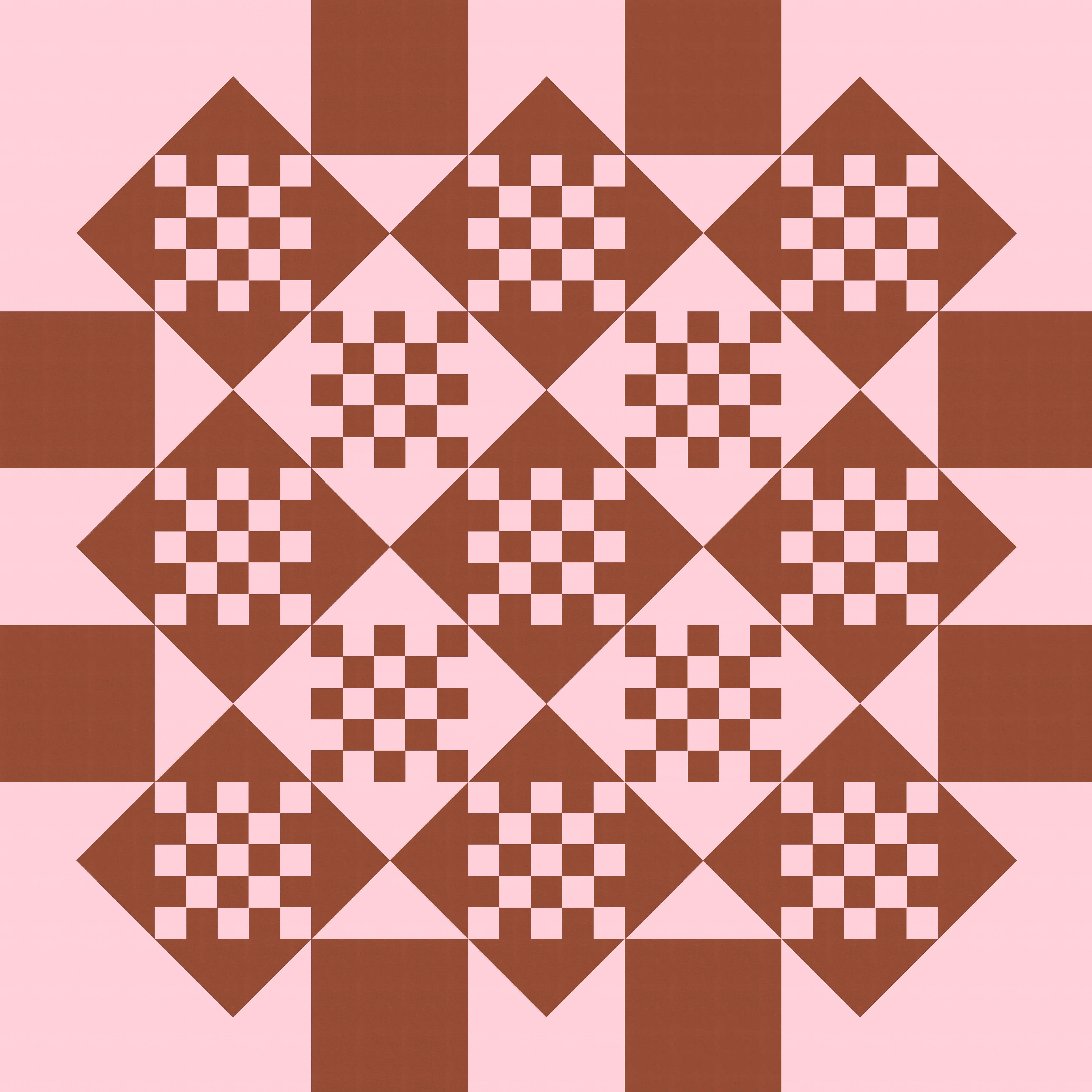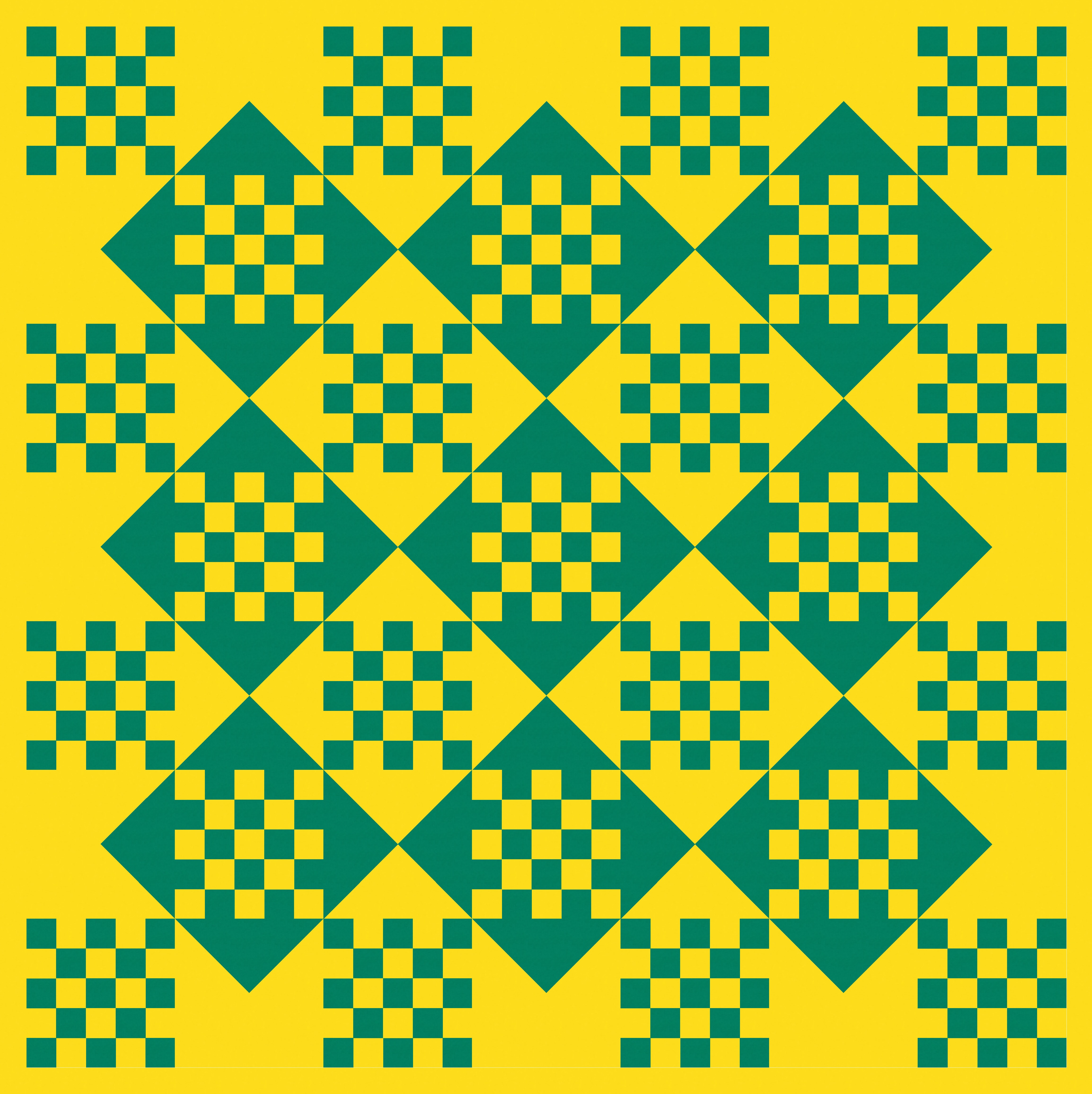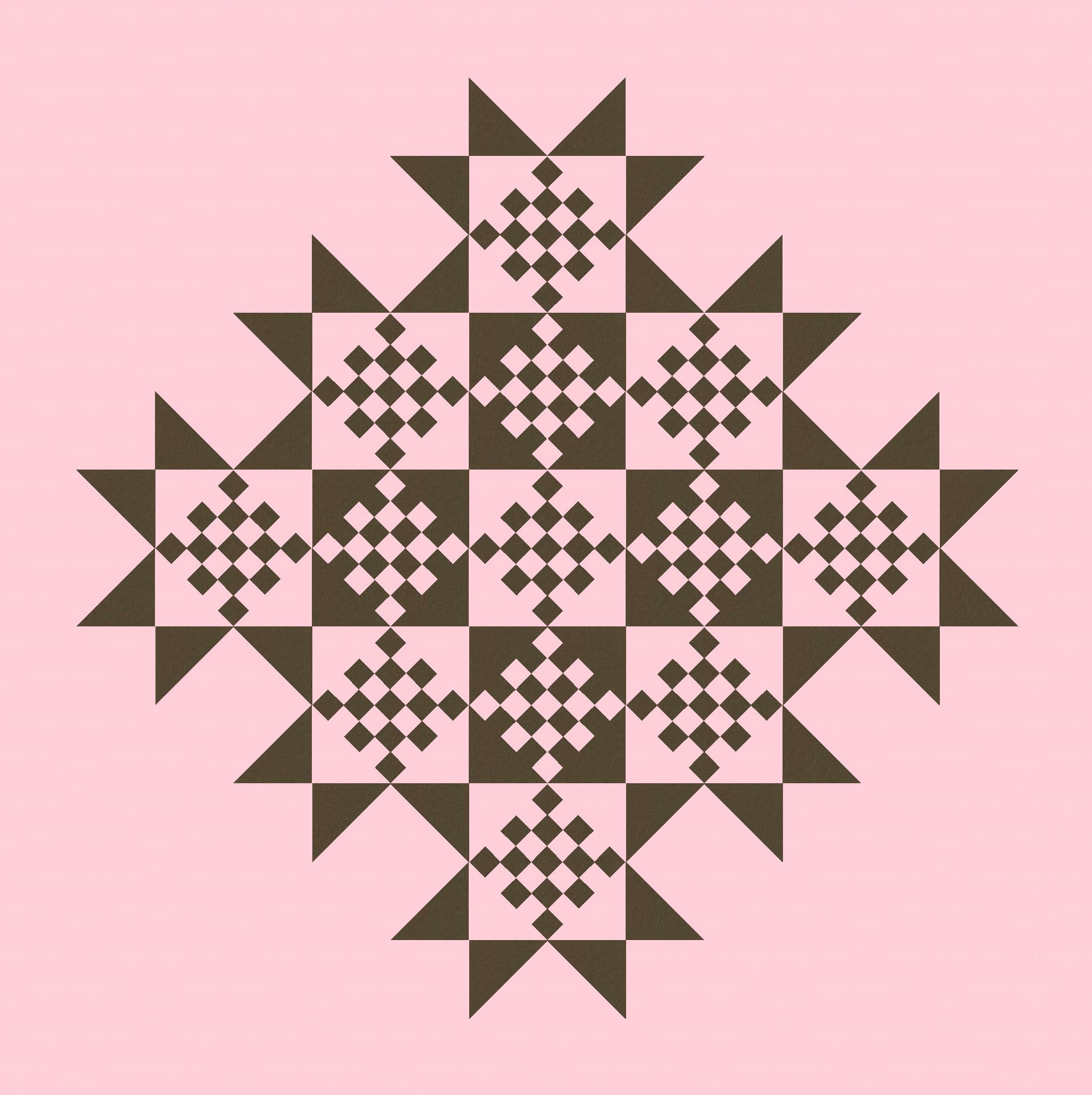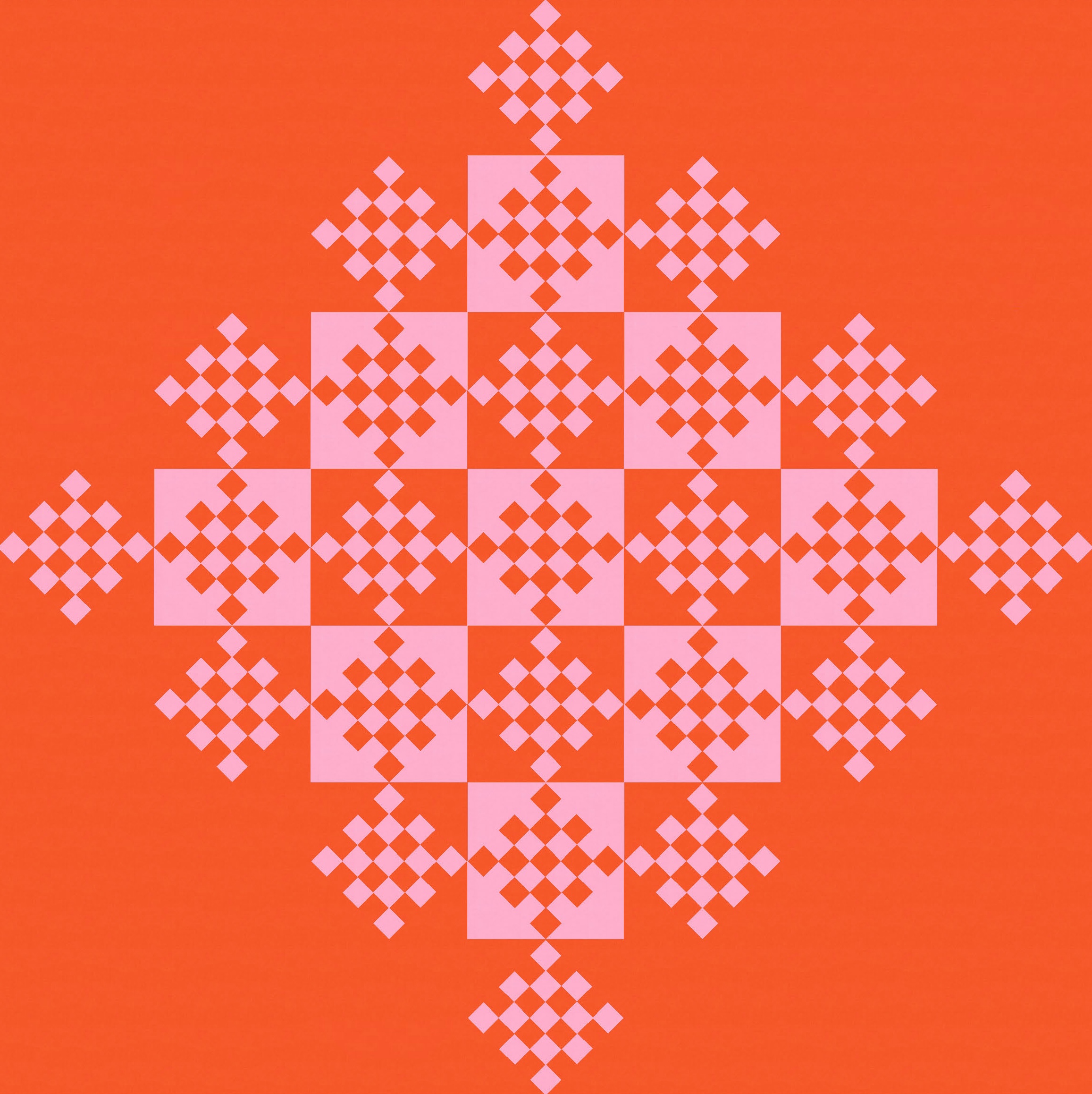 I have a tendency when switching from a standard layout to an on-point layout to just rotate the whole design – that is, keep the original square and just tilt it by 45 degrees. But it’s usually more interesting to fill the space with more blocks. So I extended the blocks in all directions to make up a fuller design overall.