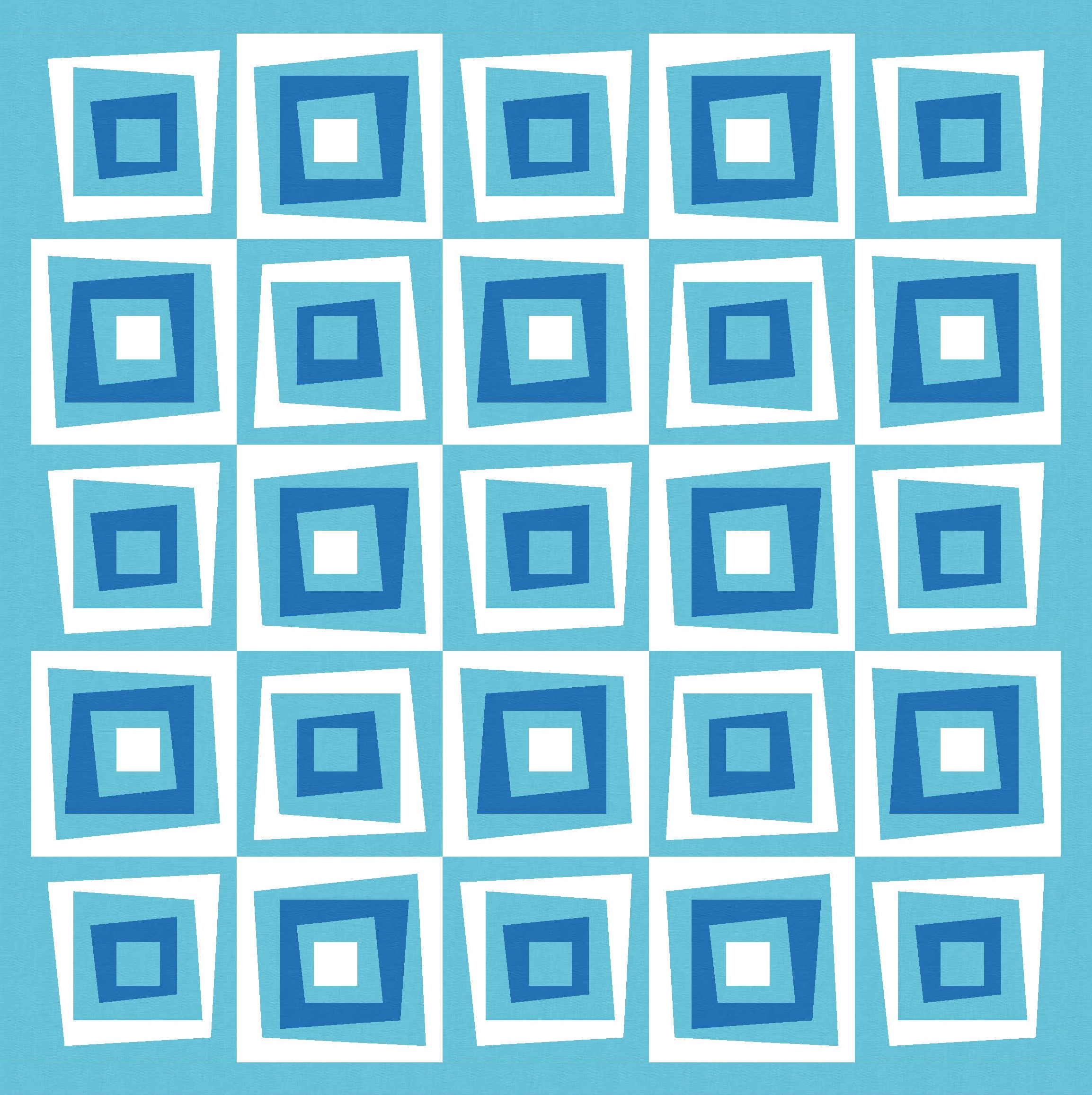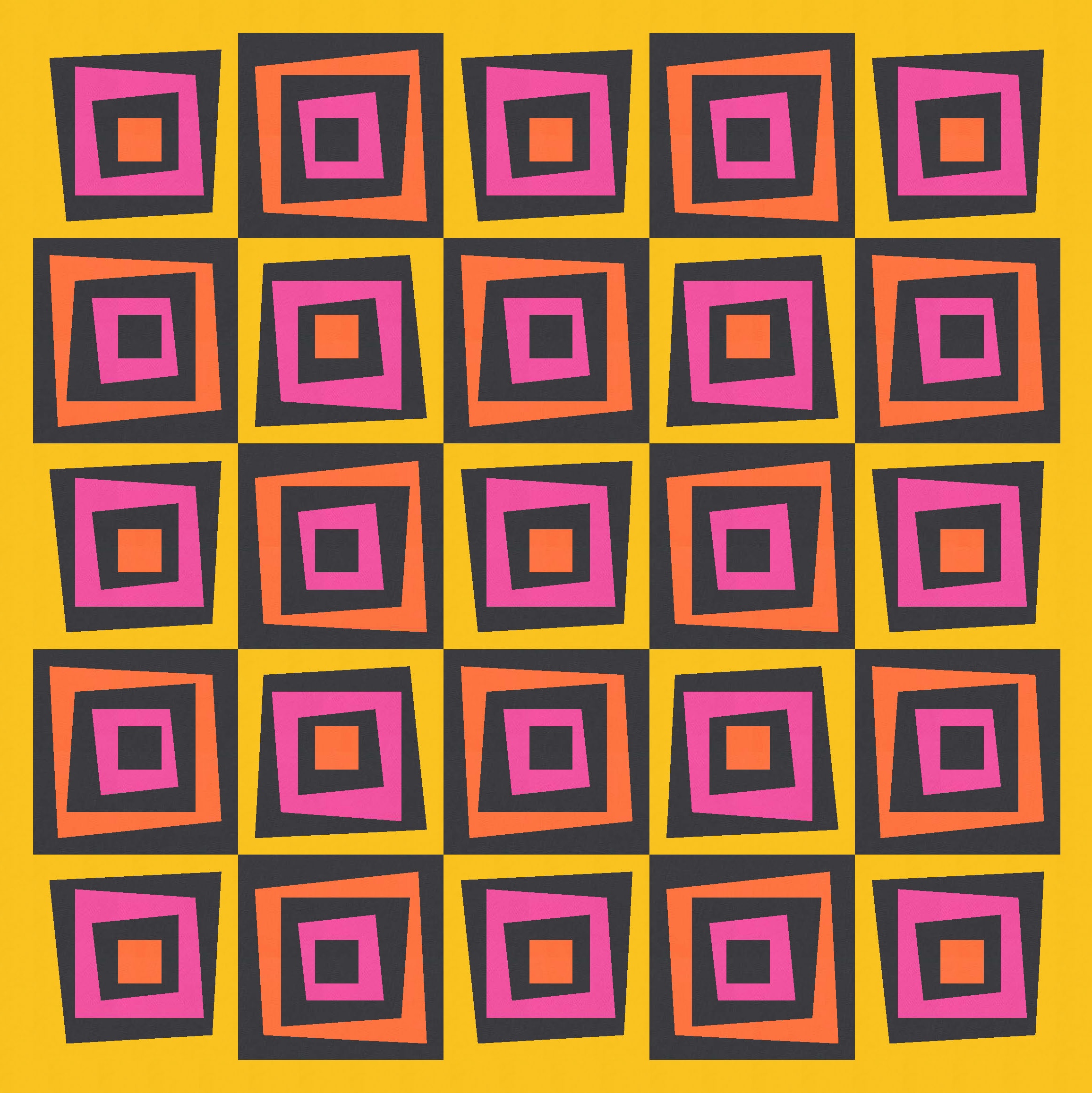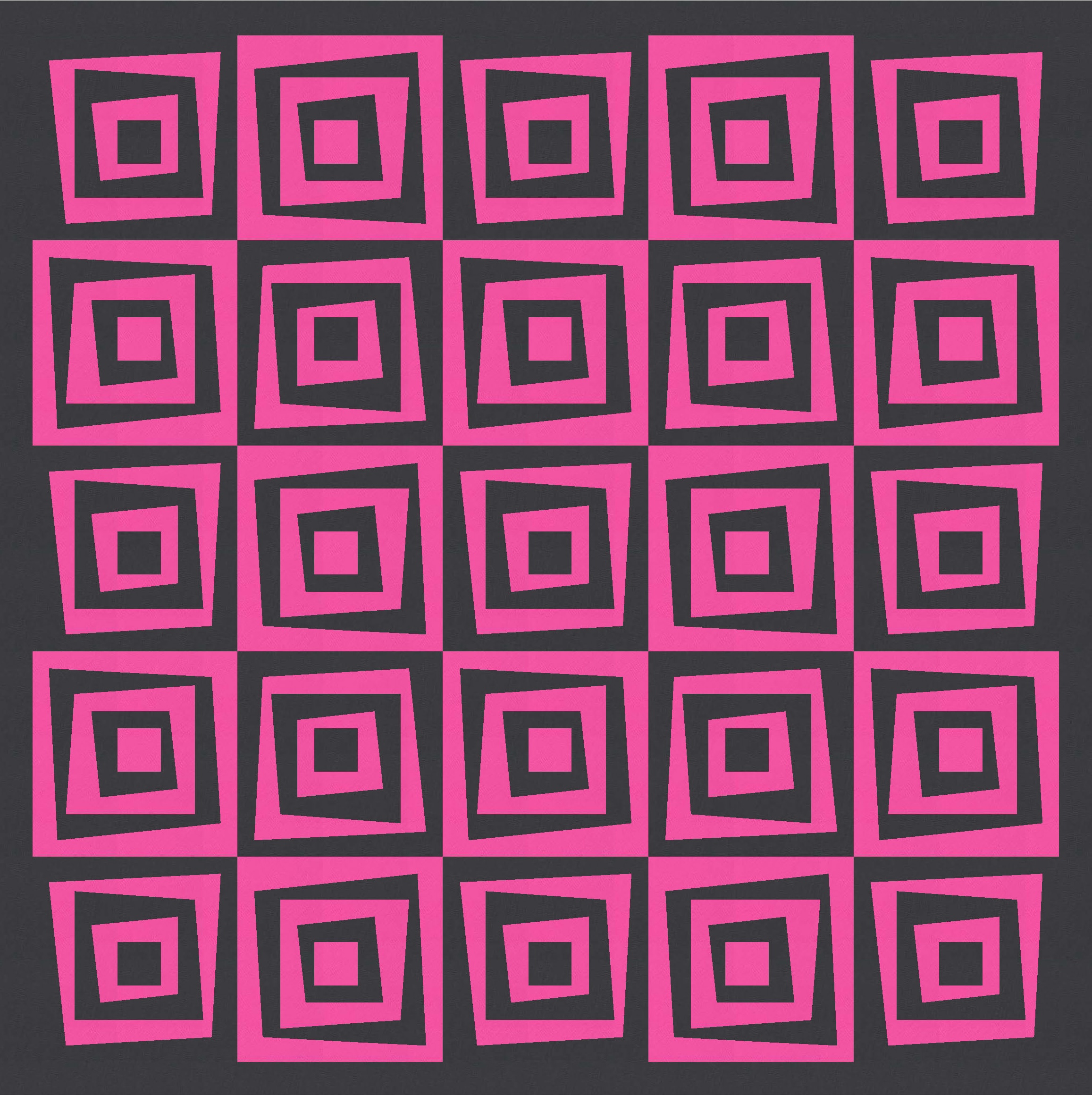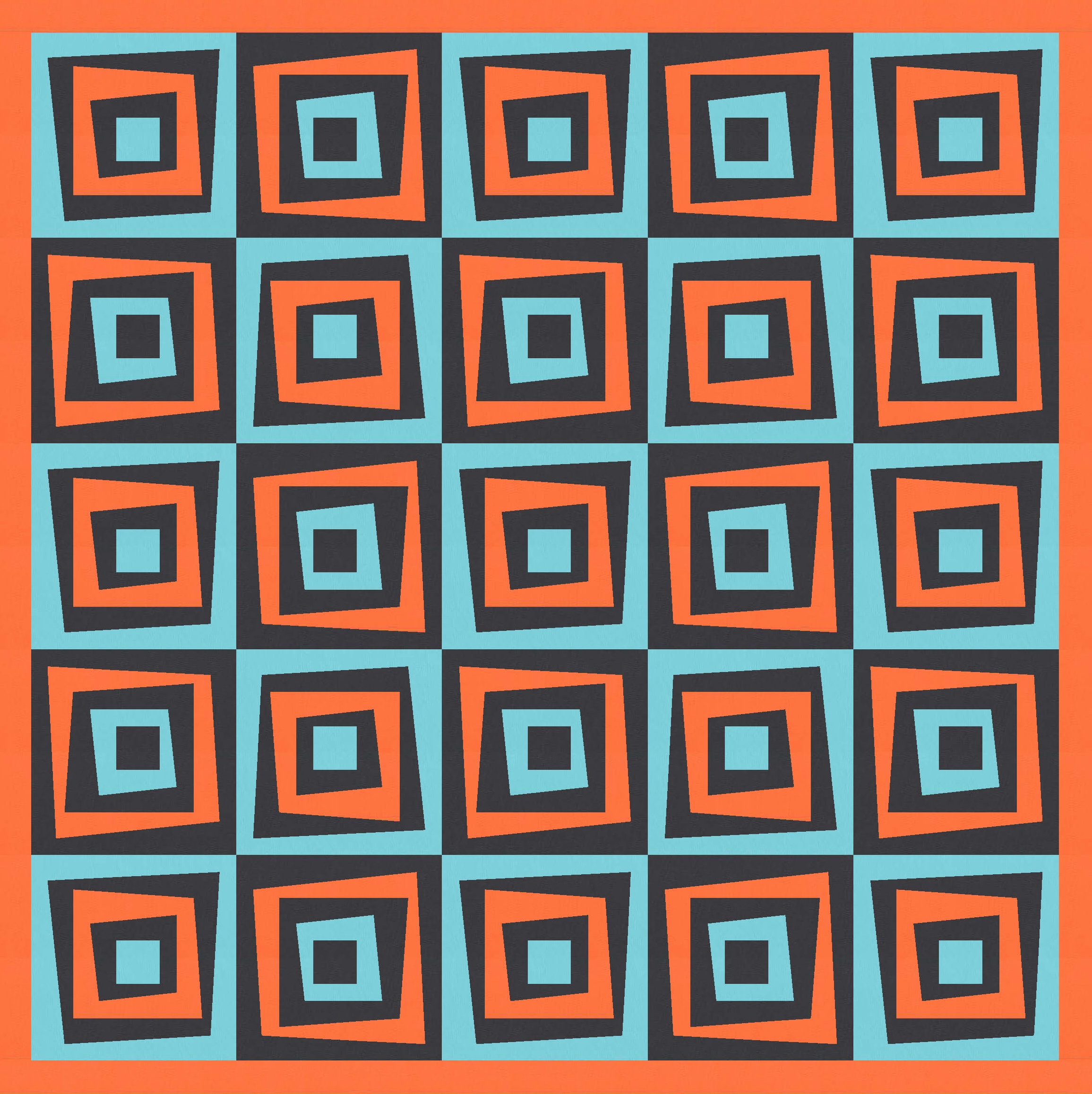 I love this design in just two colours, because the restricted palette really highlights the wonkiness of the design, at the same time as revealing the repetition and regularity. You can see that every second block is the same; you might also be able to tell that all the blocks are the same, but half are just rotated and colour-reversed.