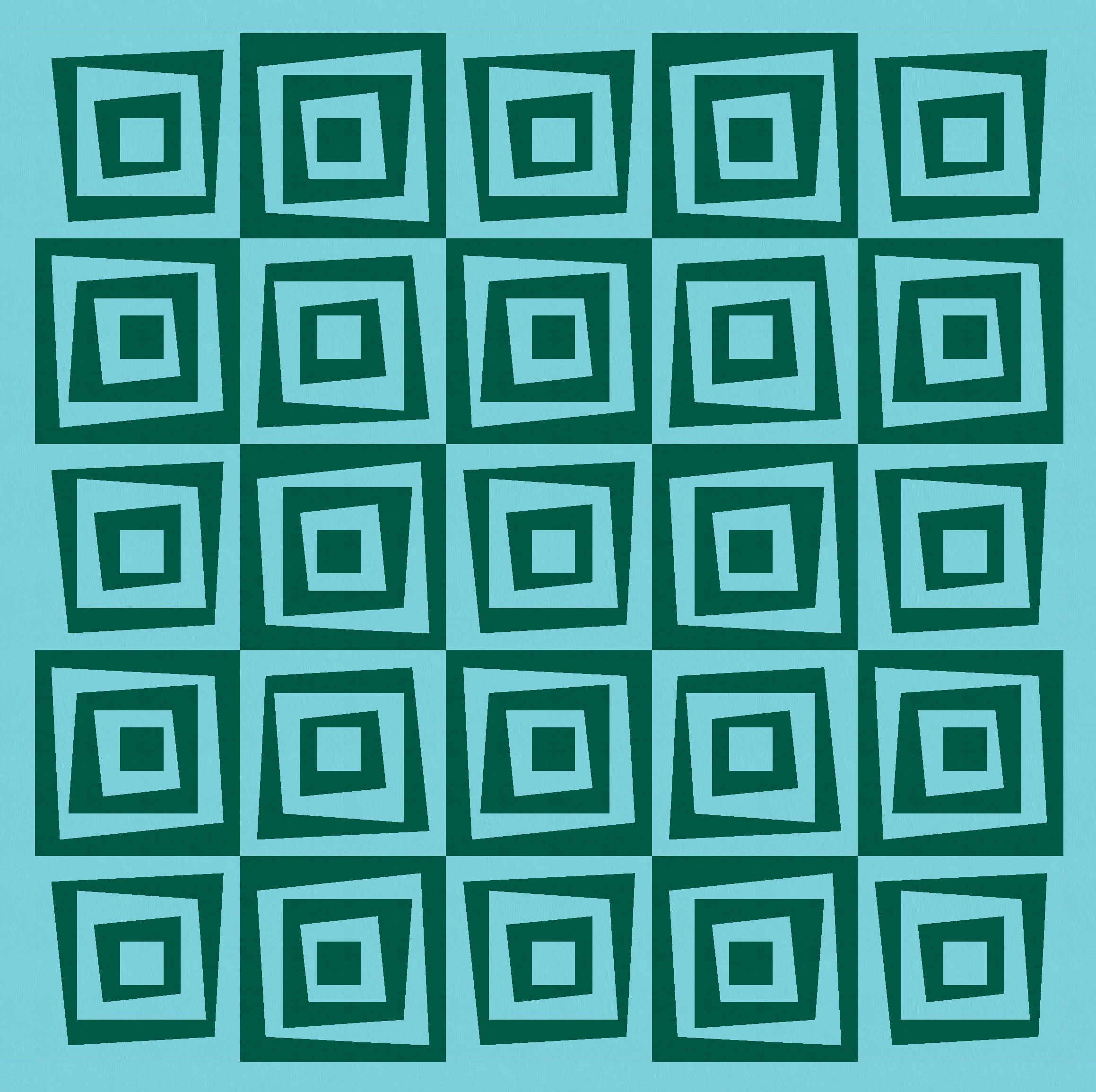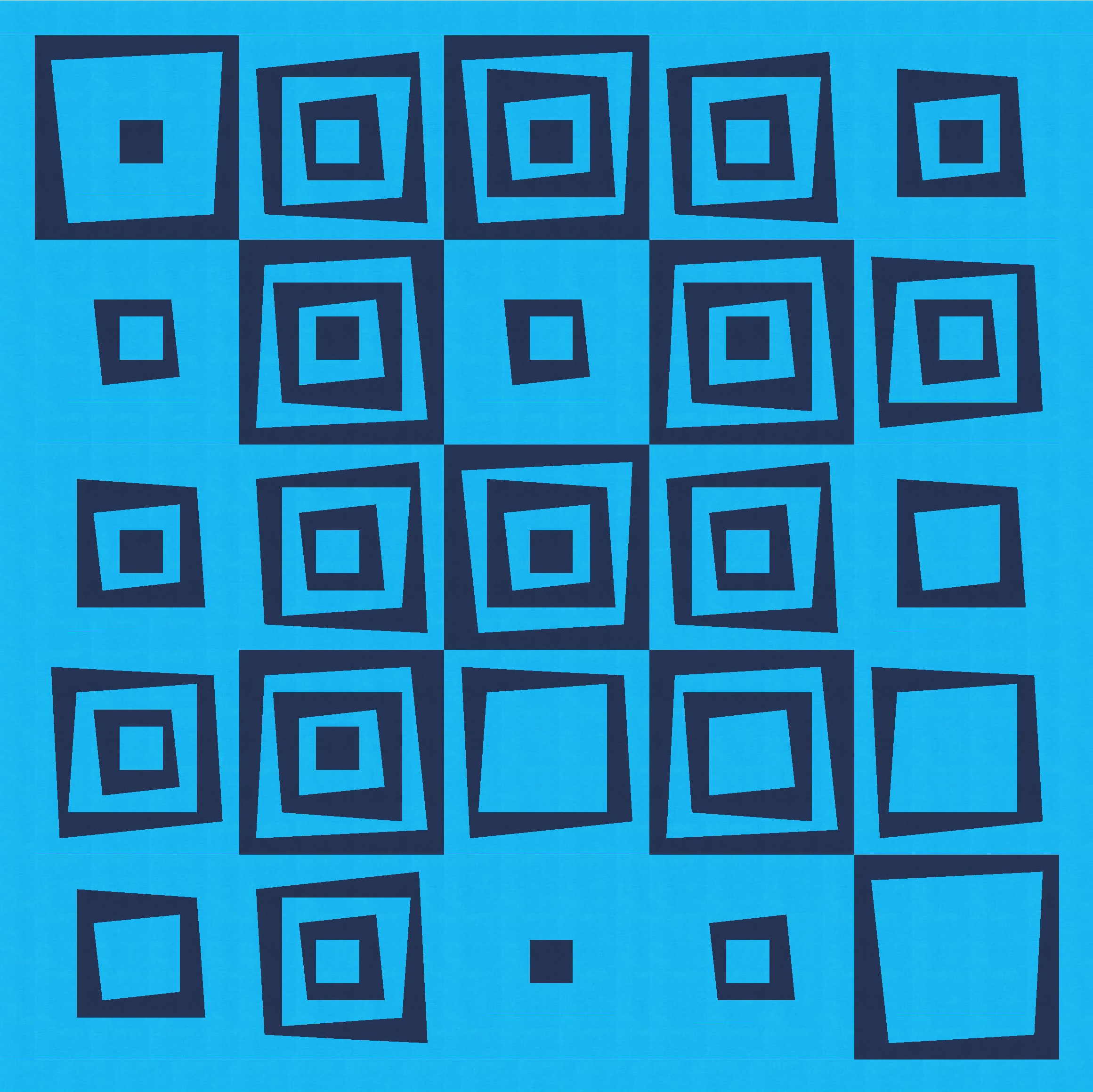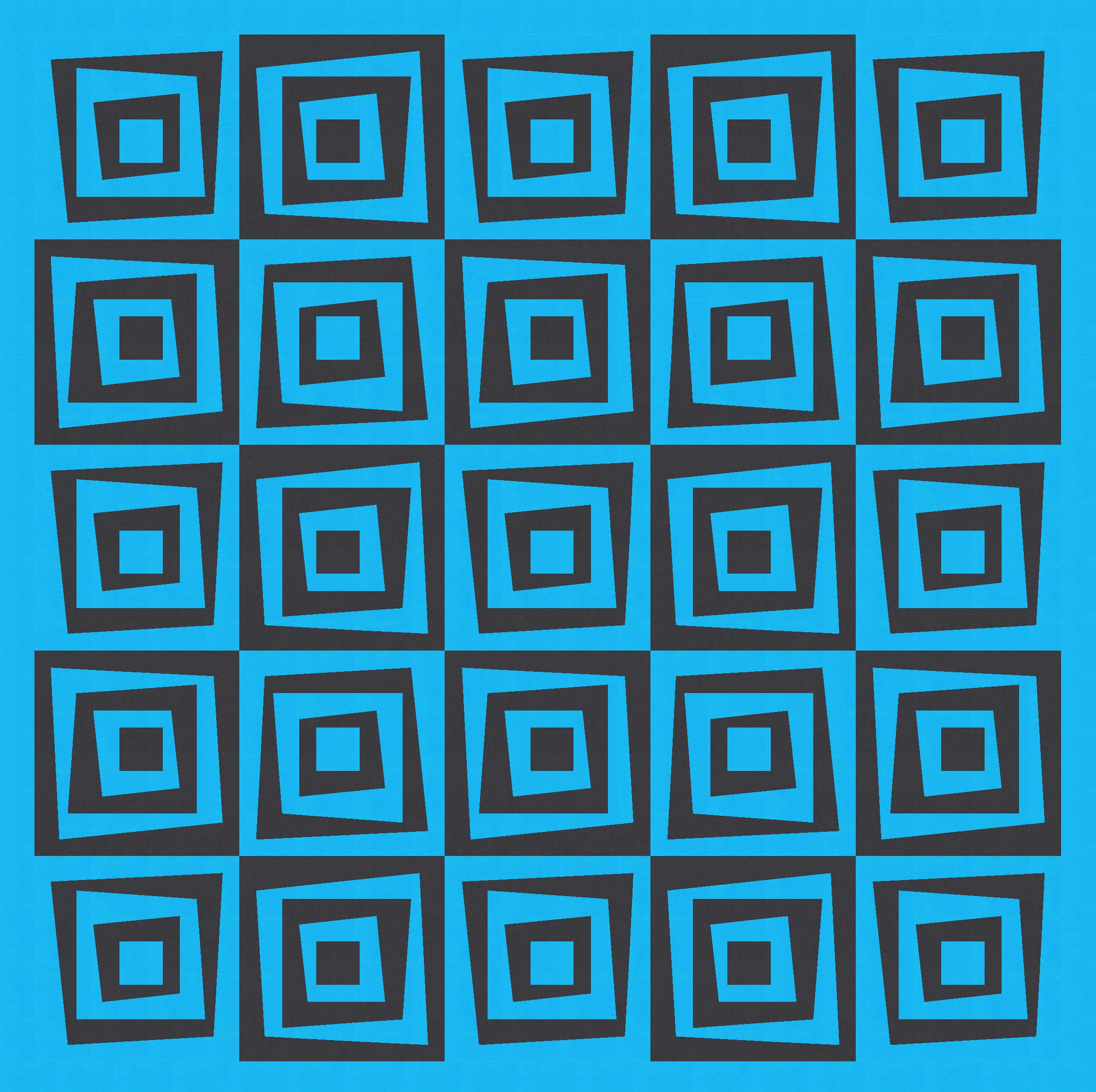I love this design in just two colours, because the restricted palette really highlights the wonkiness of the design, at the same time as revealing the repetition and regularity. You can see that every second block is the same; you might also be able to tell that all the blocks are the same, but half are just rotated and colour-reversed.